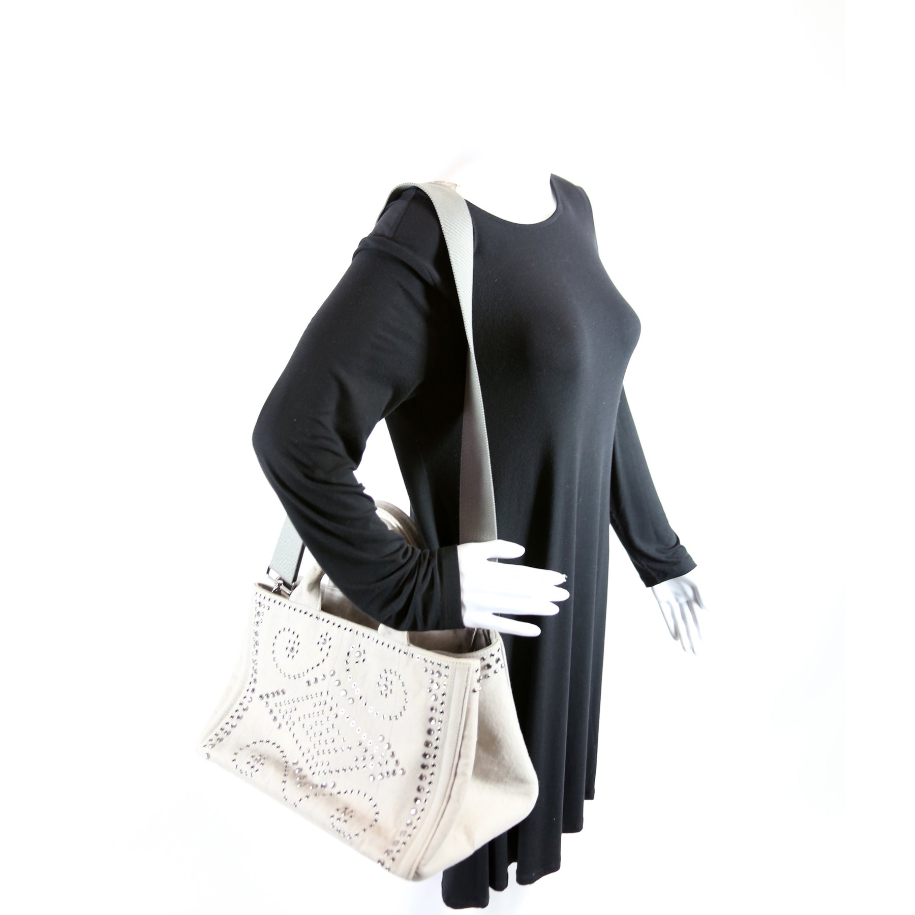 This pre-owned Prada Canapa Studded Canvas Tote is guaranteed 100% authentic.