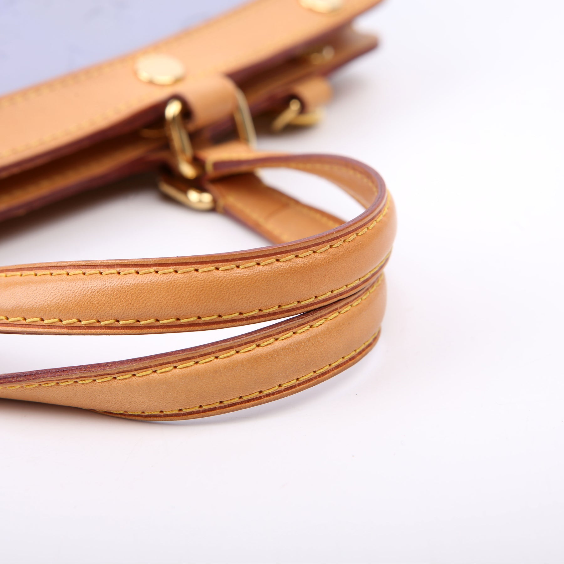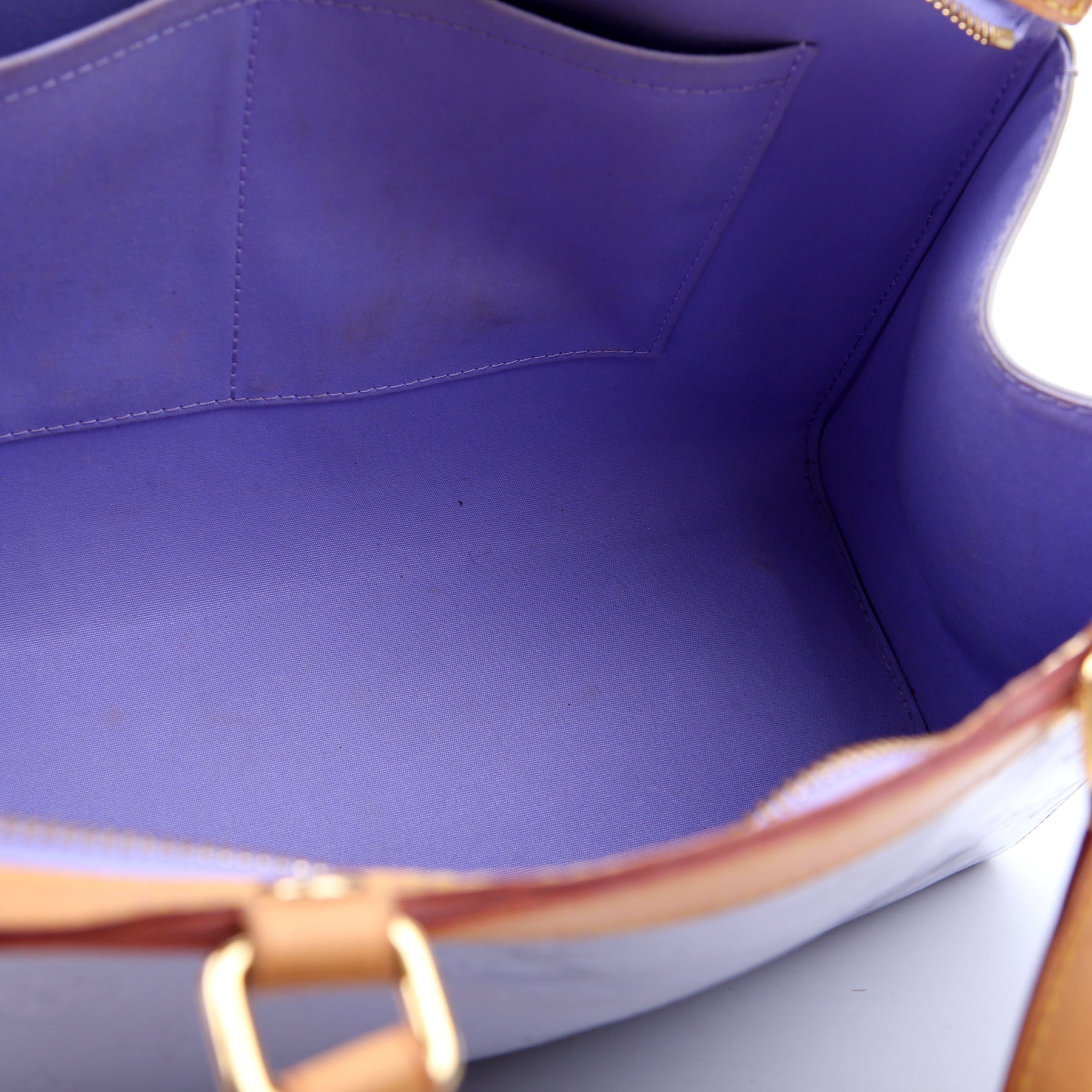 Exterior: The exterior leather is free of any rips or cracks. The leather trim shows light scuffs and rubbing. The vernis leather shows fading and discoloration throughout.
