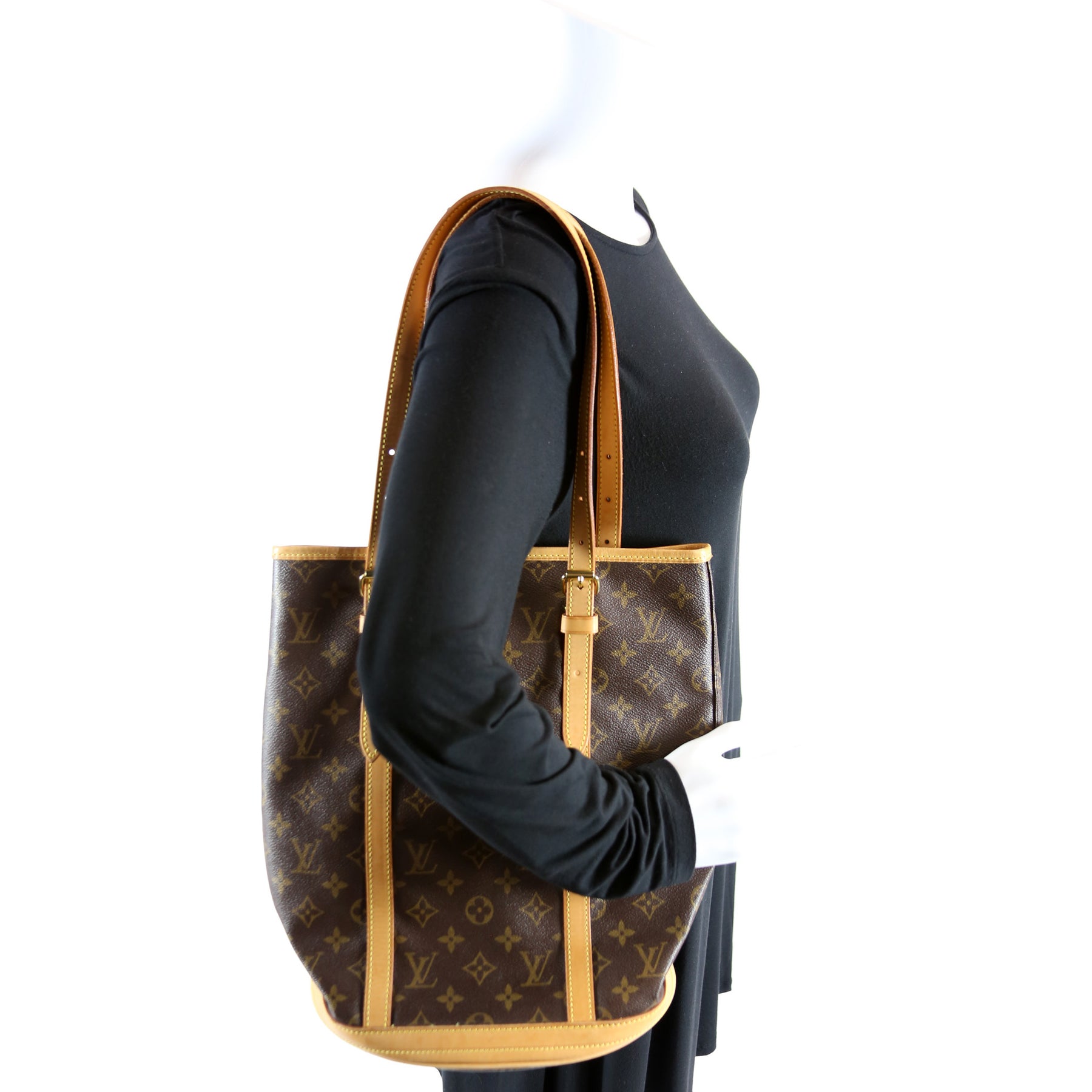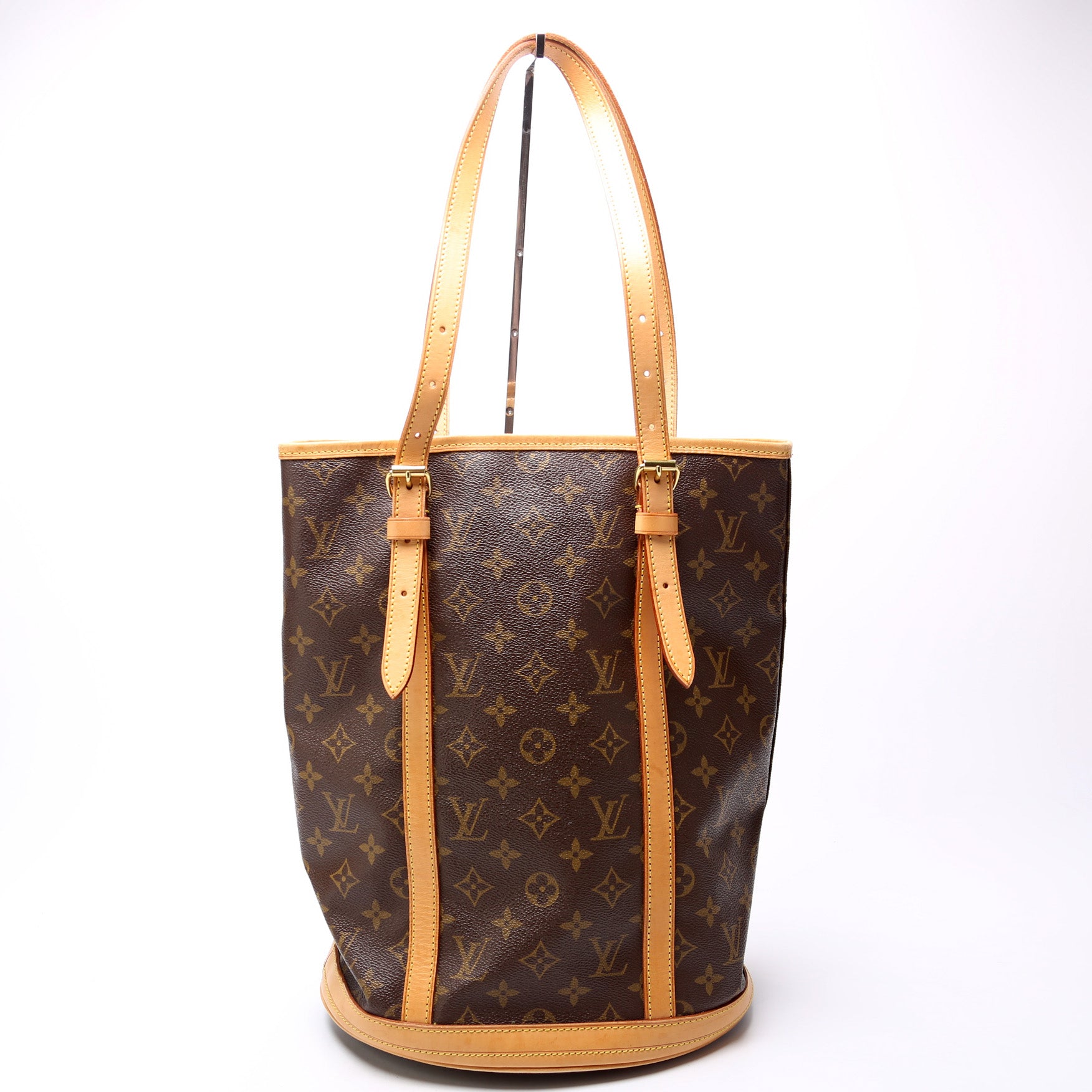 This pre-owned Louis Vuitton Bucket GM With Pouch is guaranteed 100% authentic. The exterior is in the classic Louis Vuitton Monogram coated canvas.