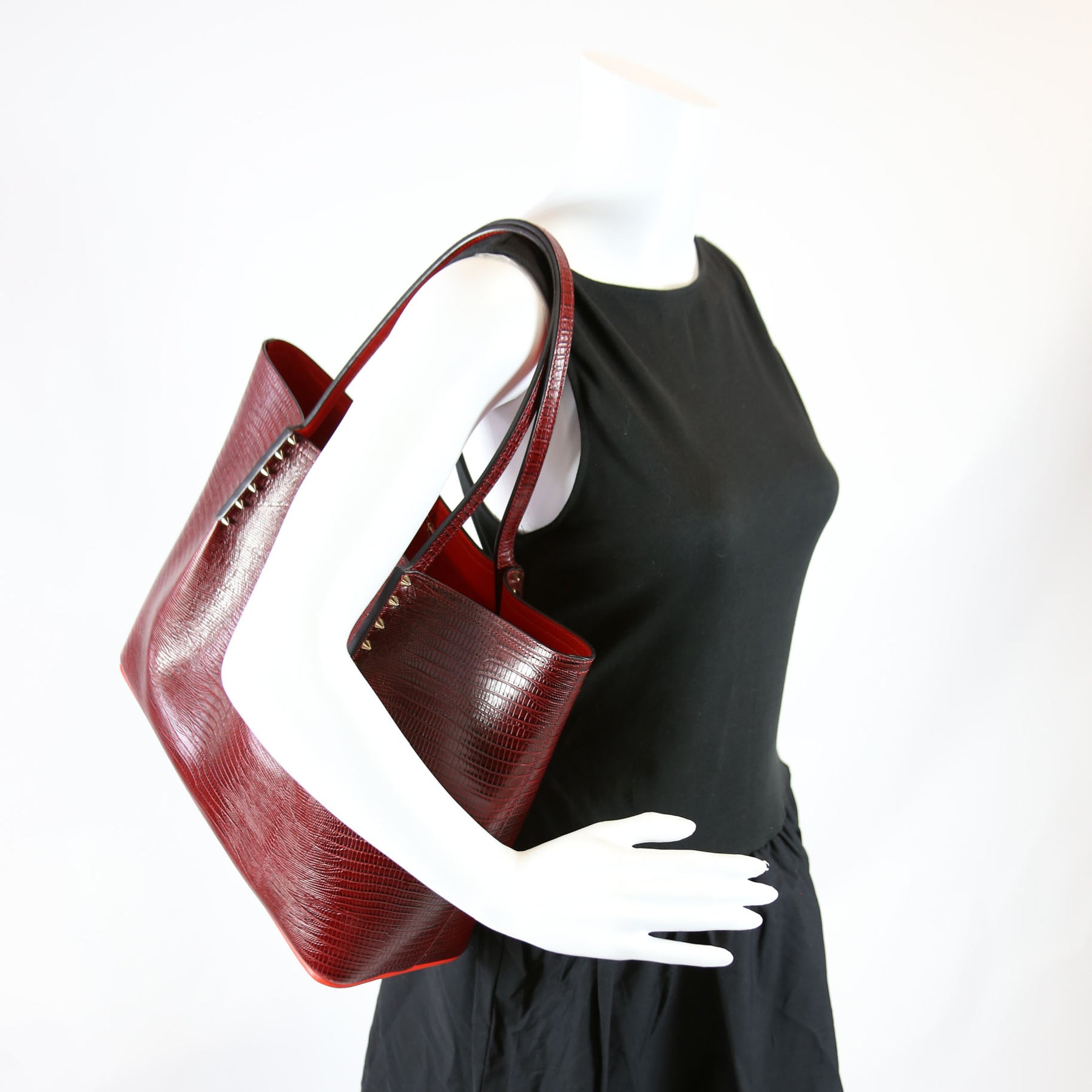 This pre-owned Christian Louboutin Cabarock Snake Embossed Large Tote is guaranteed 100% authentic.