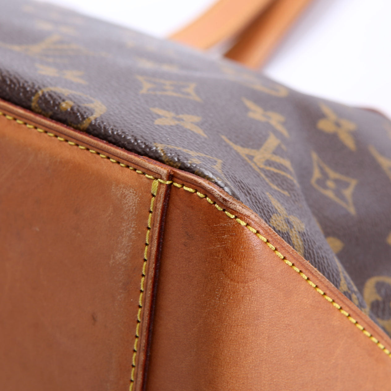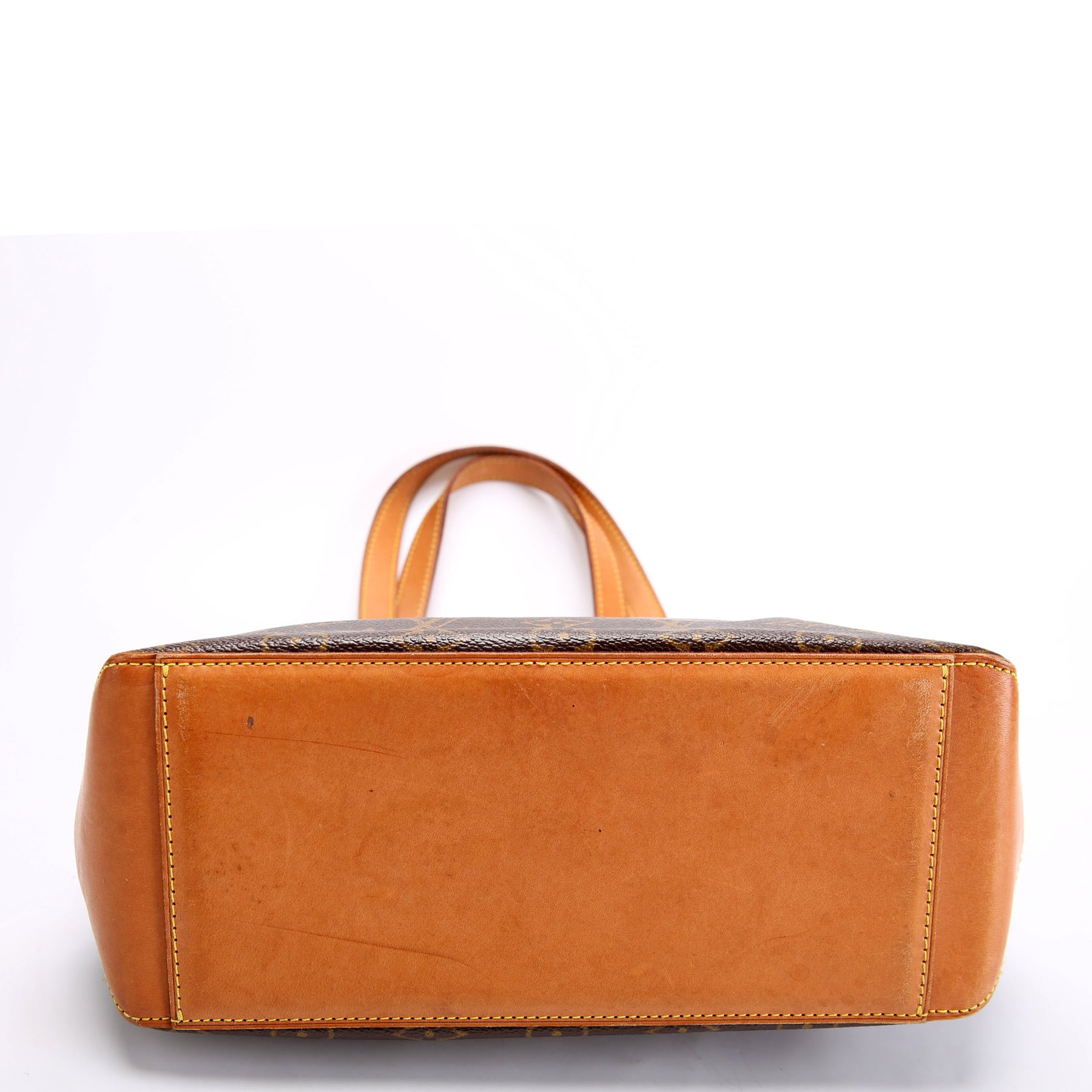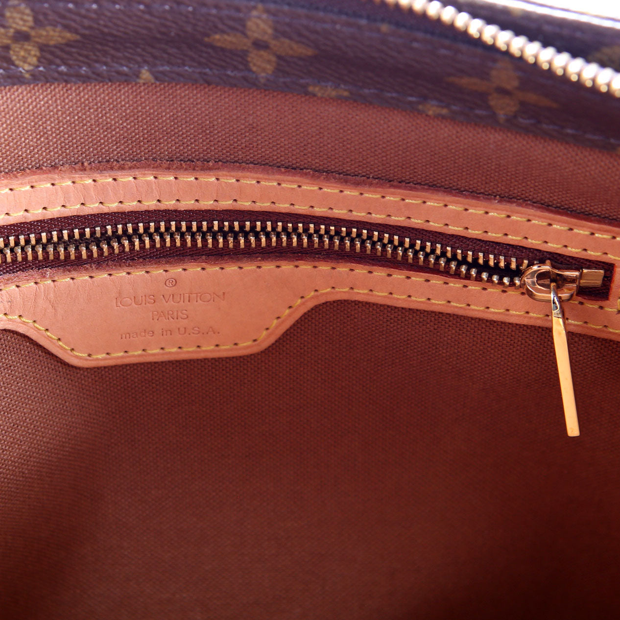 This pre-owned Louis Vuitton Cabas Piano is guaranteed 100% authentic. The exterior is in the classic Louis Vuitton Monogram coated canvas.