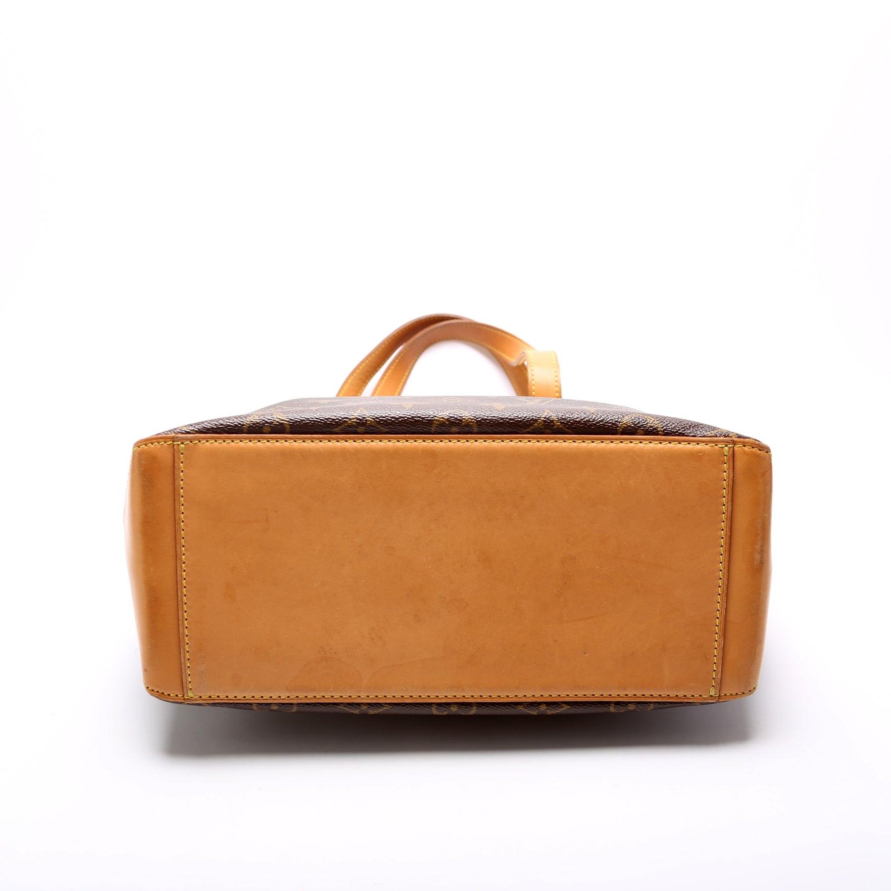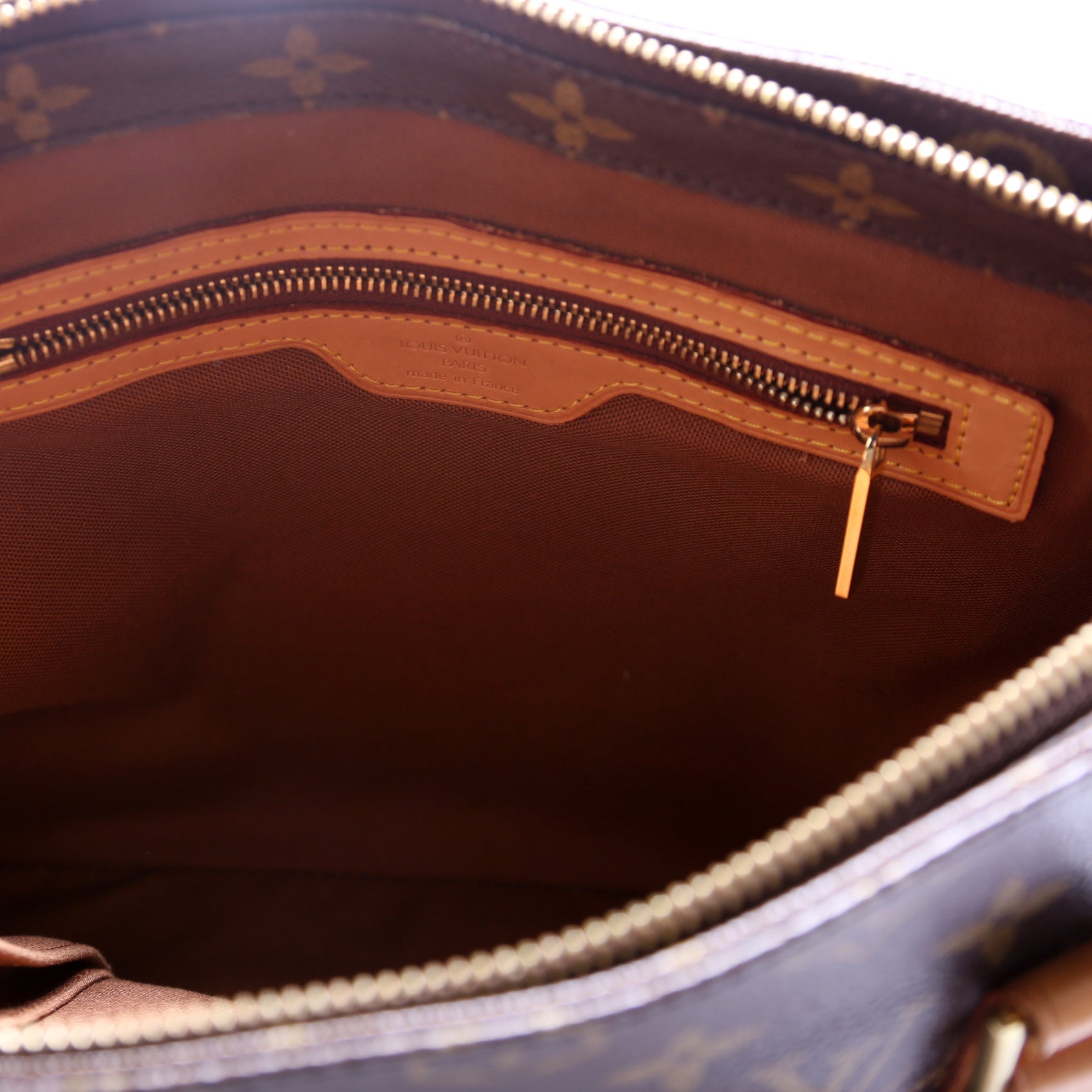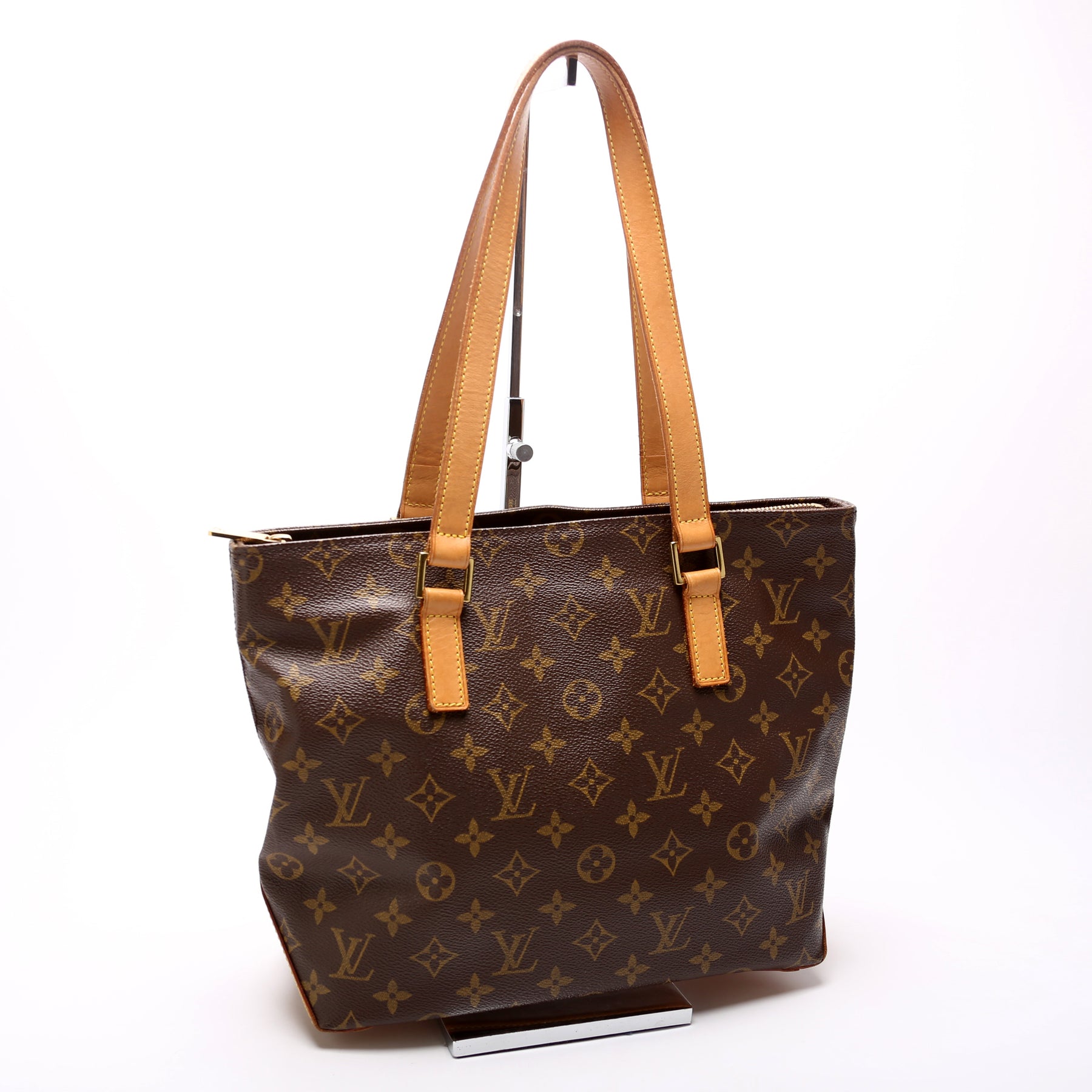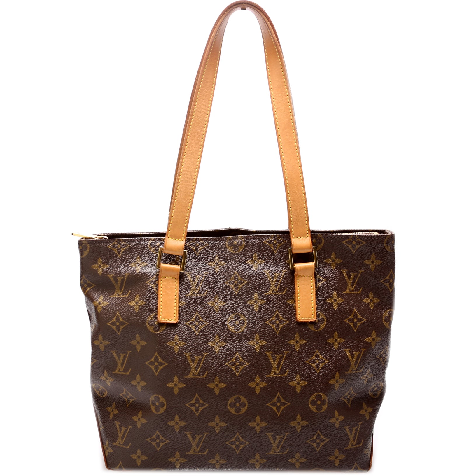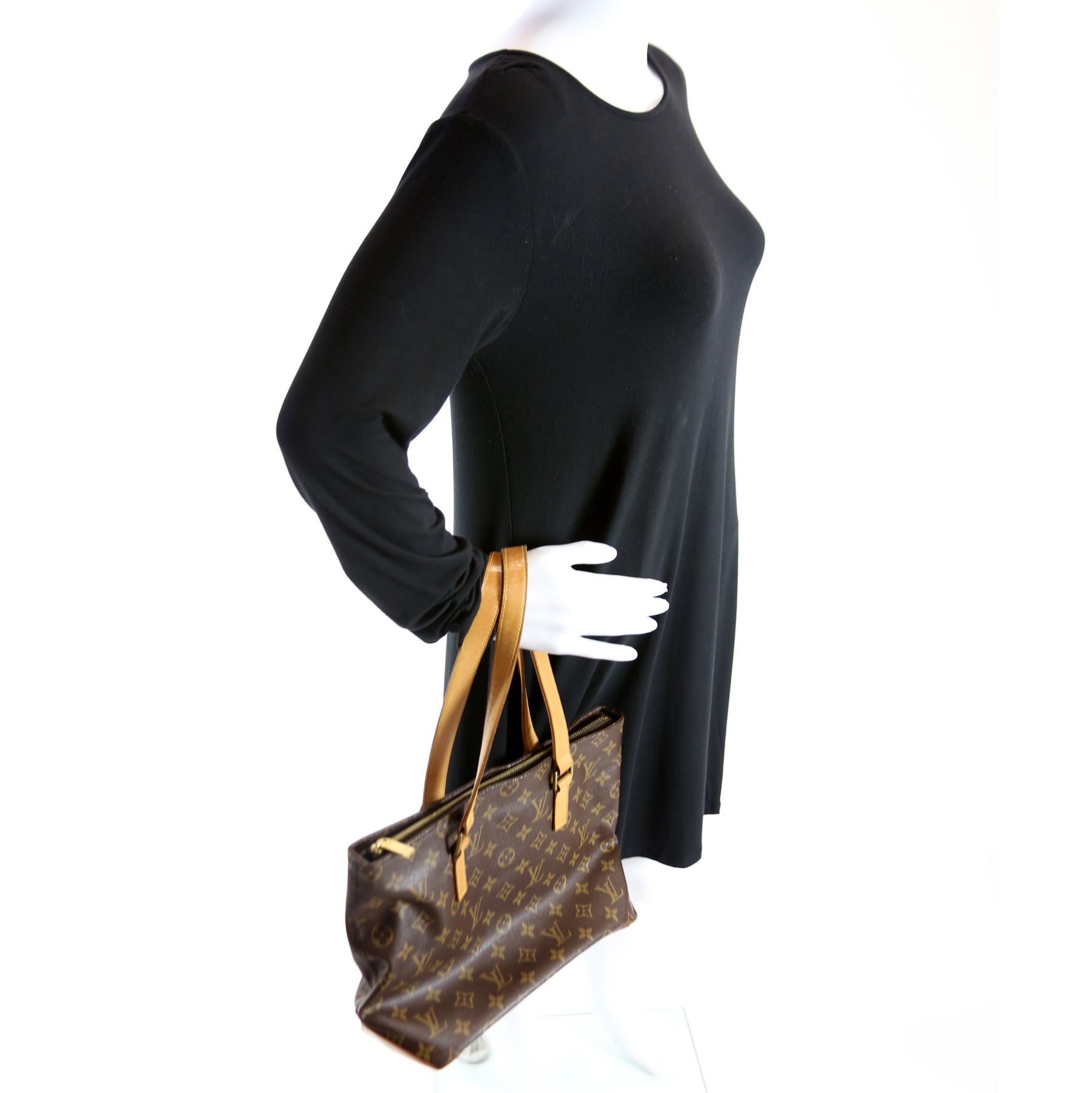 This pre-owned Louis Vuitton Cabas Piano is guaranteed 100% authentic. The exterior is in the classic Louis Vuitton Monogram coated canvas.