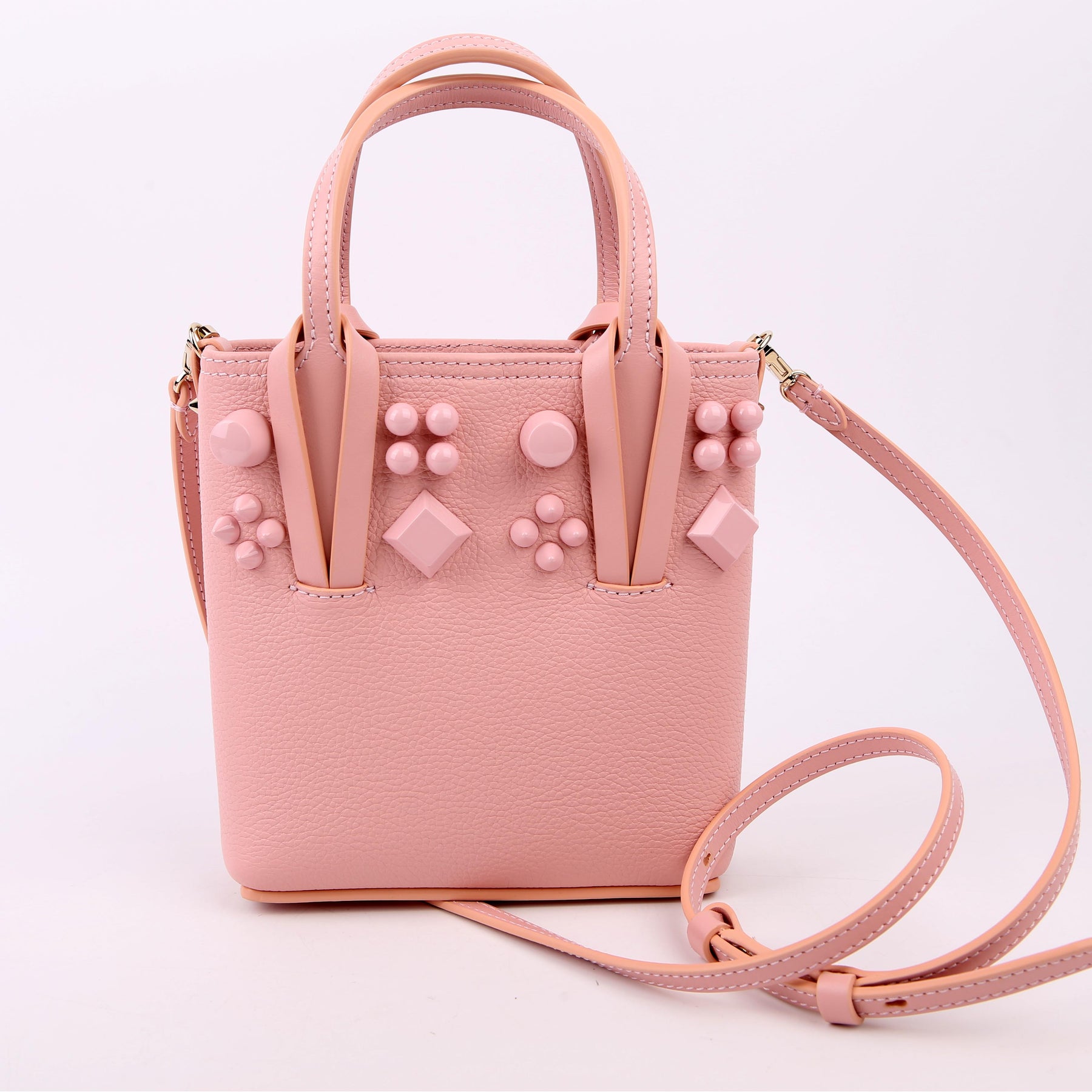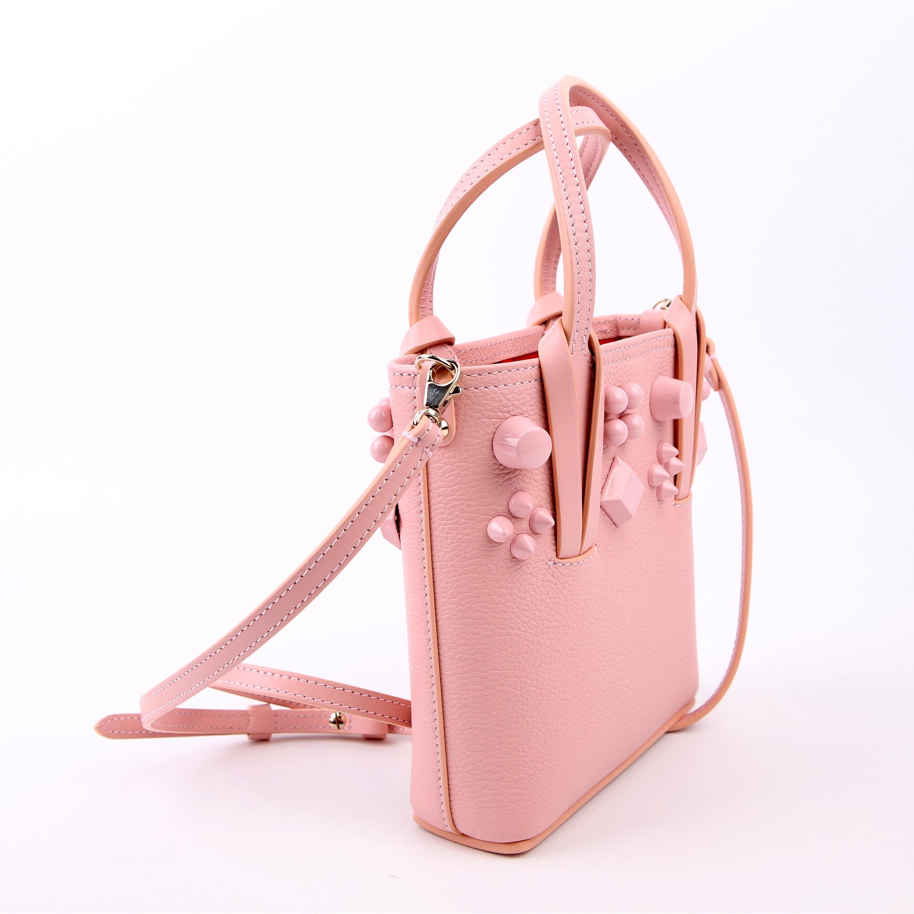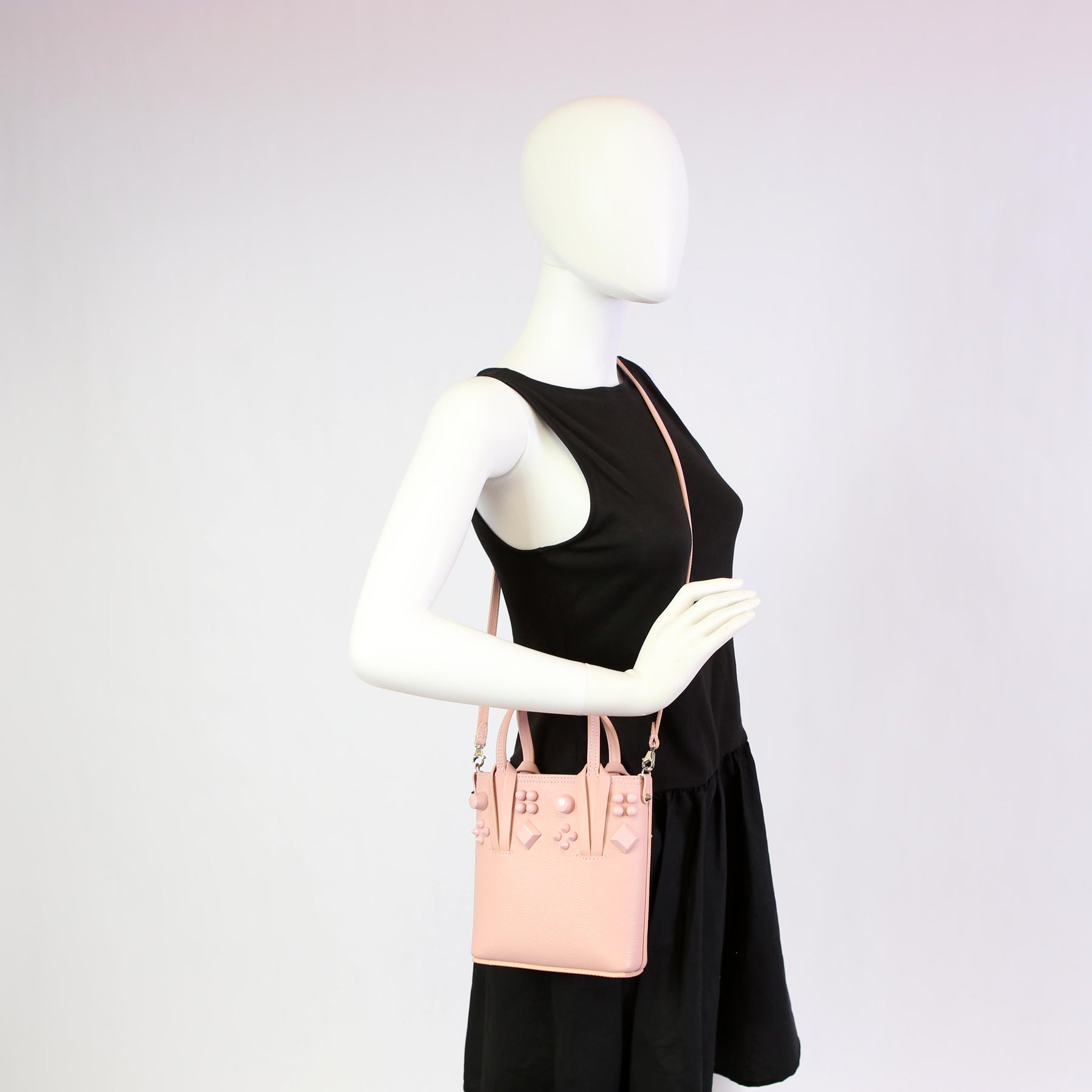 This pre-owned Christian Louboutin Calfskin Mini North South Cabata Tote is guaranteed 100% authentic.