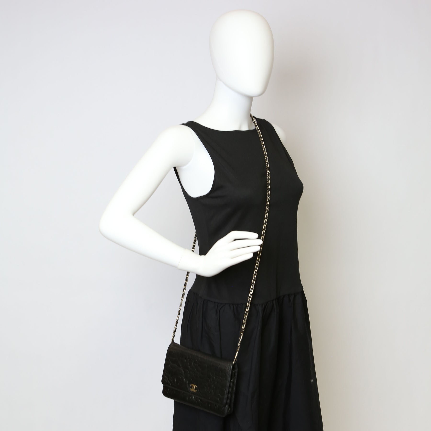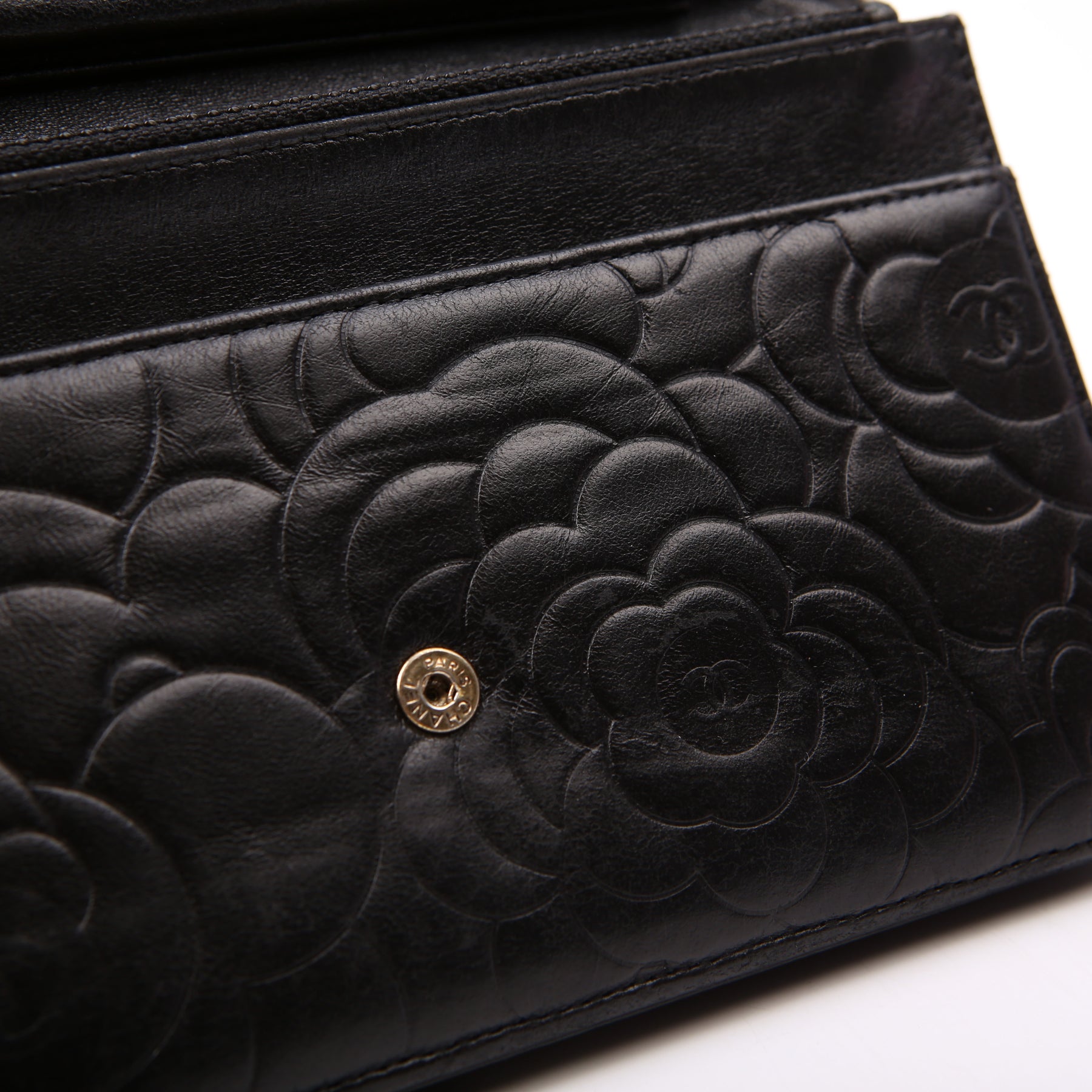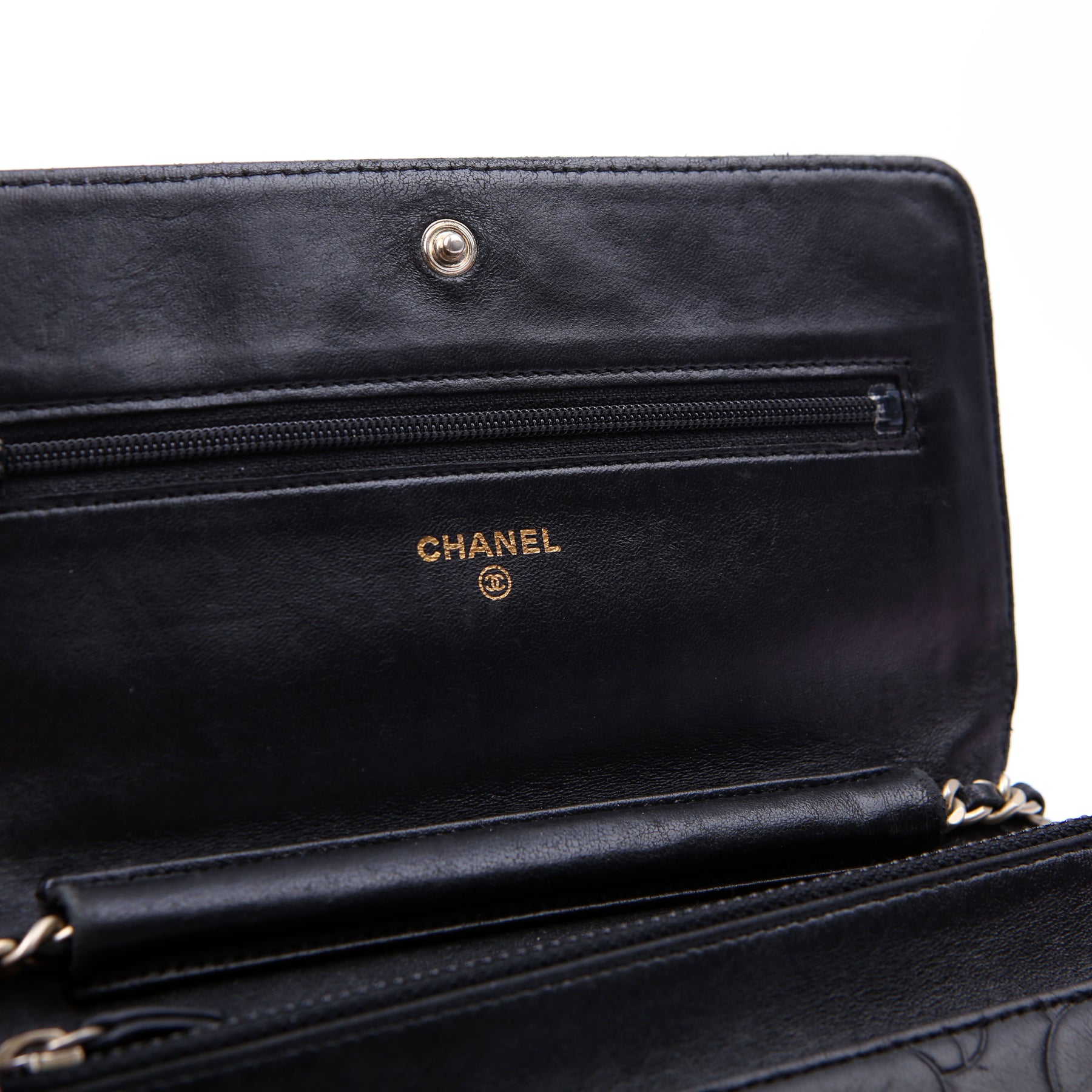 This pre-owned Chanel Camellia Embossed WOC is guaranteed 100% authentic.