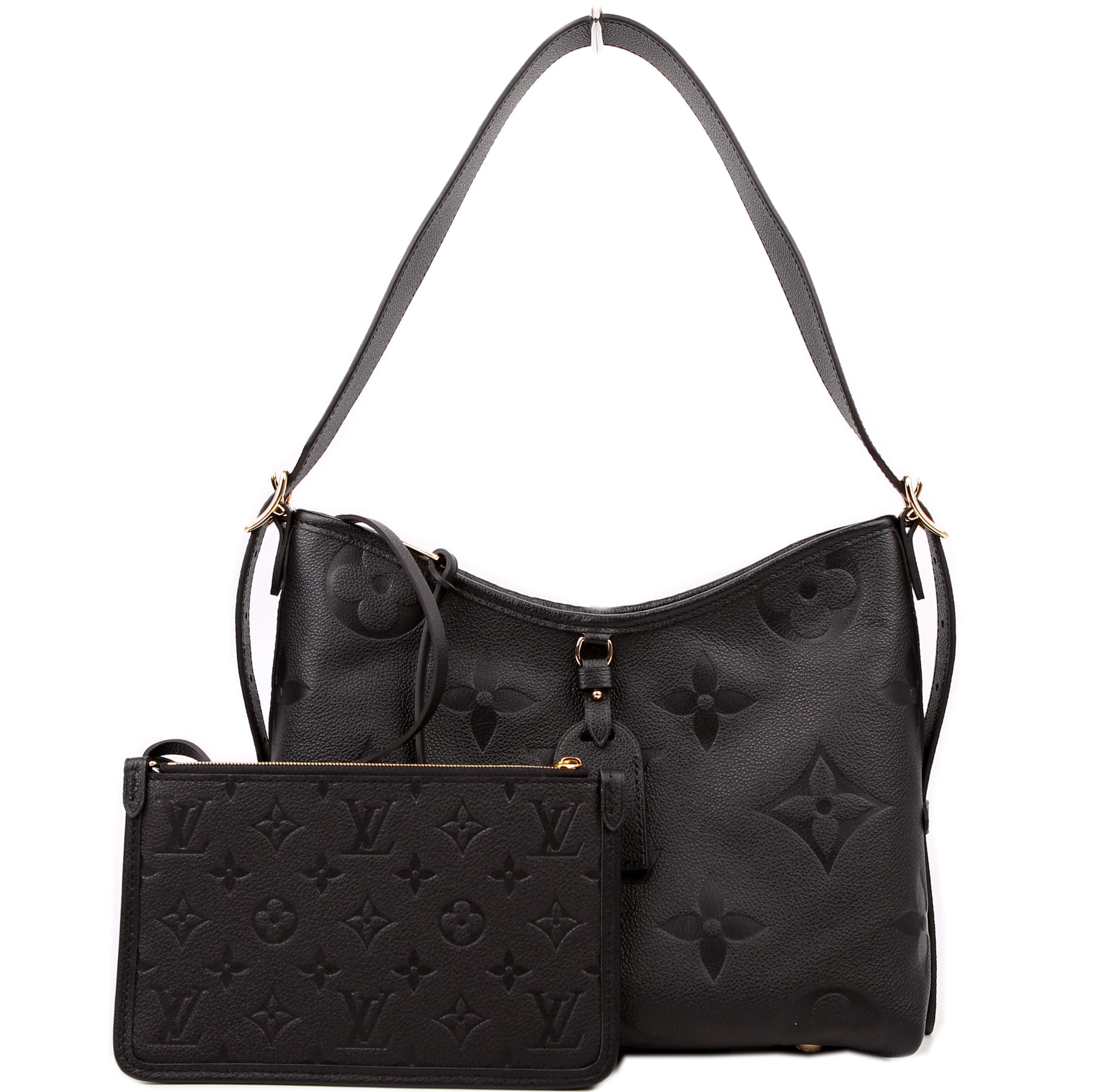 This pre-owned Louis Vuitton Carryall PM is guaranteed 100% authentic. The exterior is in the classic Louis Vuitton Empreinte leather.