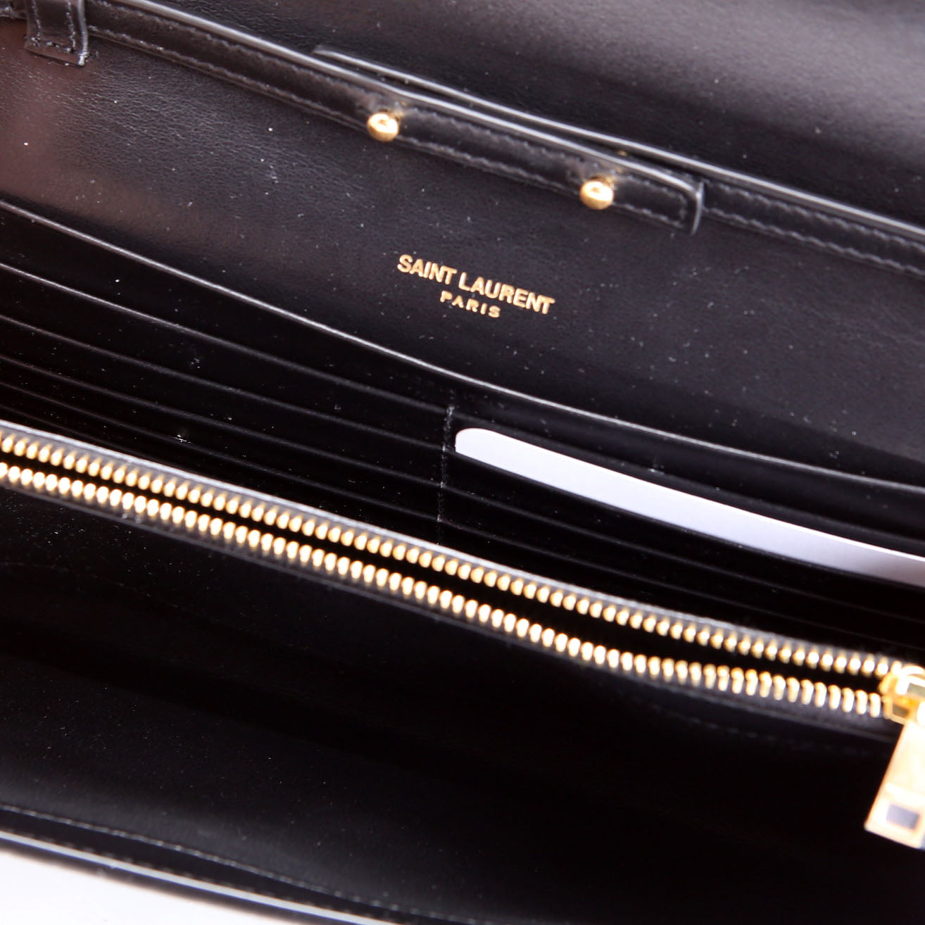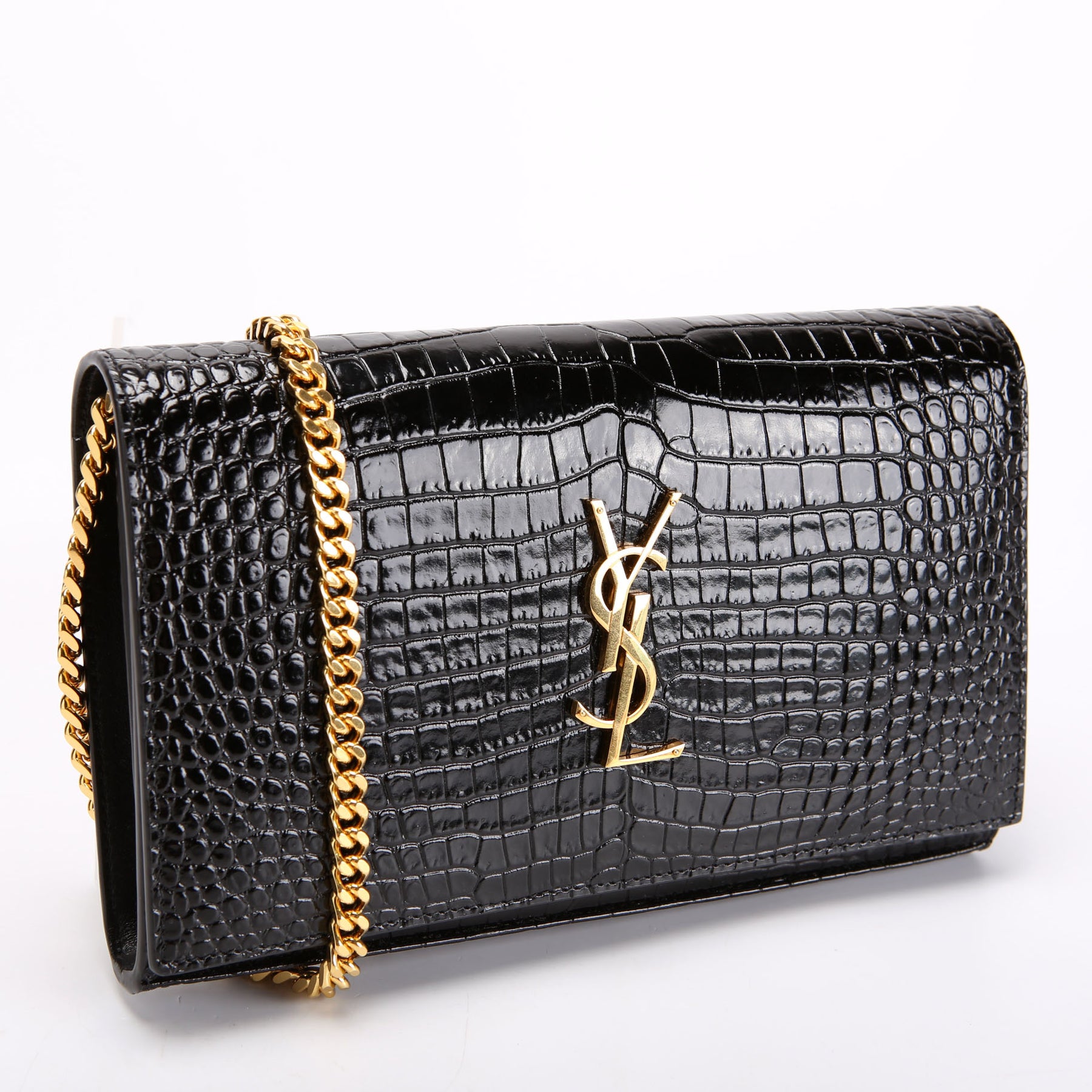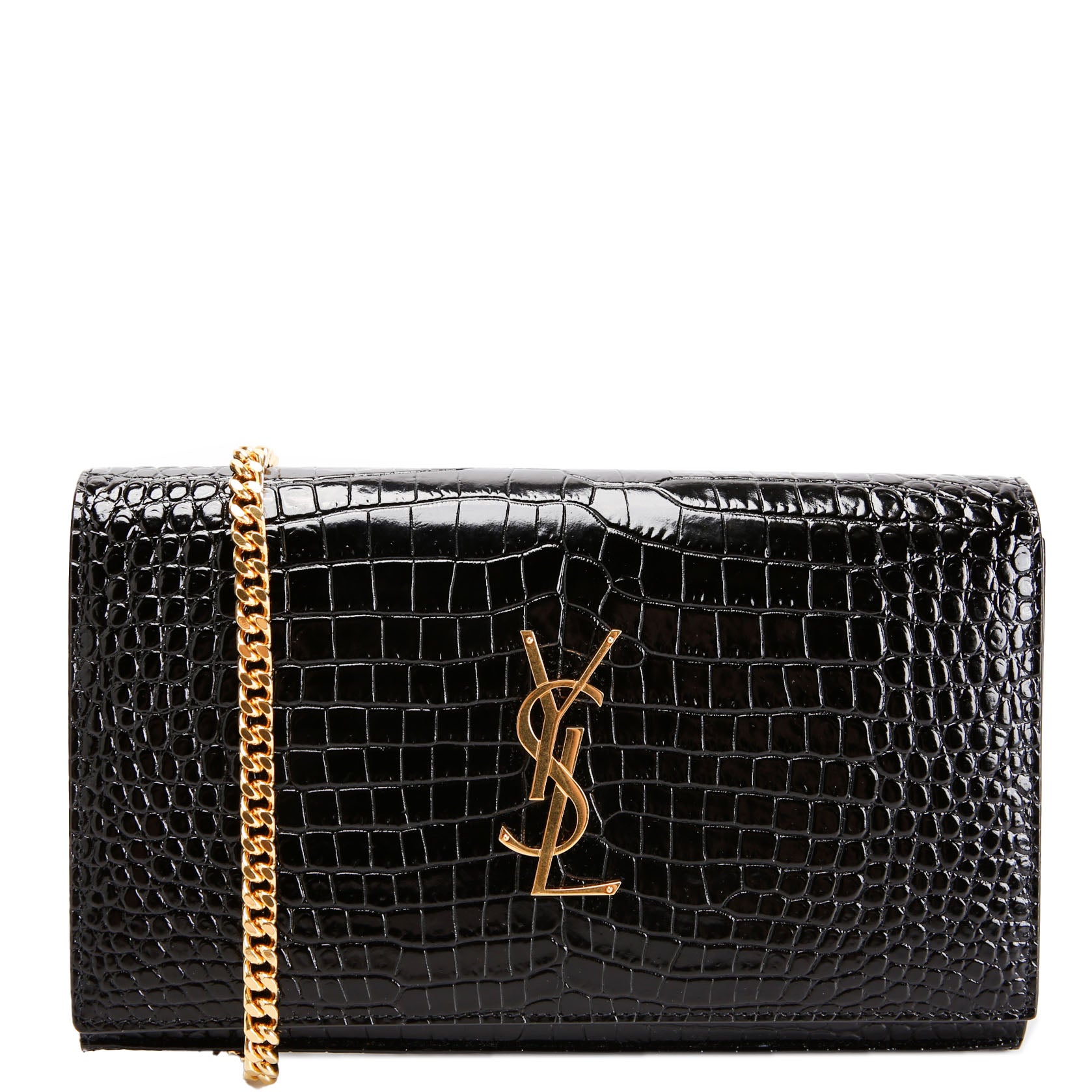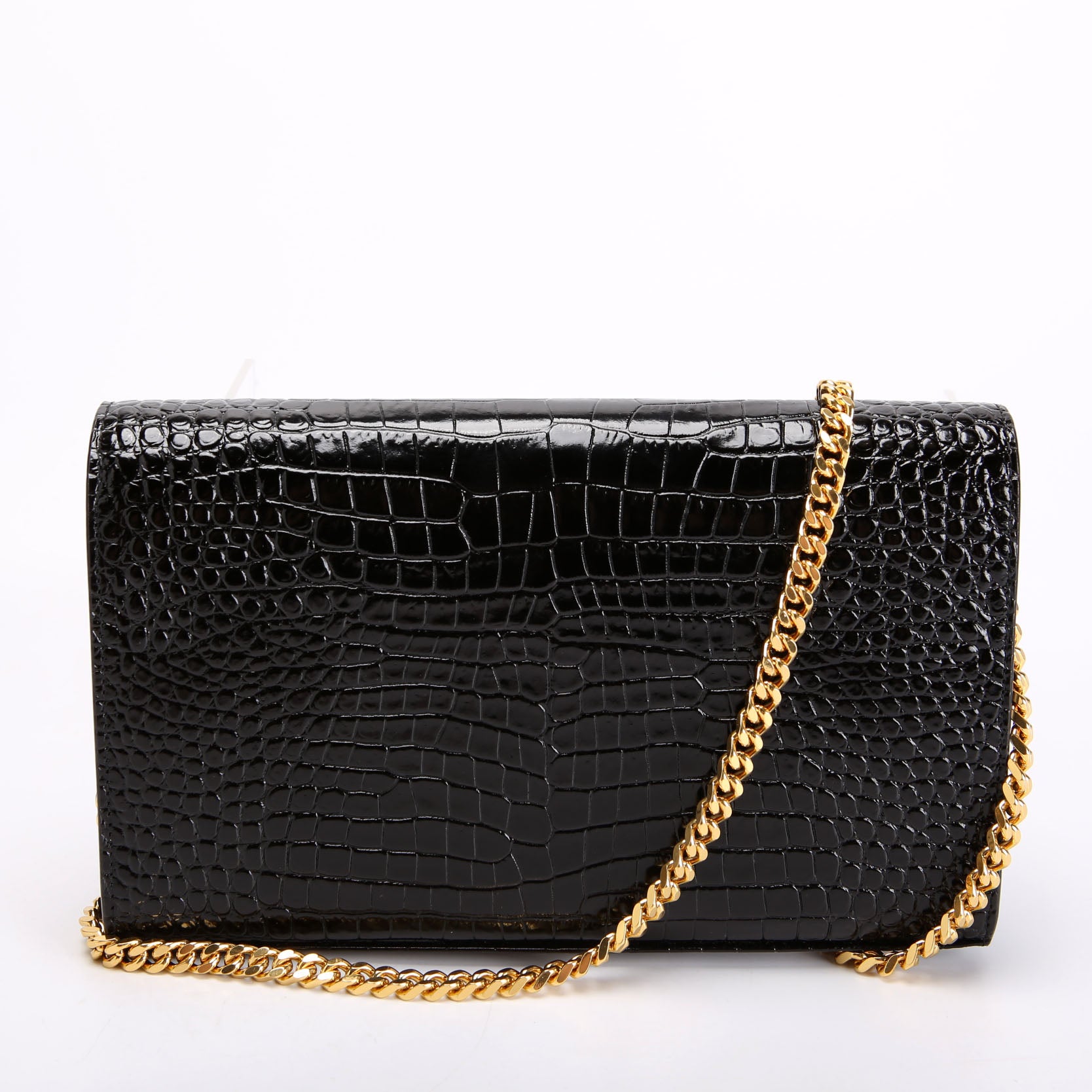 This pre-owned Saint Laurent Cassandre Chain Wallet Crocodile Embossed is guaranteed 100% authentic.
