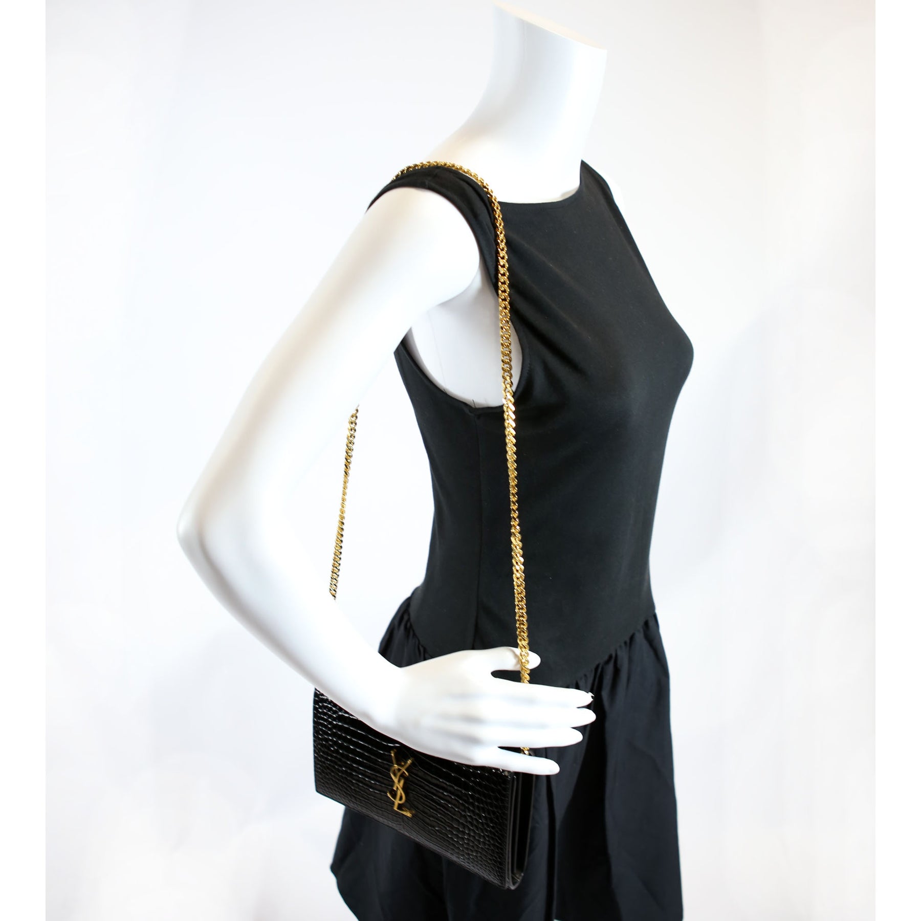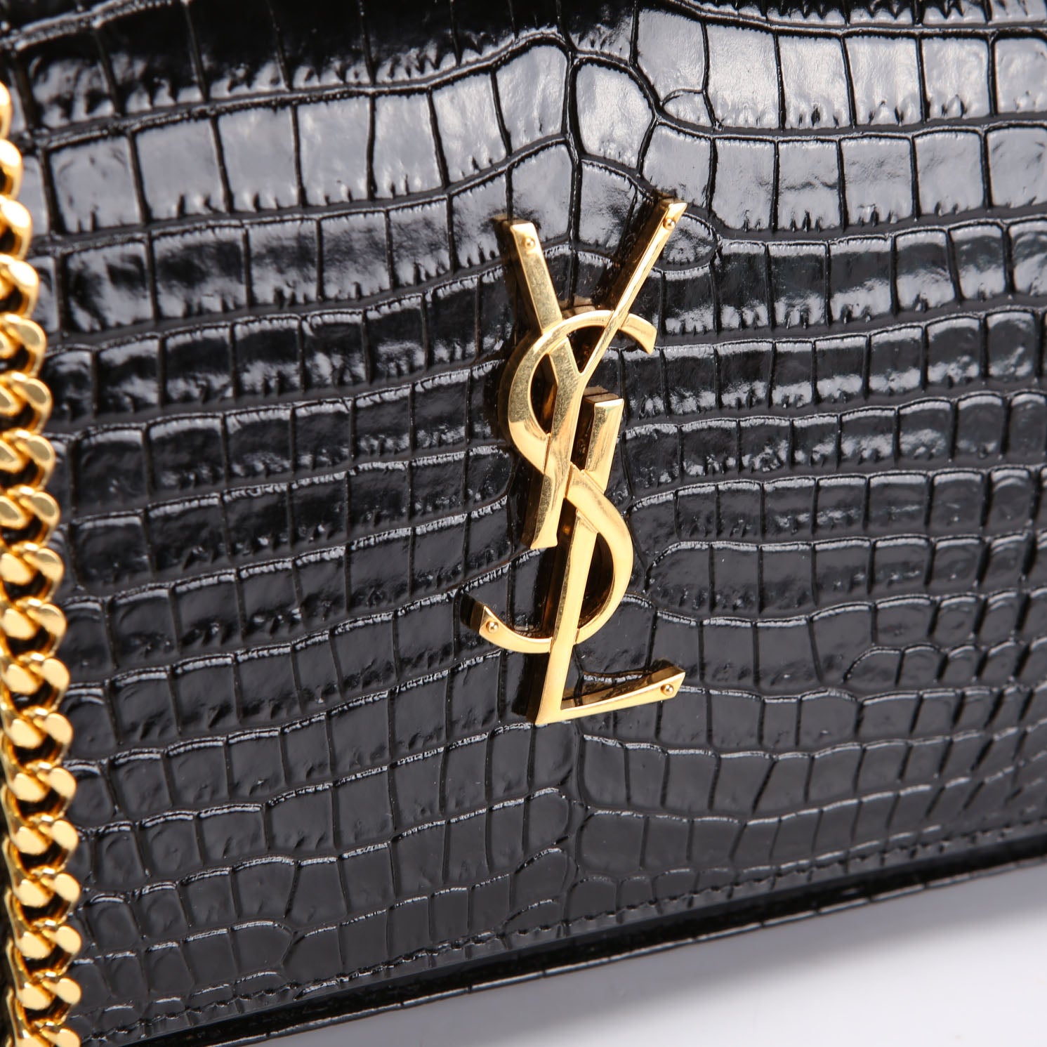 Cassandre Chain Wallet Crocodile Embossed 747464 Black
