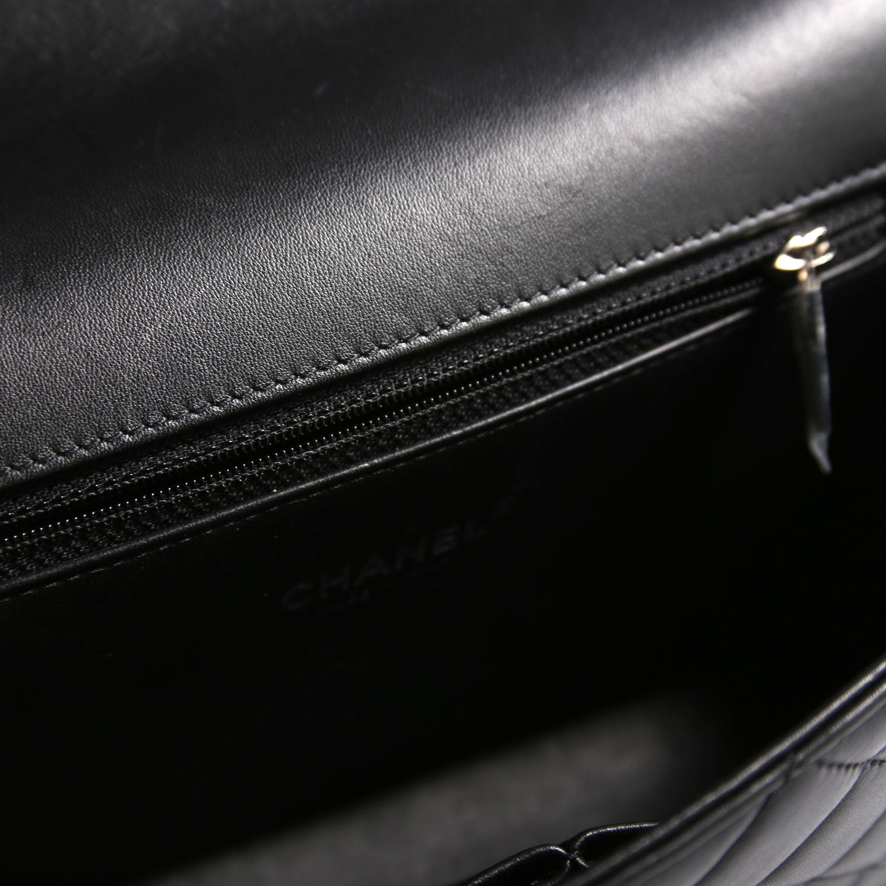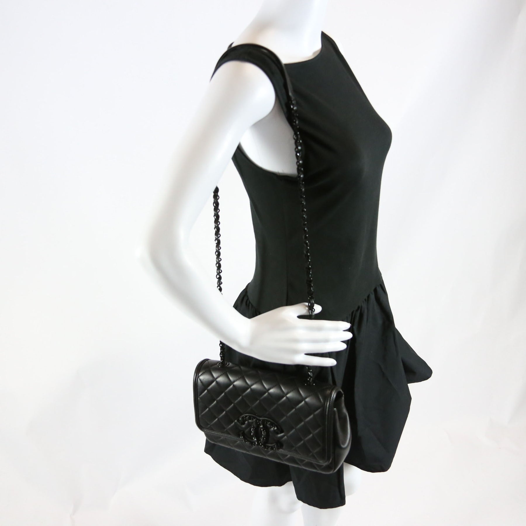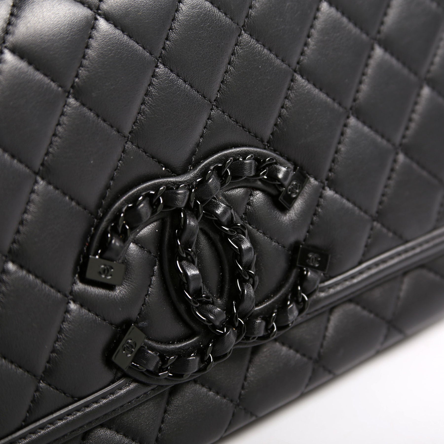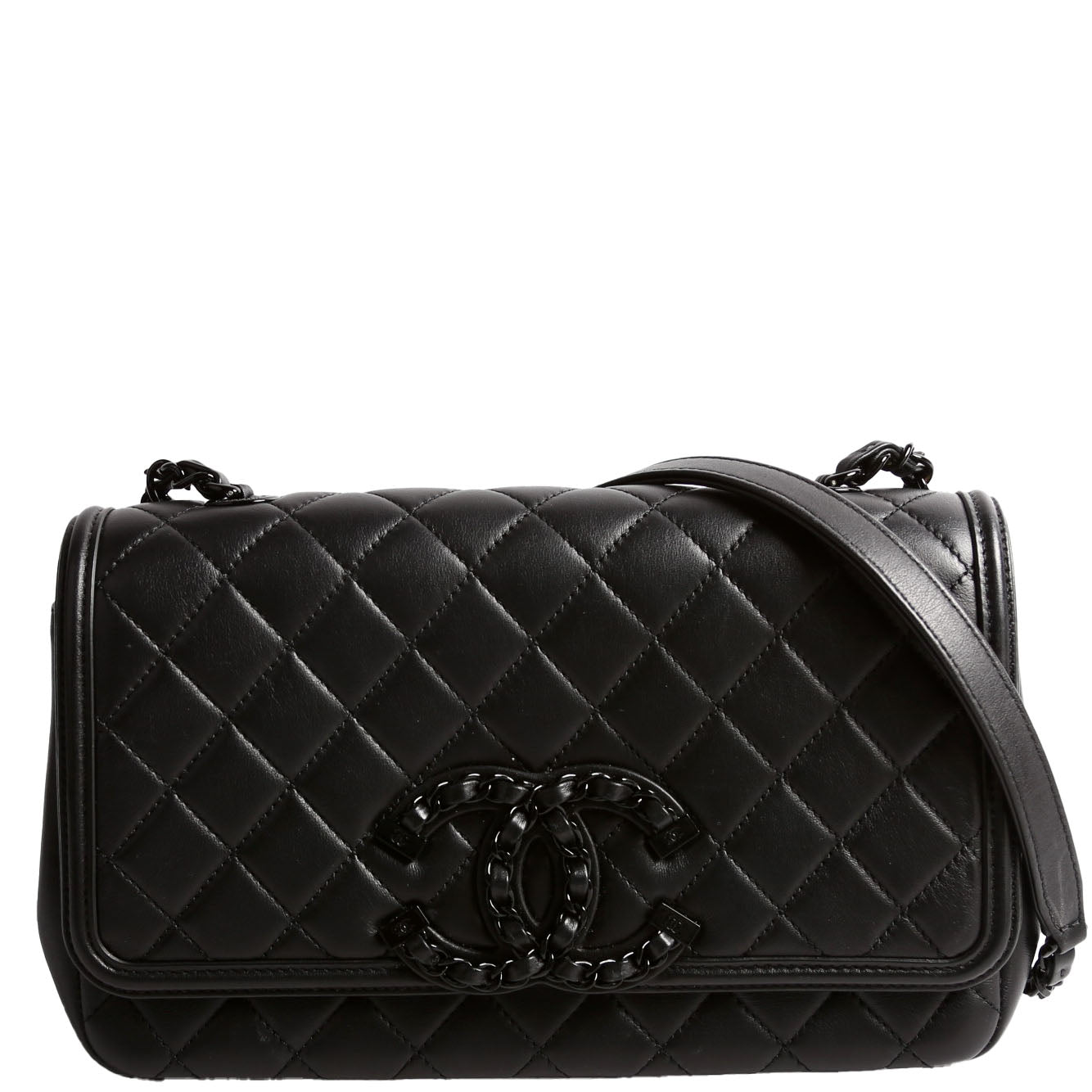 This pre-owned Chanel CC Filigree Flap Bag is guaranteed 100% authentic. The exterior is in the classic Chanel Lambskin Leather.
