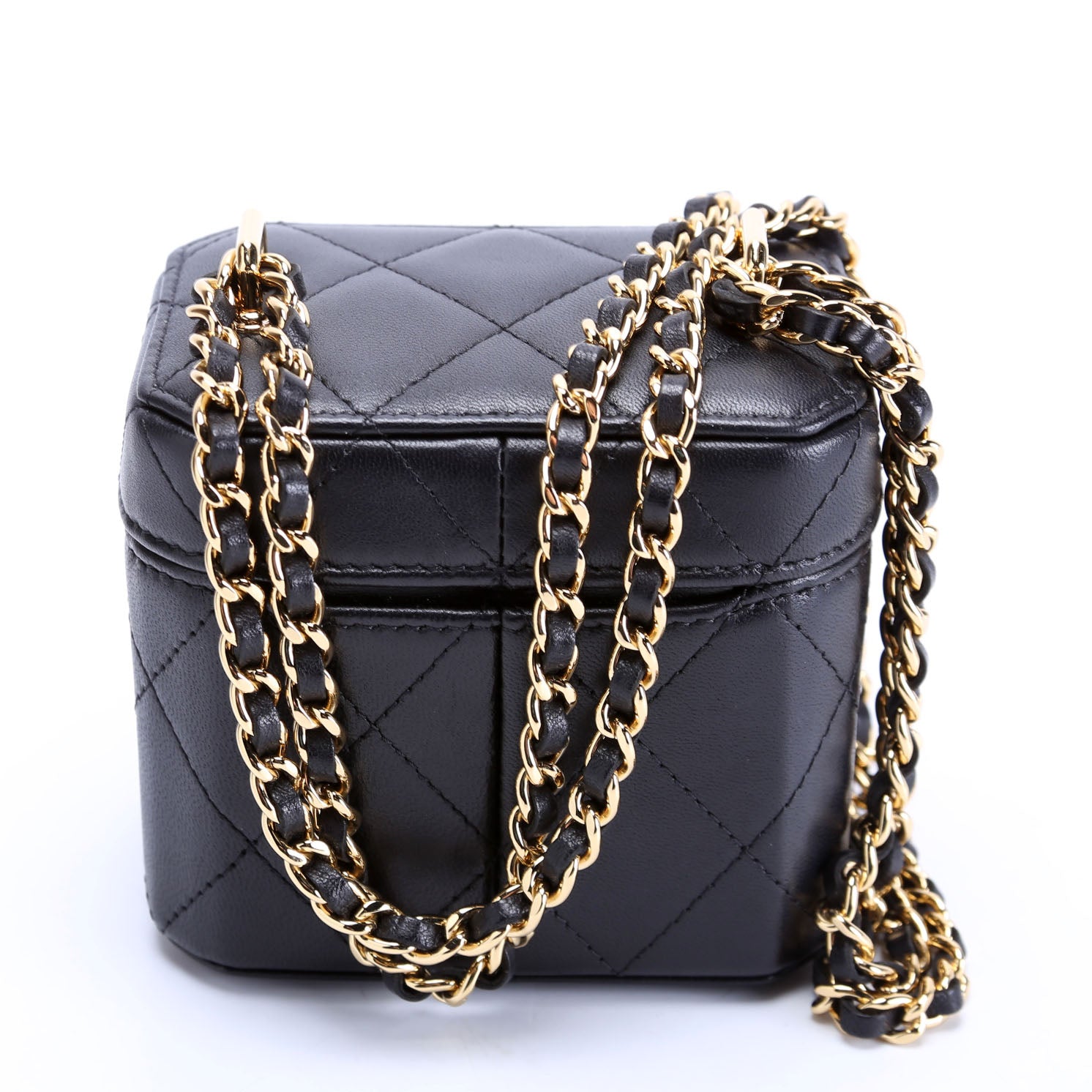 CC Turnlock Mini Vanity Clutch With Chain Quilted Lamb RFID Black