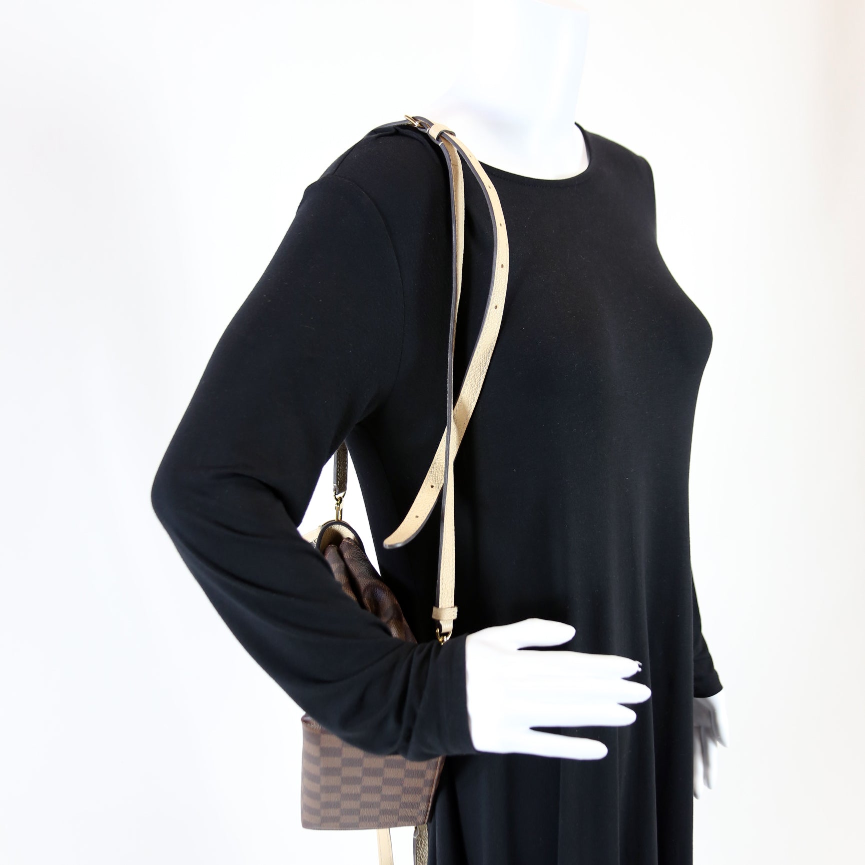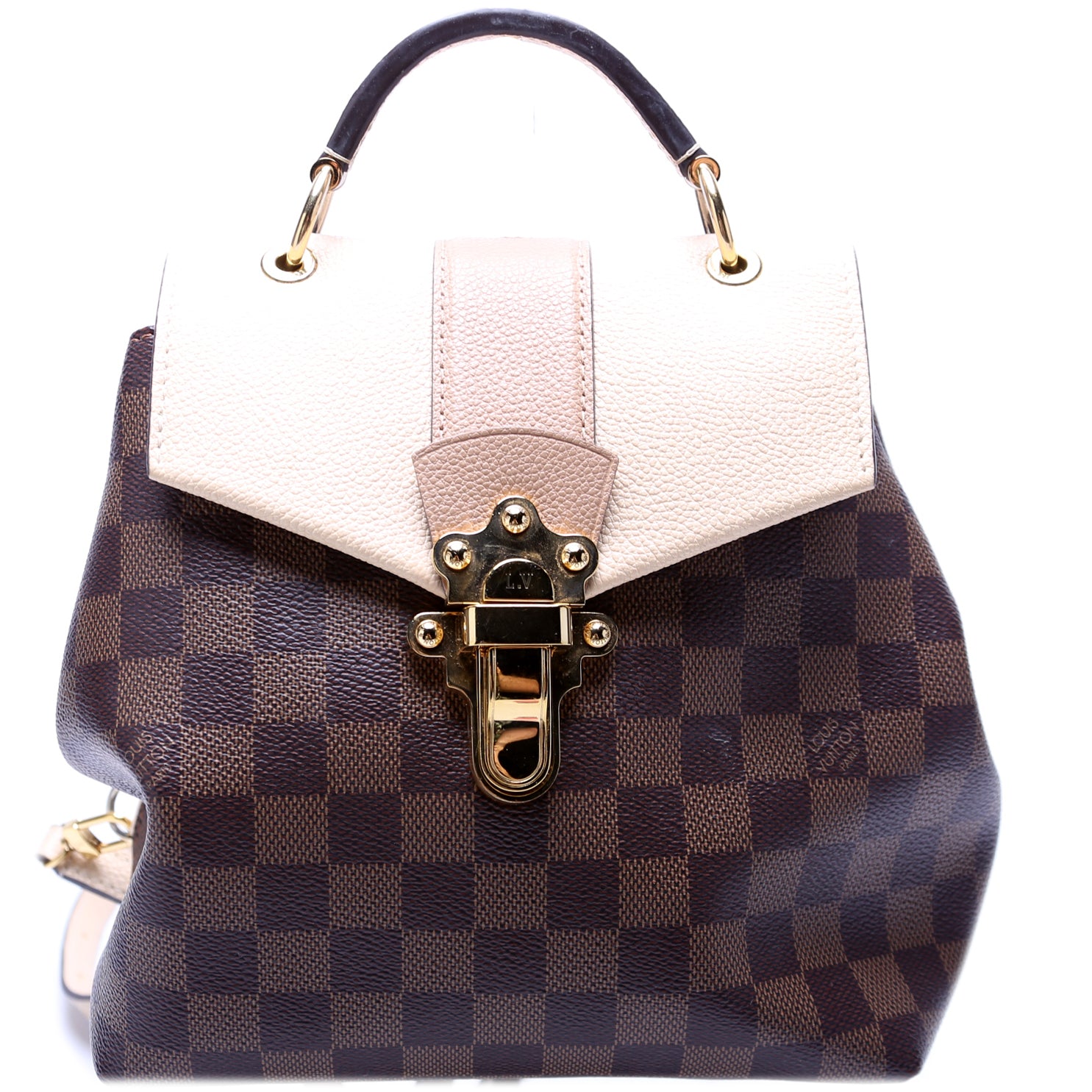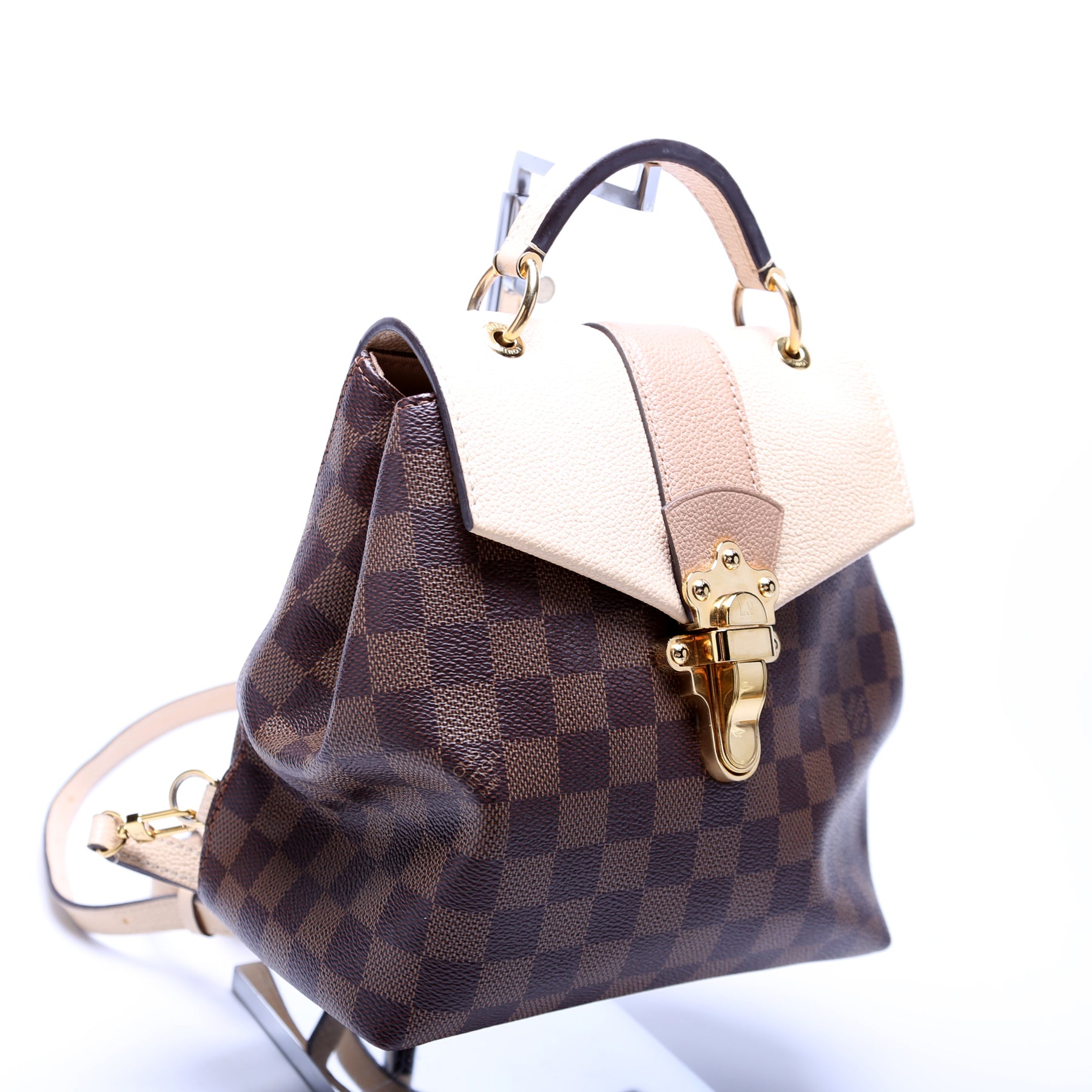This pre-owned Louis Vuitton Clapton Backpack is guaranteed 100% authentic. The exterior is in the classic Louis Vuitton Damier Ebene coated canvas.