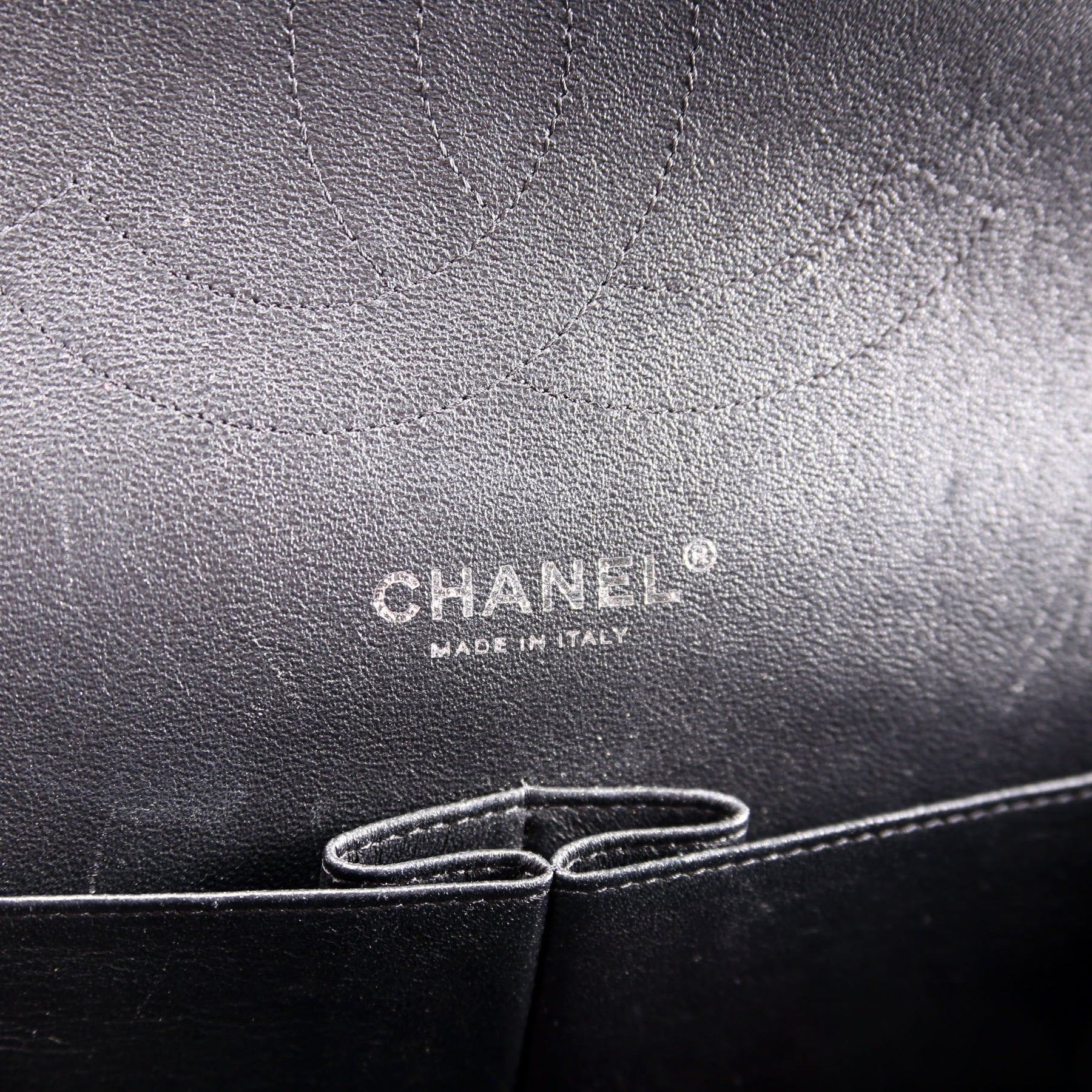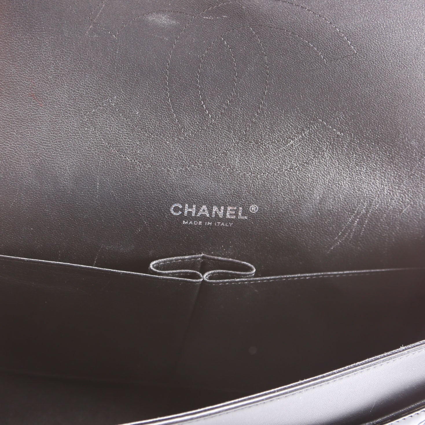 This pre-owned Channel Classic Flap Jumbo is guaranteed 100% authentic. The exterior is in the classic Chanel Patent leather.