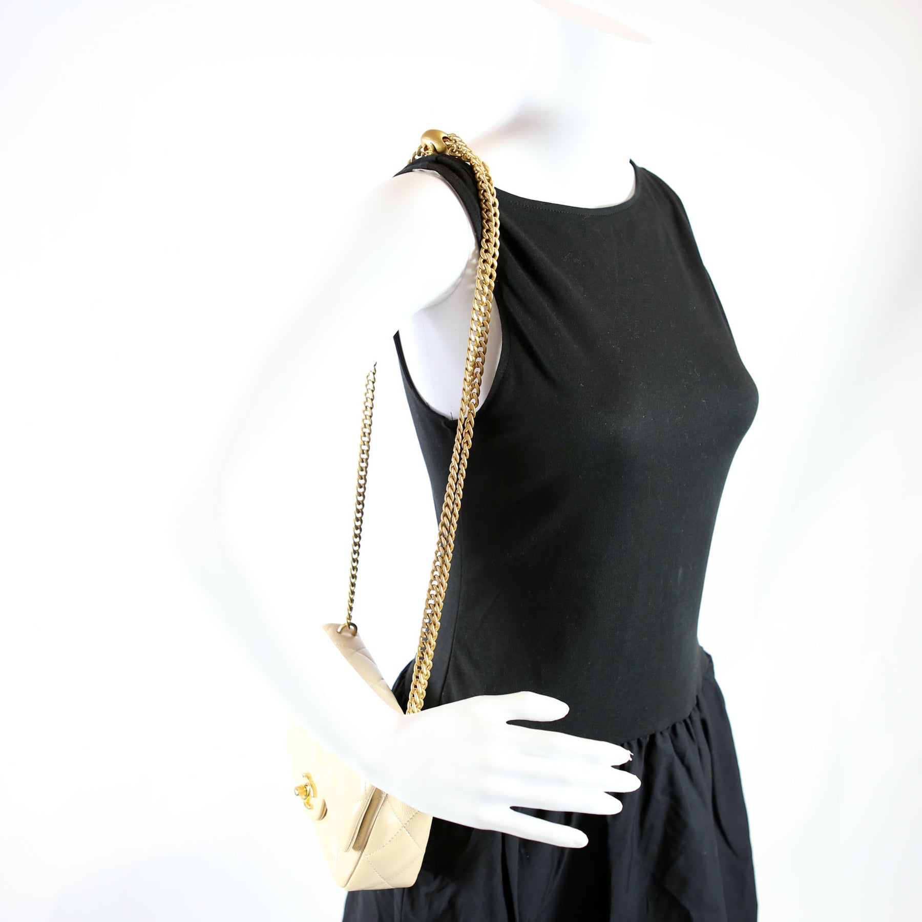 Classic Flap Mini Sweetheart Chain Caviar RFID Beige