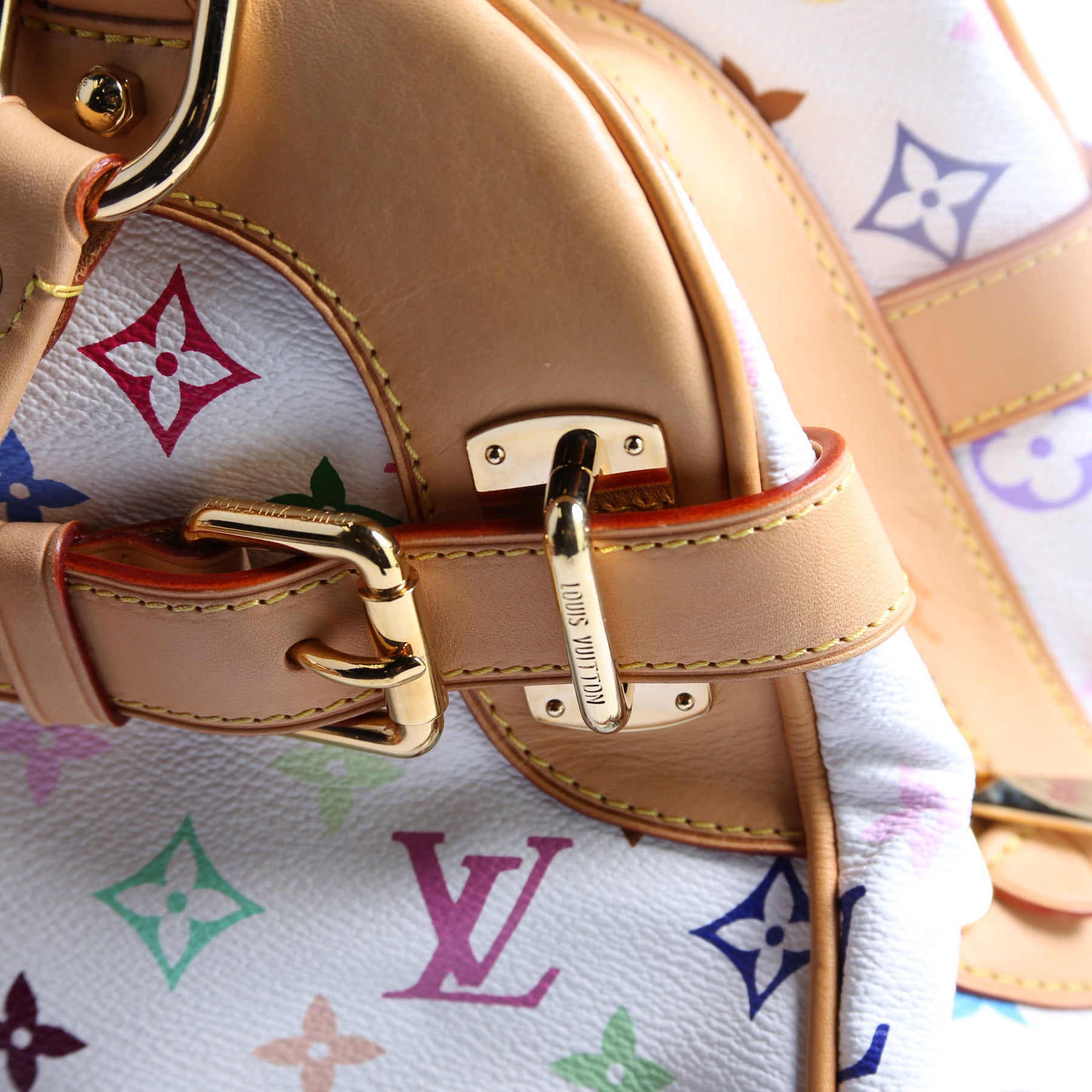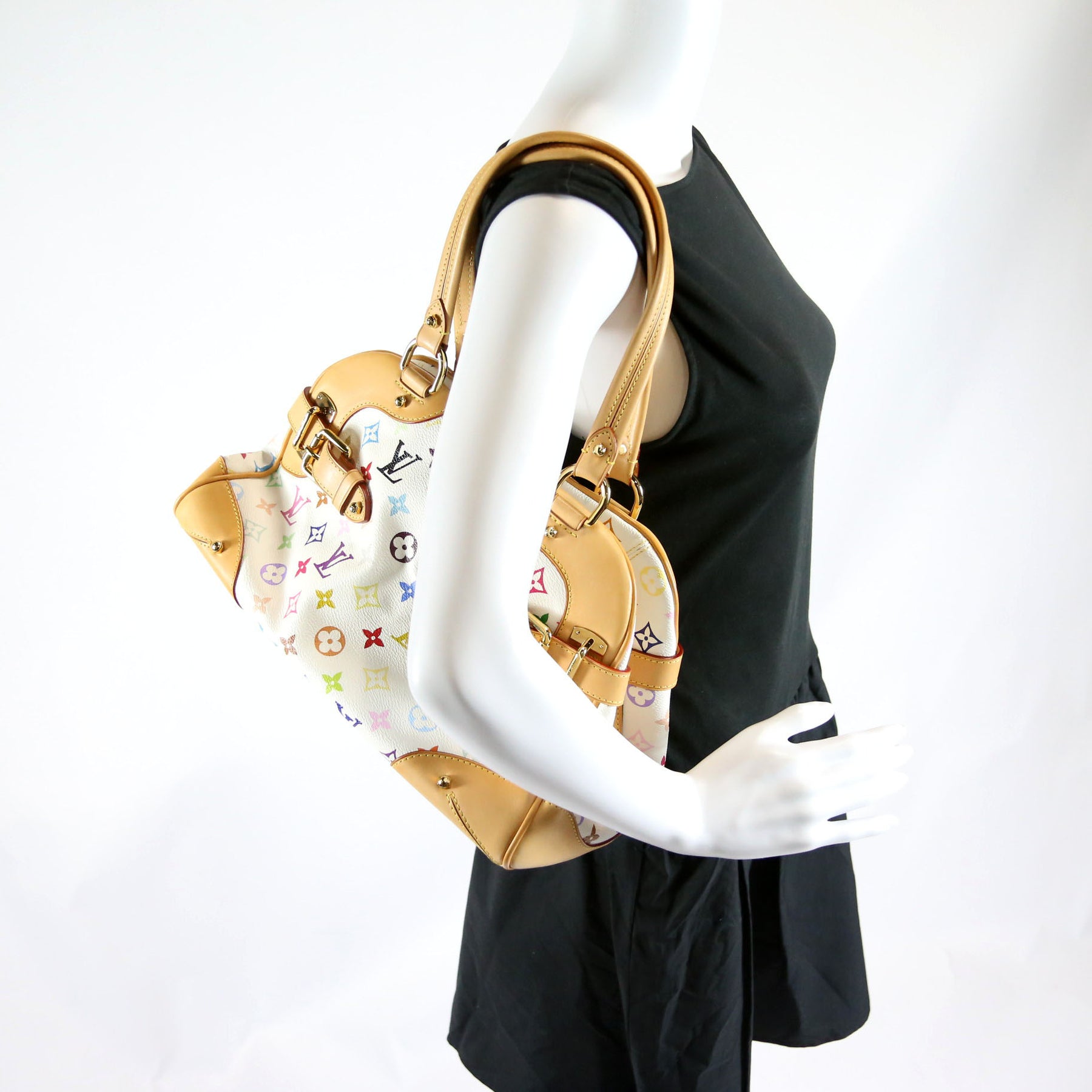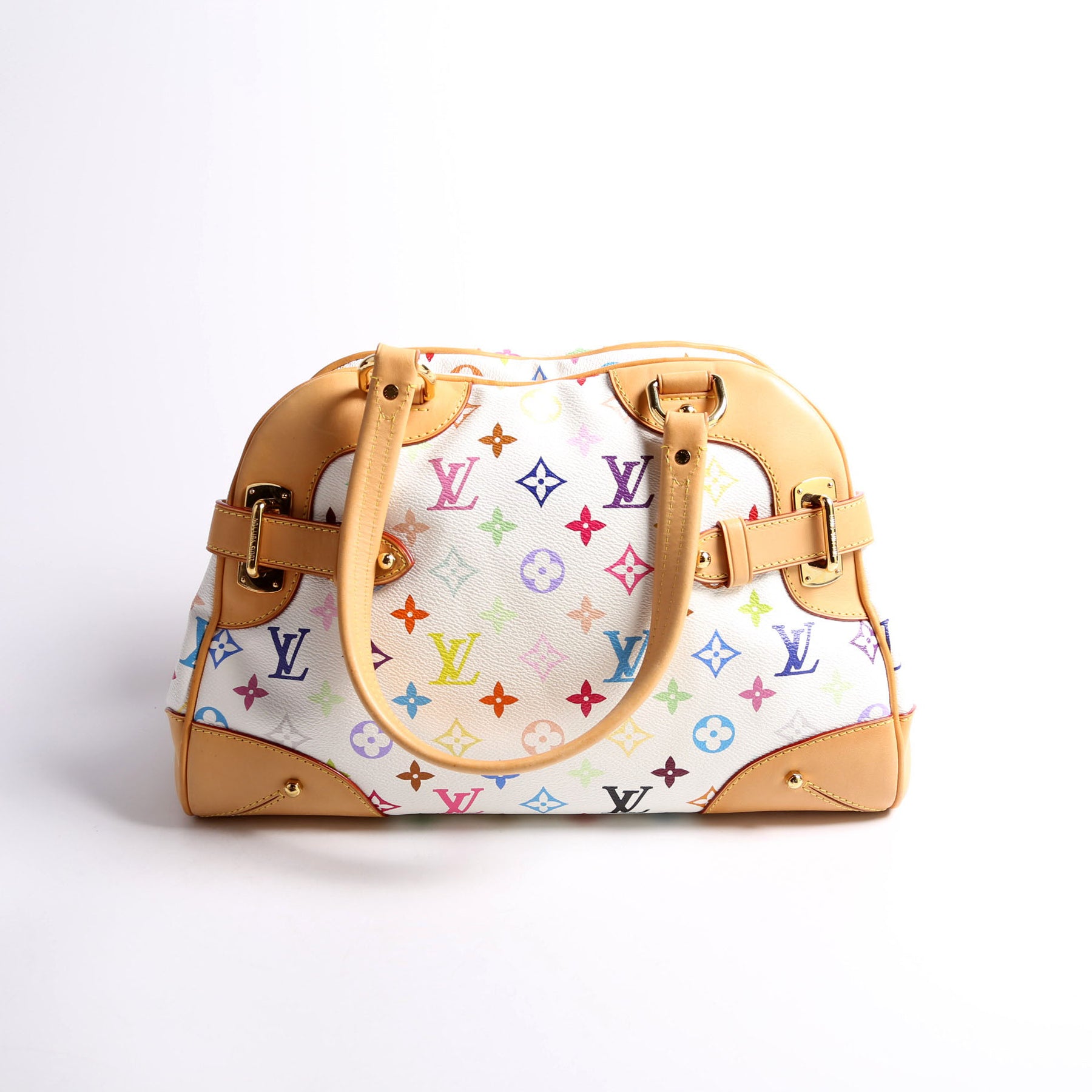 This pre-owned Louis Vuitton Claudia is guaranteed 100% authentic. The exterior is in the classic Louis Vuitton Multicolor Monogram coated canvas.