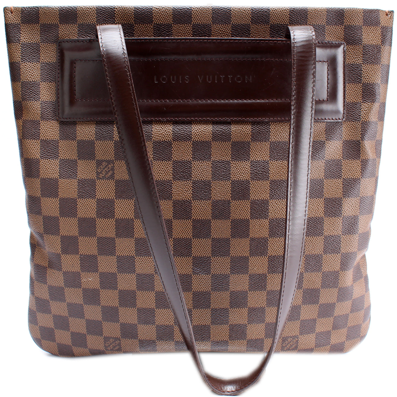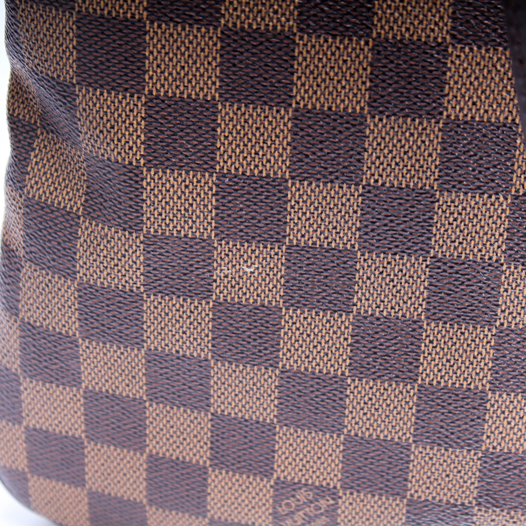 This pre-owned Louis Vuitton Clifton Tote is guaranteed 100% authentic. The exterior is in the classic Louis Vuitton Damier Ebene coated canvas.