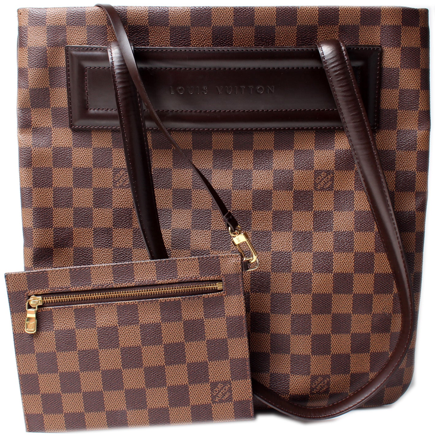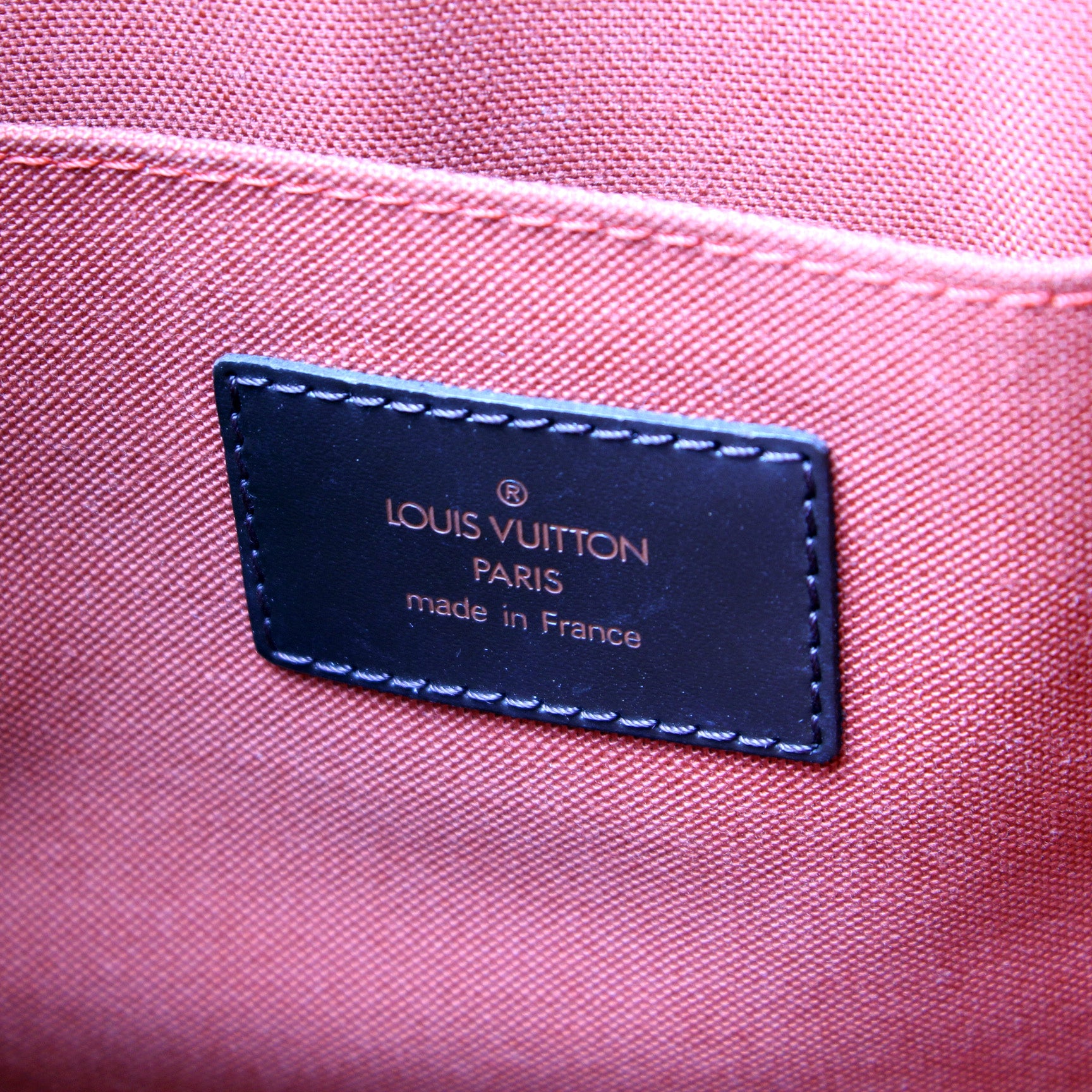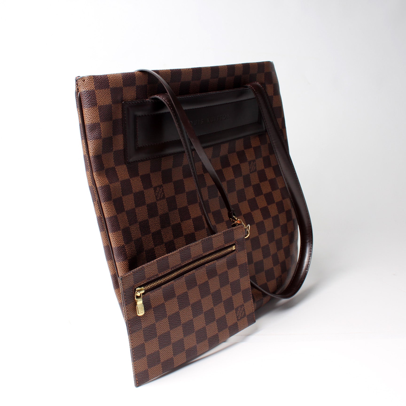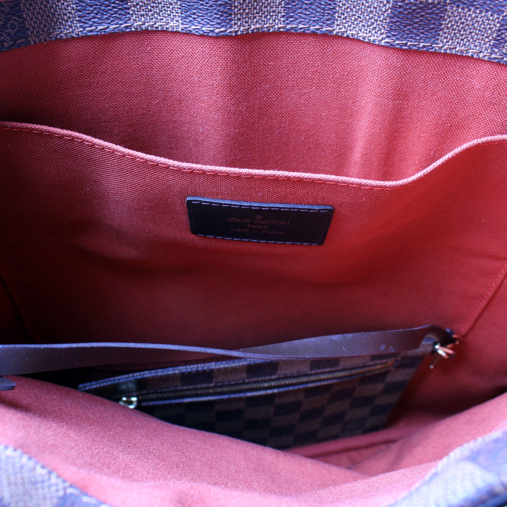 This pre-owned Louis Vuitton Clifton Tote is guaranteed 100% authentic. The exterior is in the classic Louis Vuitton Damier Ebene coated canvas.