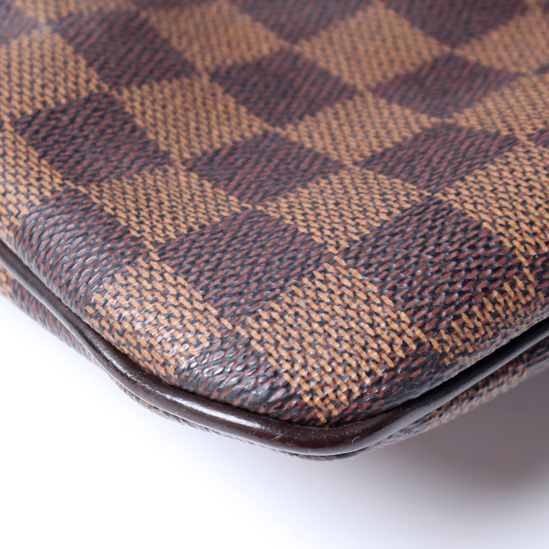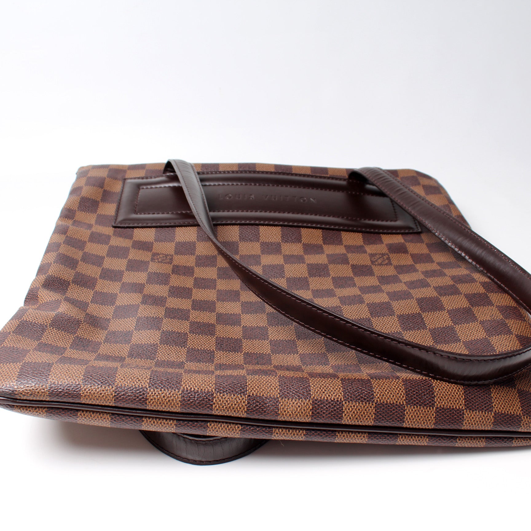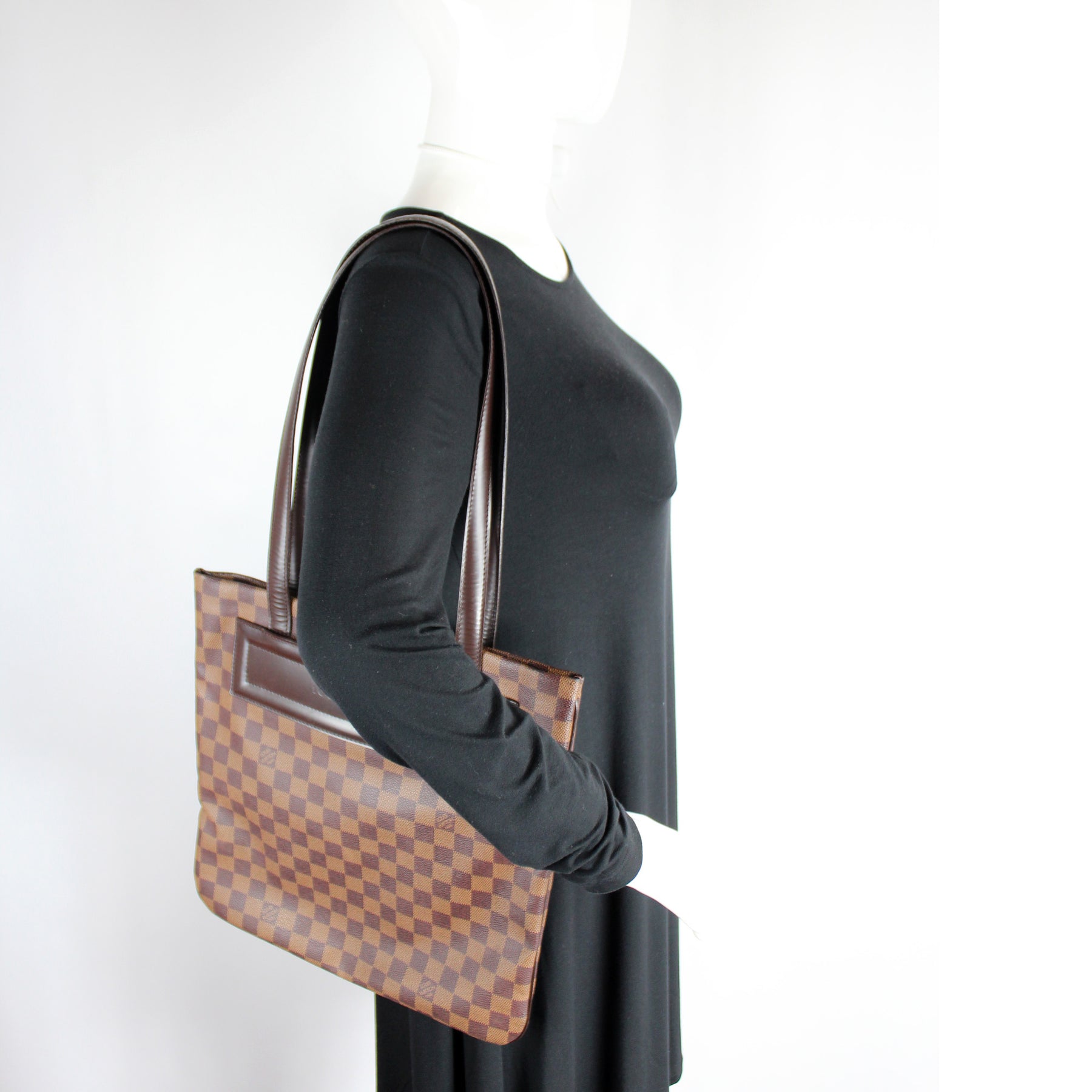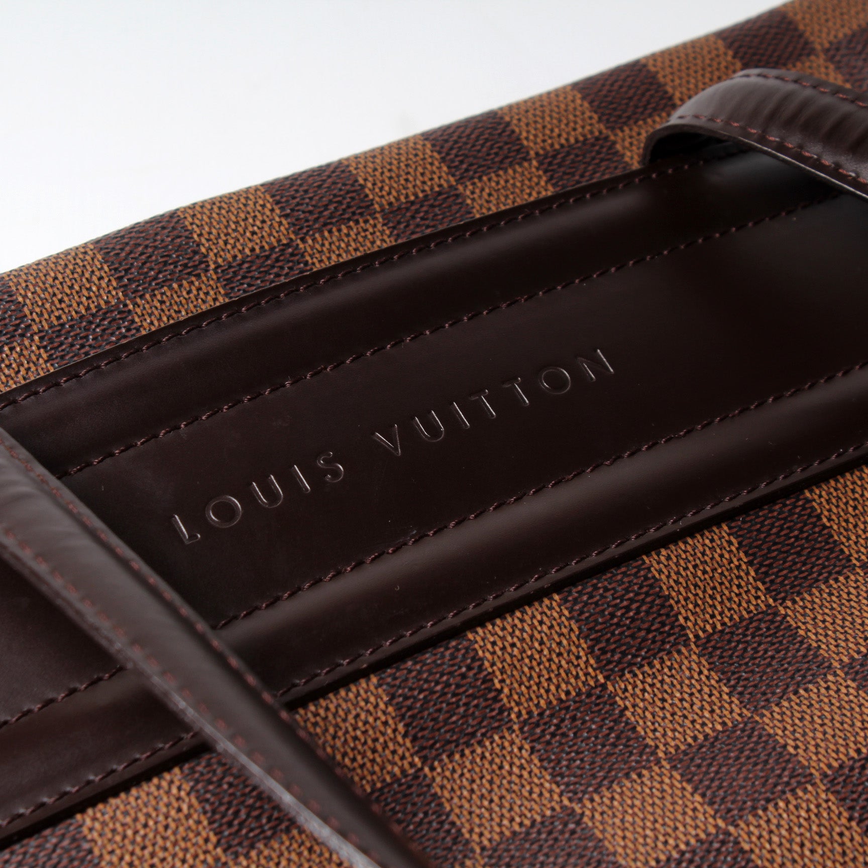 This pre-owned Louis Vuitton Clifton Tote is guaranteed 100% authentic. The exterior is in the classic Louis Vuitton Damier Ebene coated canvas.
