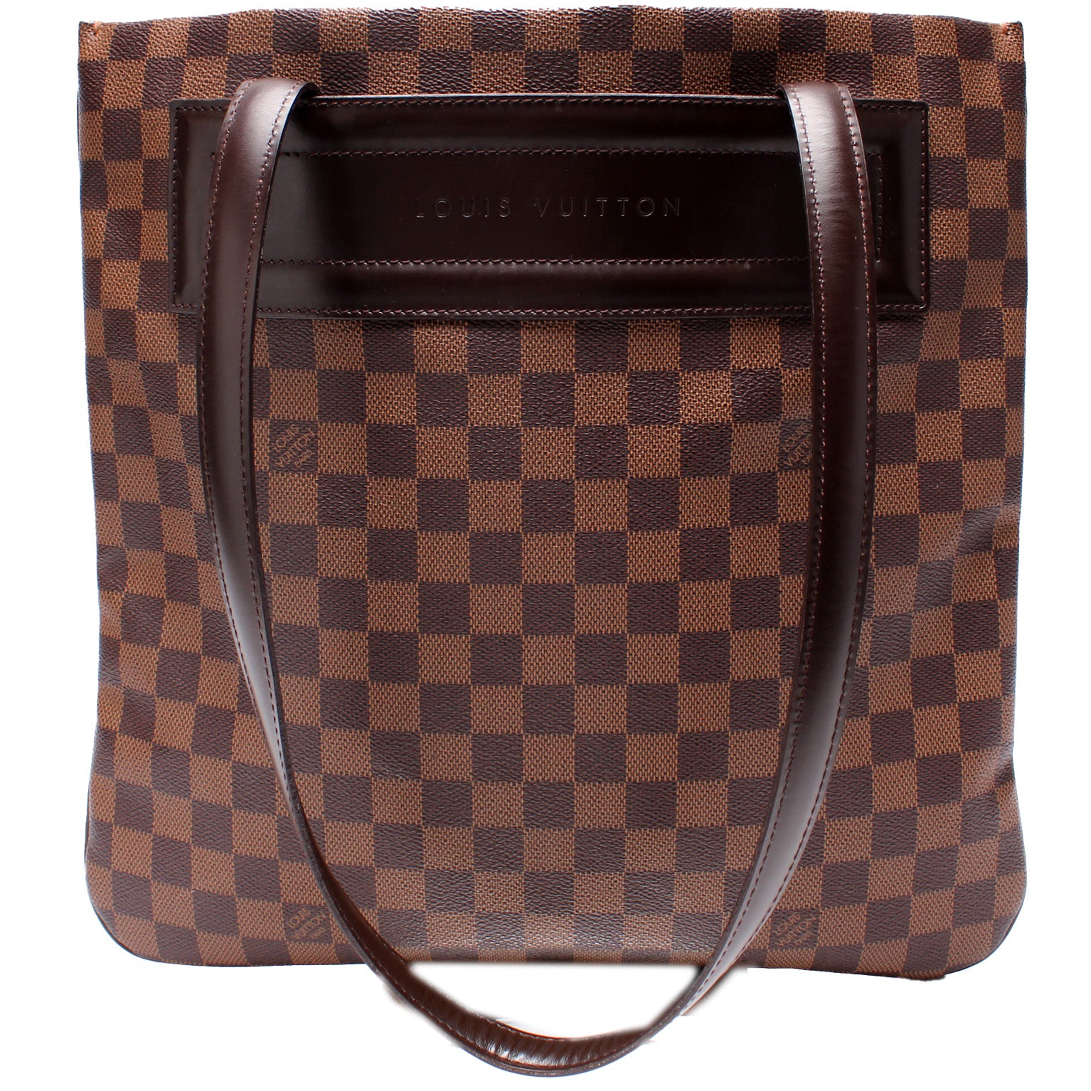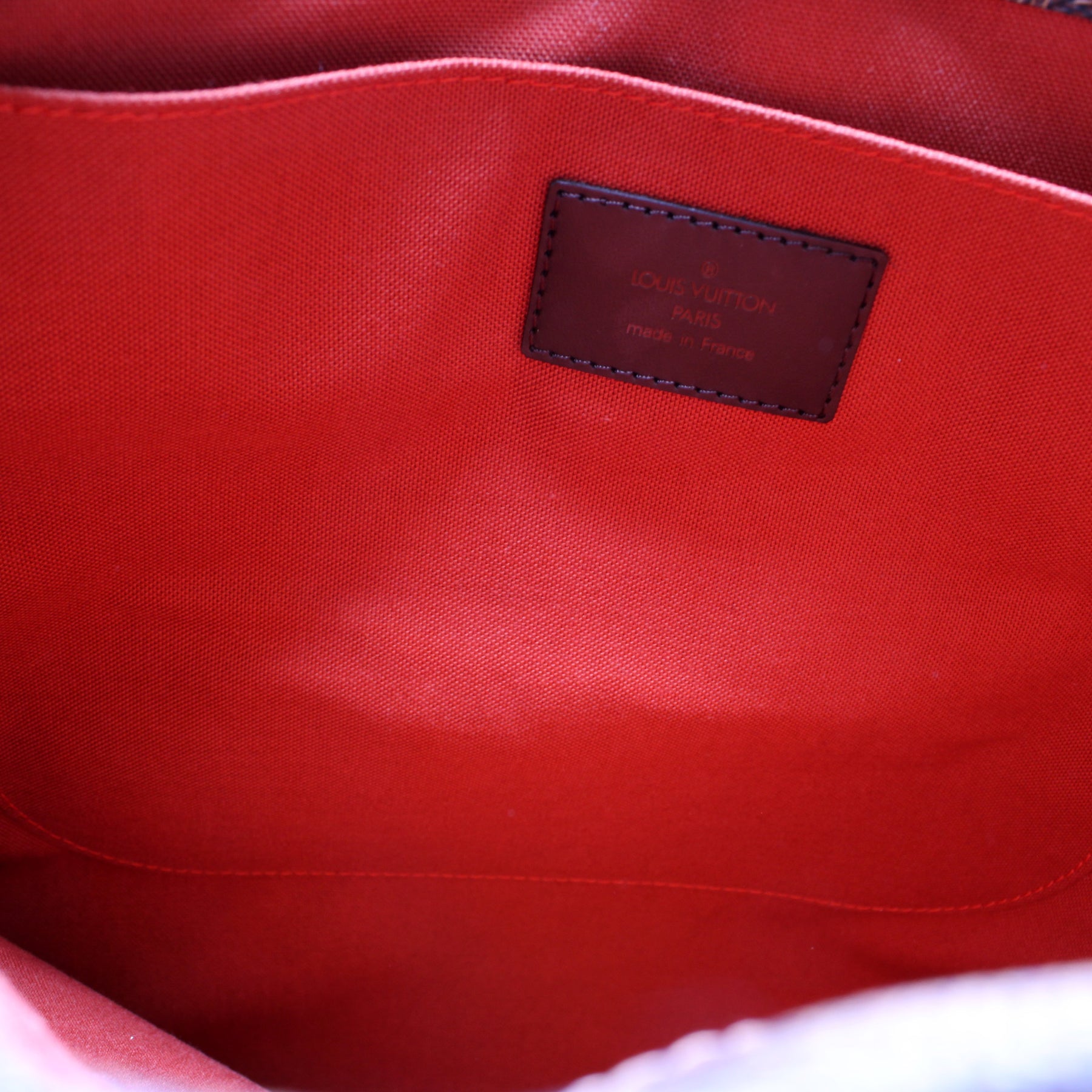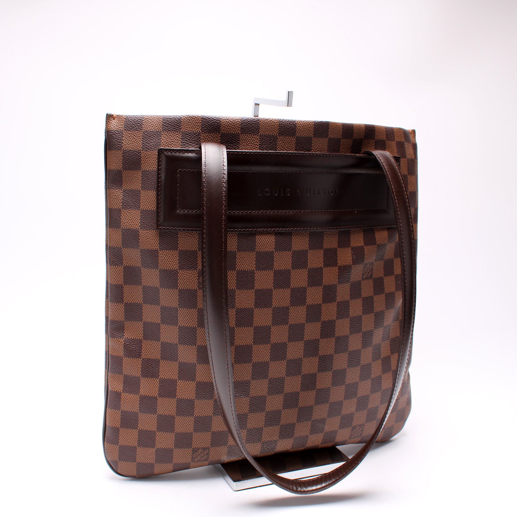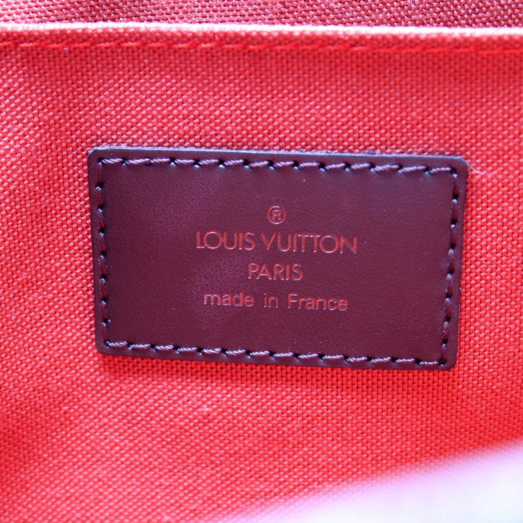 This pre-owned Louis Vuitton Clifton Tote is guaranteed 100% authentic. The exterior is in the classic Louis Vuitton Damier Ebene coated canvas.
