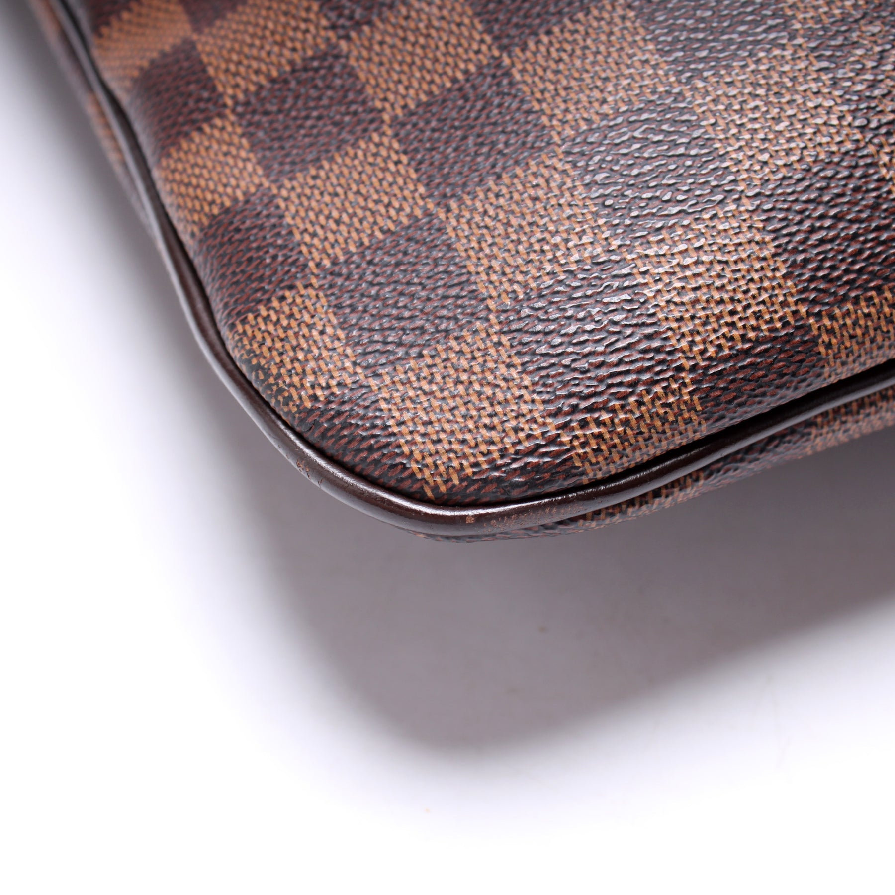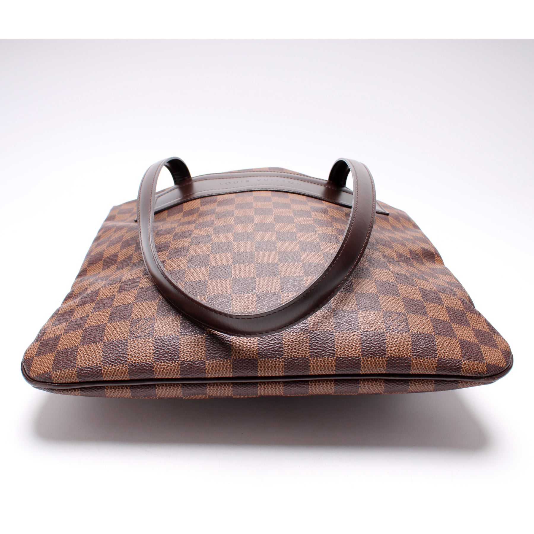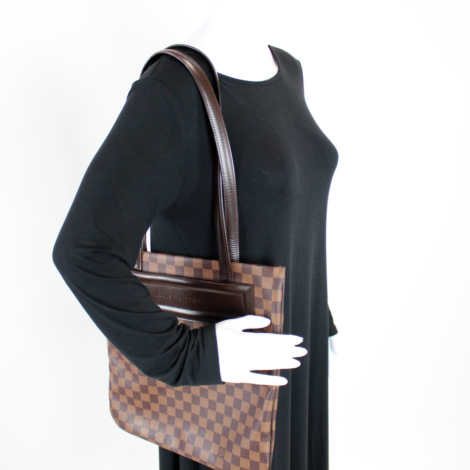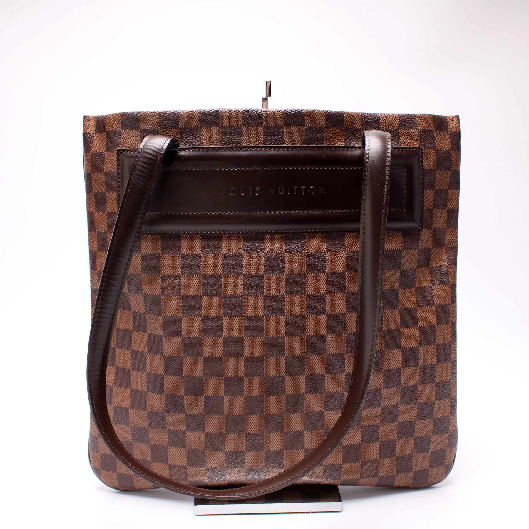 This pre-owned Louis Vuitton Clifton Tote is guaranteed 100% authentic. The exterior is in the classic Louis Vuitton Damier Ebene coated canvas.
