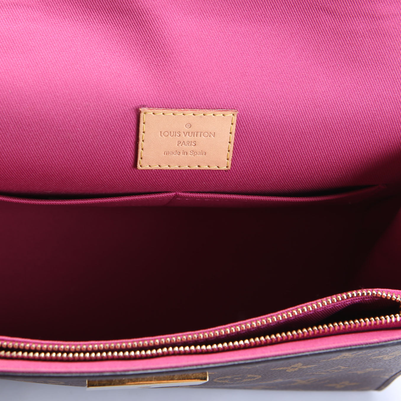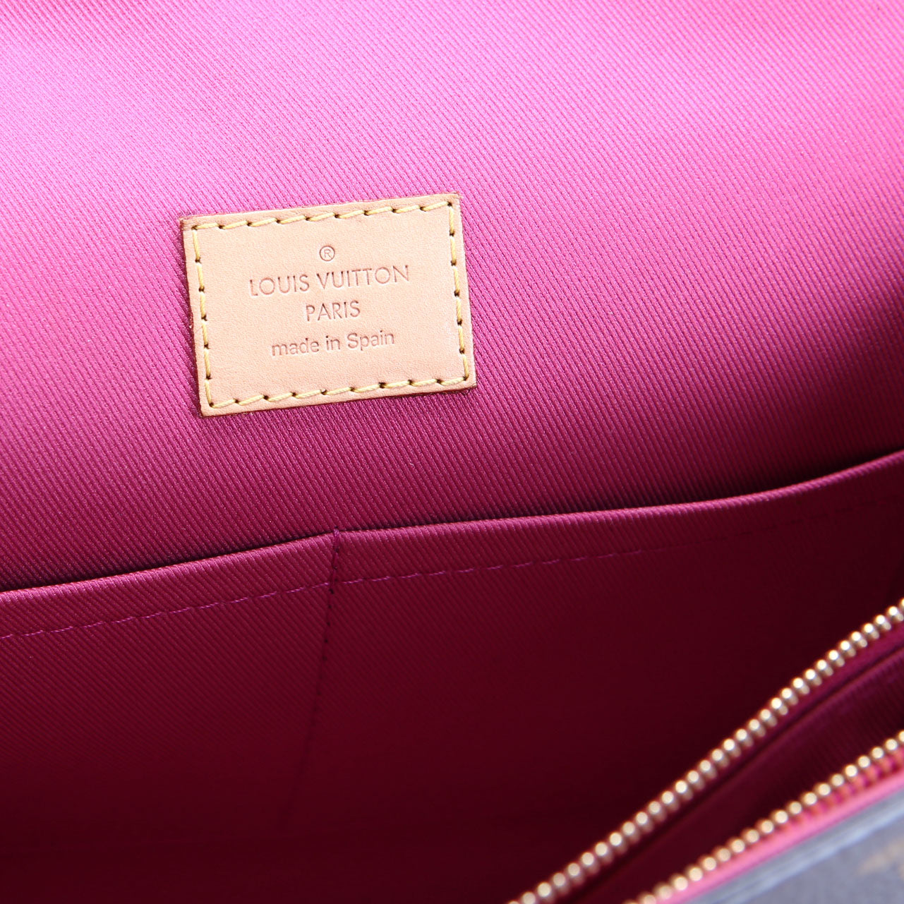 Interior: The interior is free from wear. It features two open pockets, and one zip closure pocket.