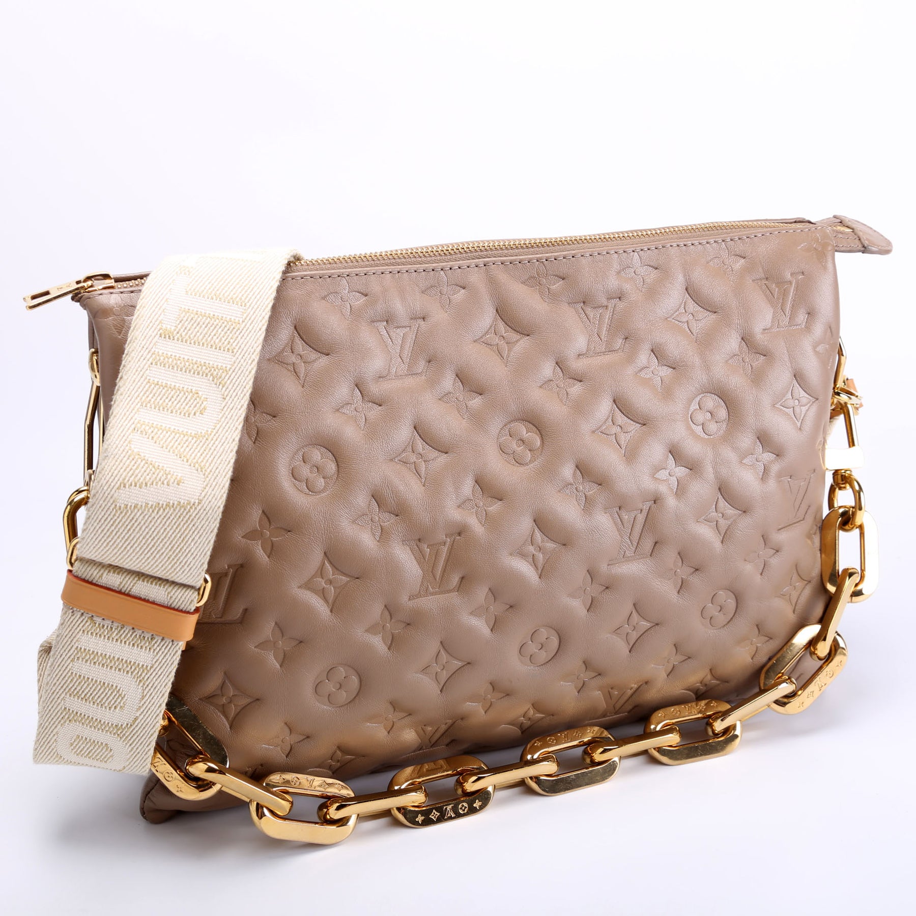 This pre-owned Louis Vuitton Coussin MM Lambskin is guaranteed 100% authentic.
