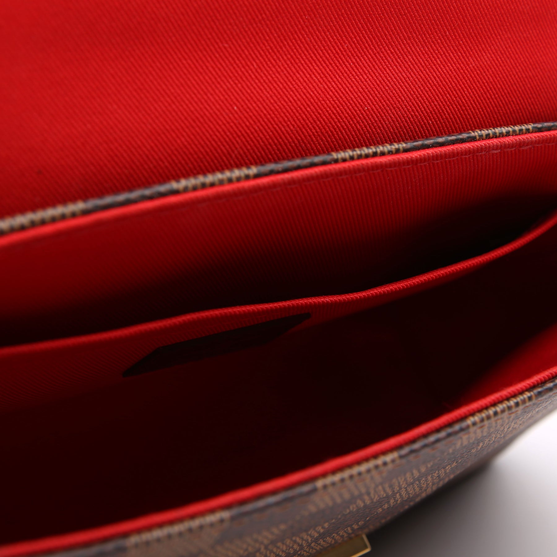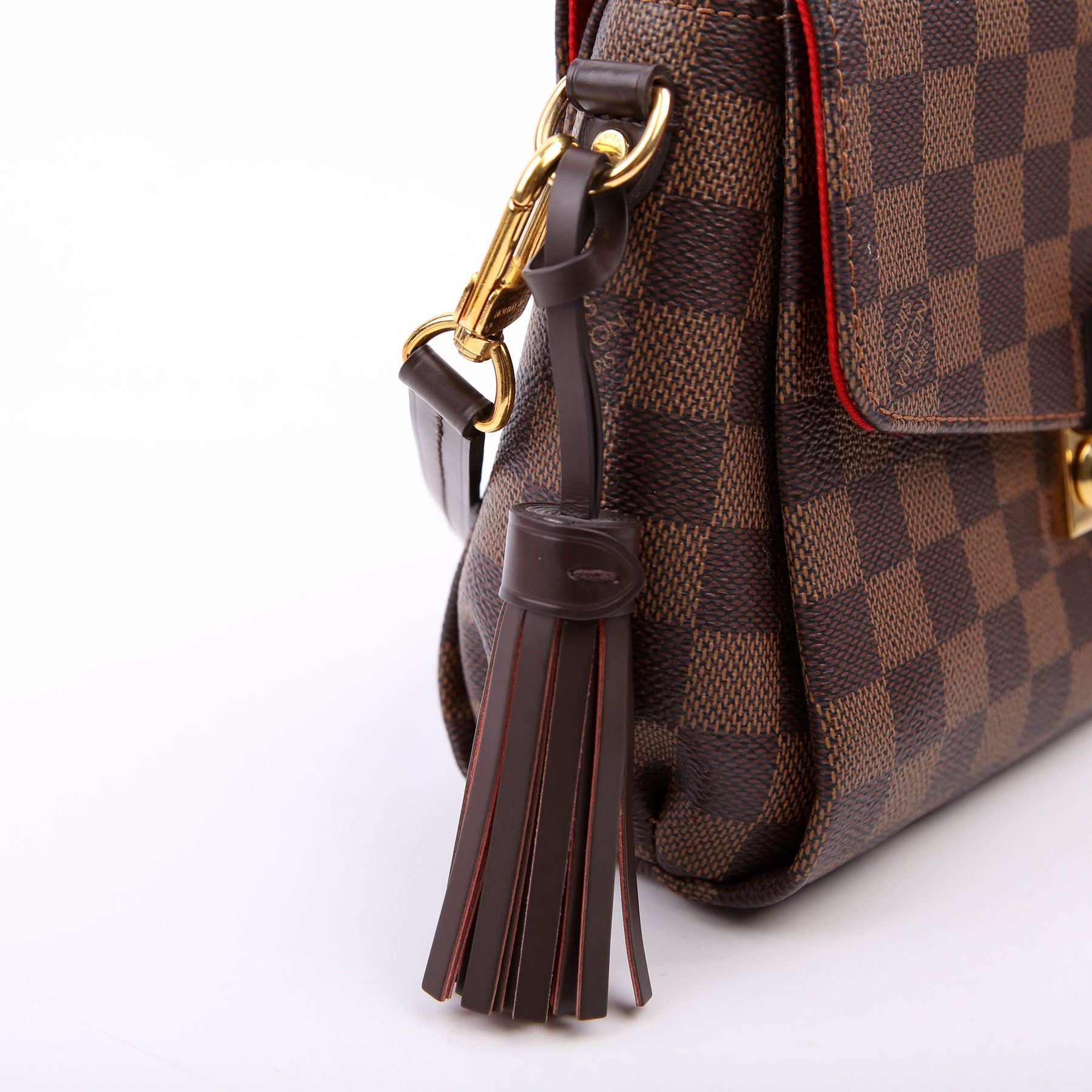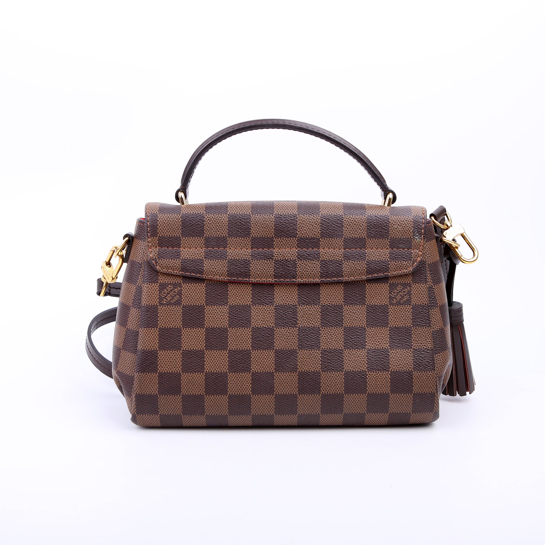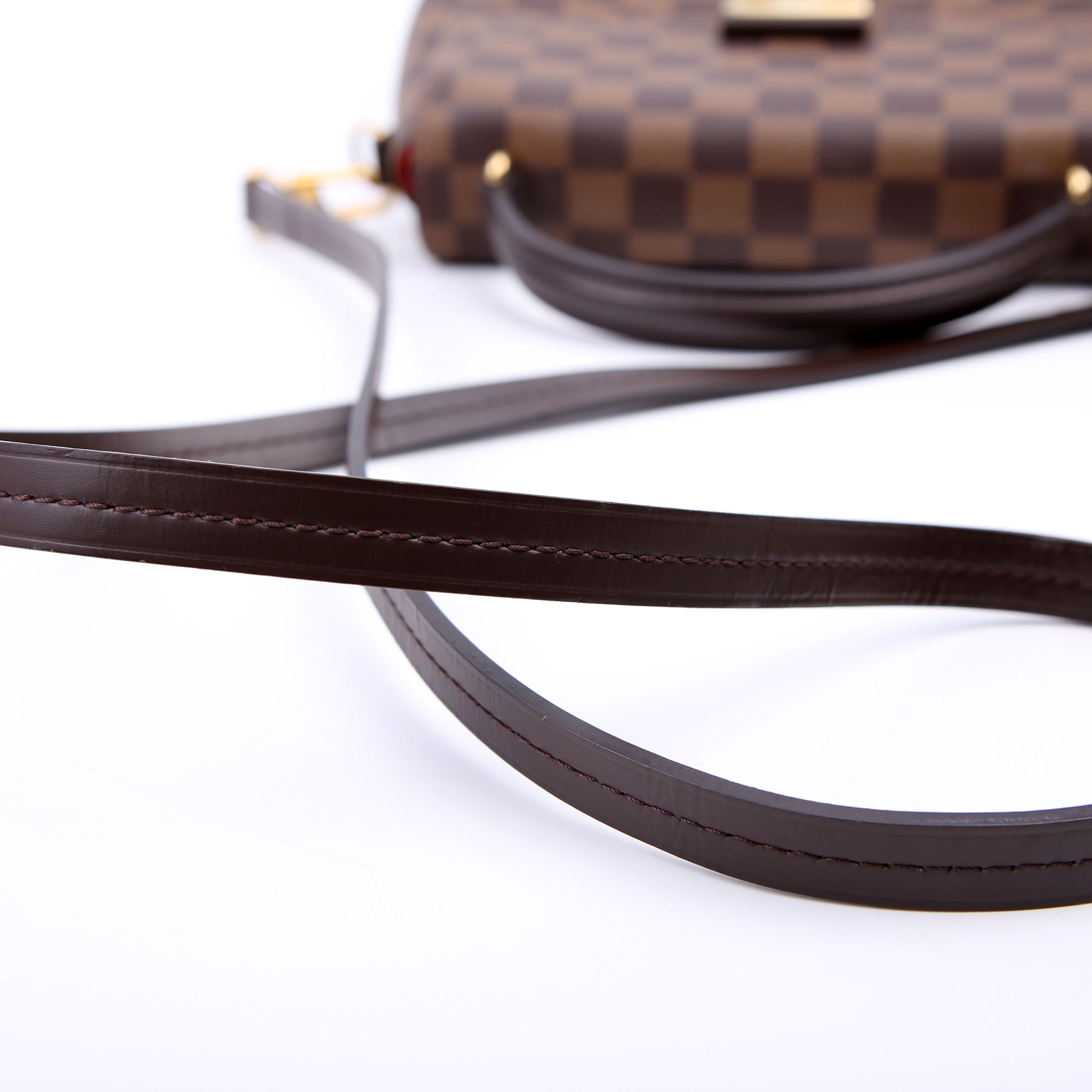 This pre-owned Louis Vuitton Croisette is guaranteed 100% authentic. The exterior is in the classic Louis Vuitton Damier Ebene coated canvas.