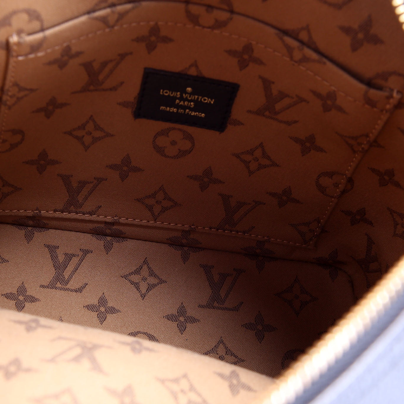 Interior: The interior features one open pocket; has light wear.