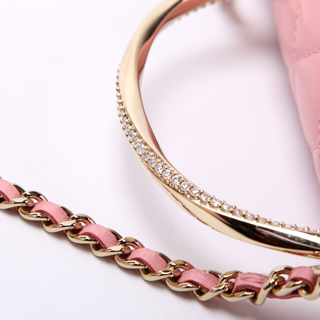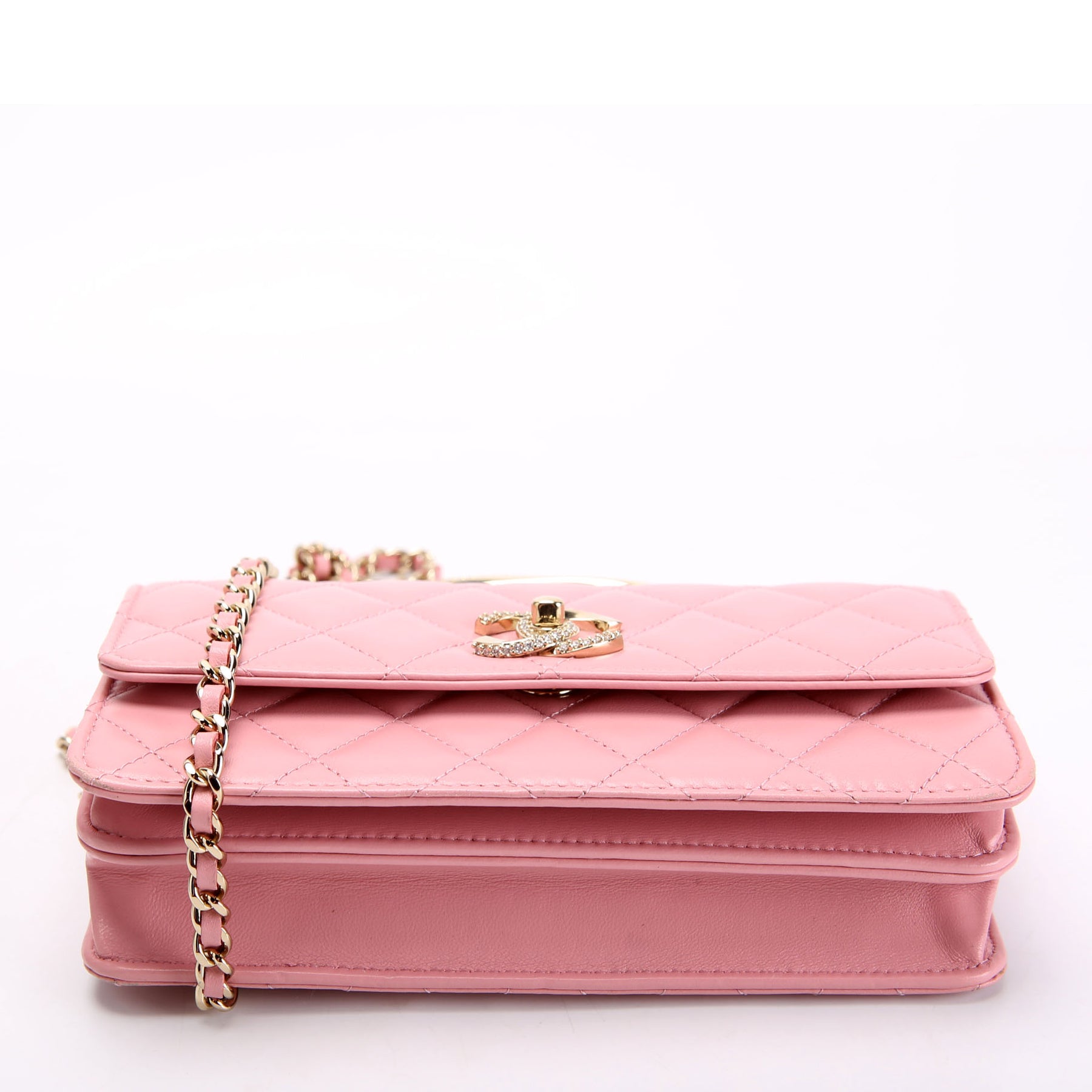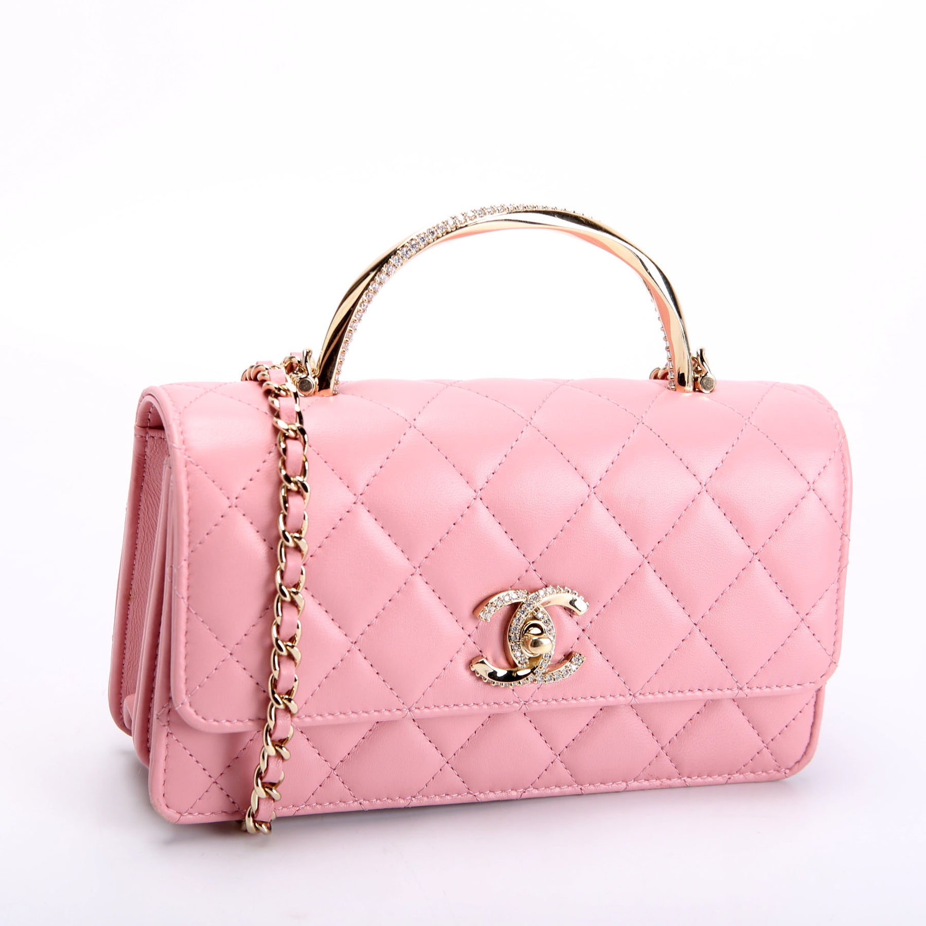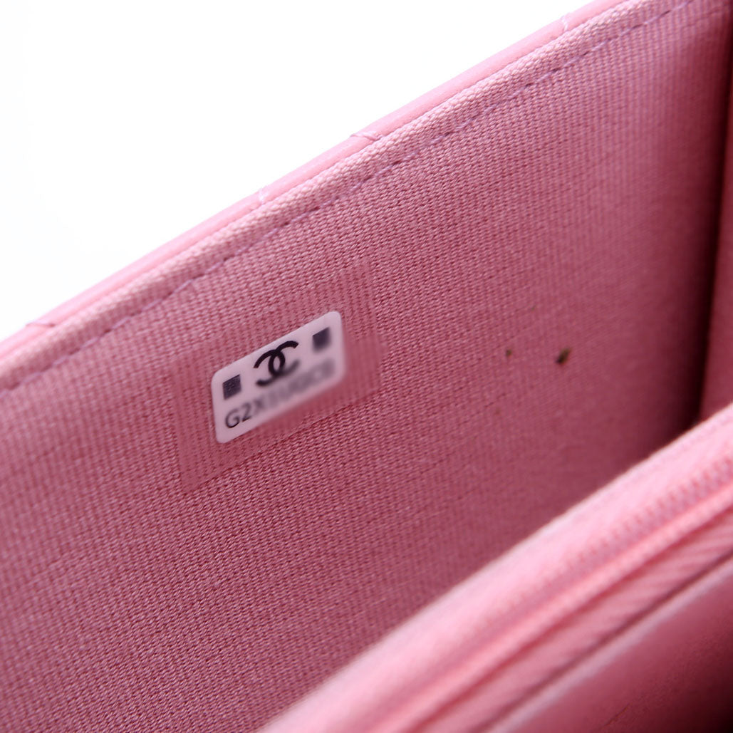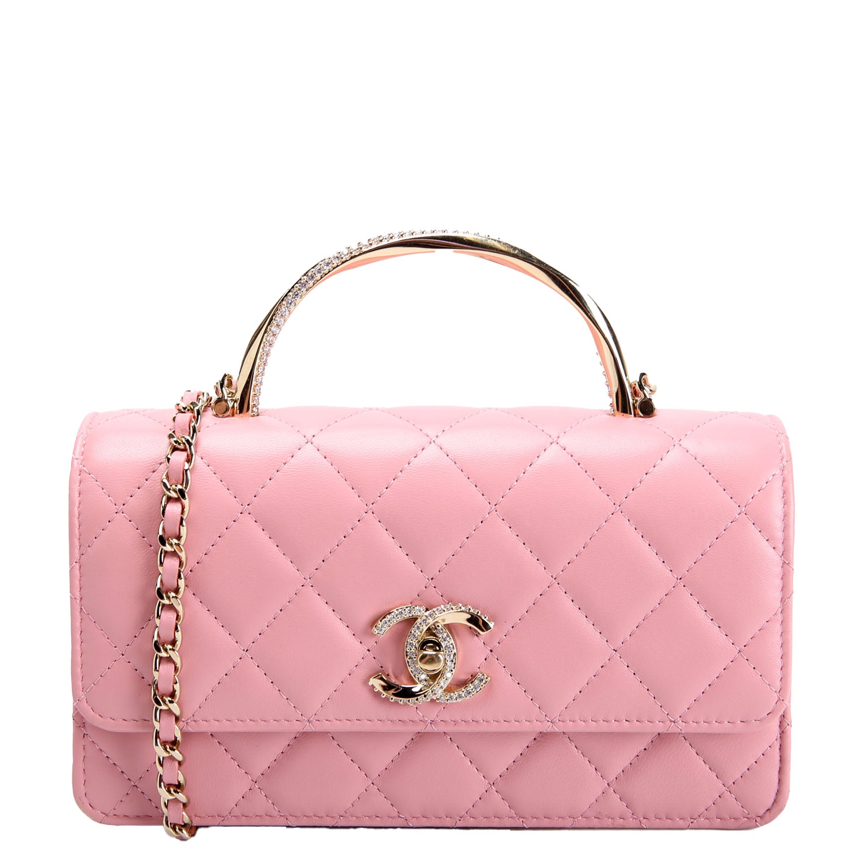 Crystal CC Top Handle Phone Holder Lambskin (RFID) Pink/Gold