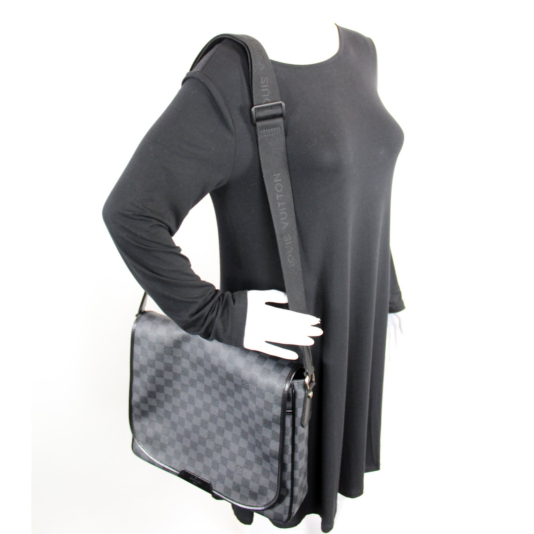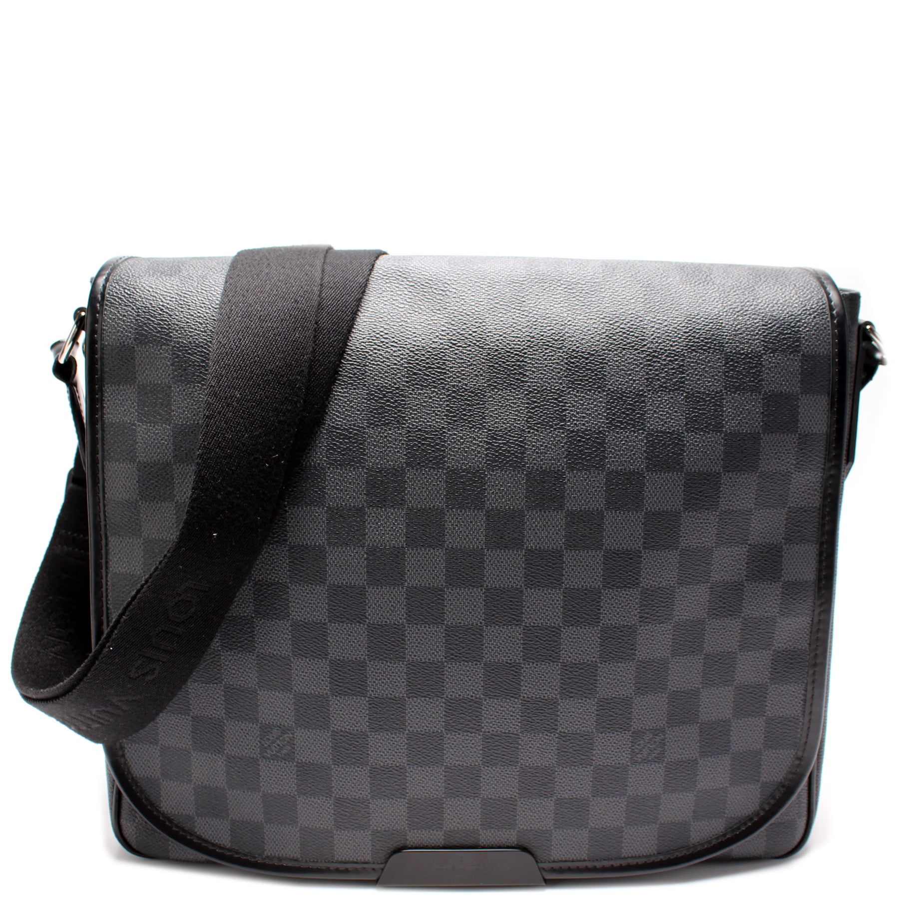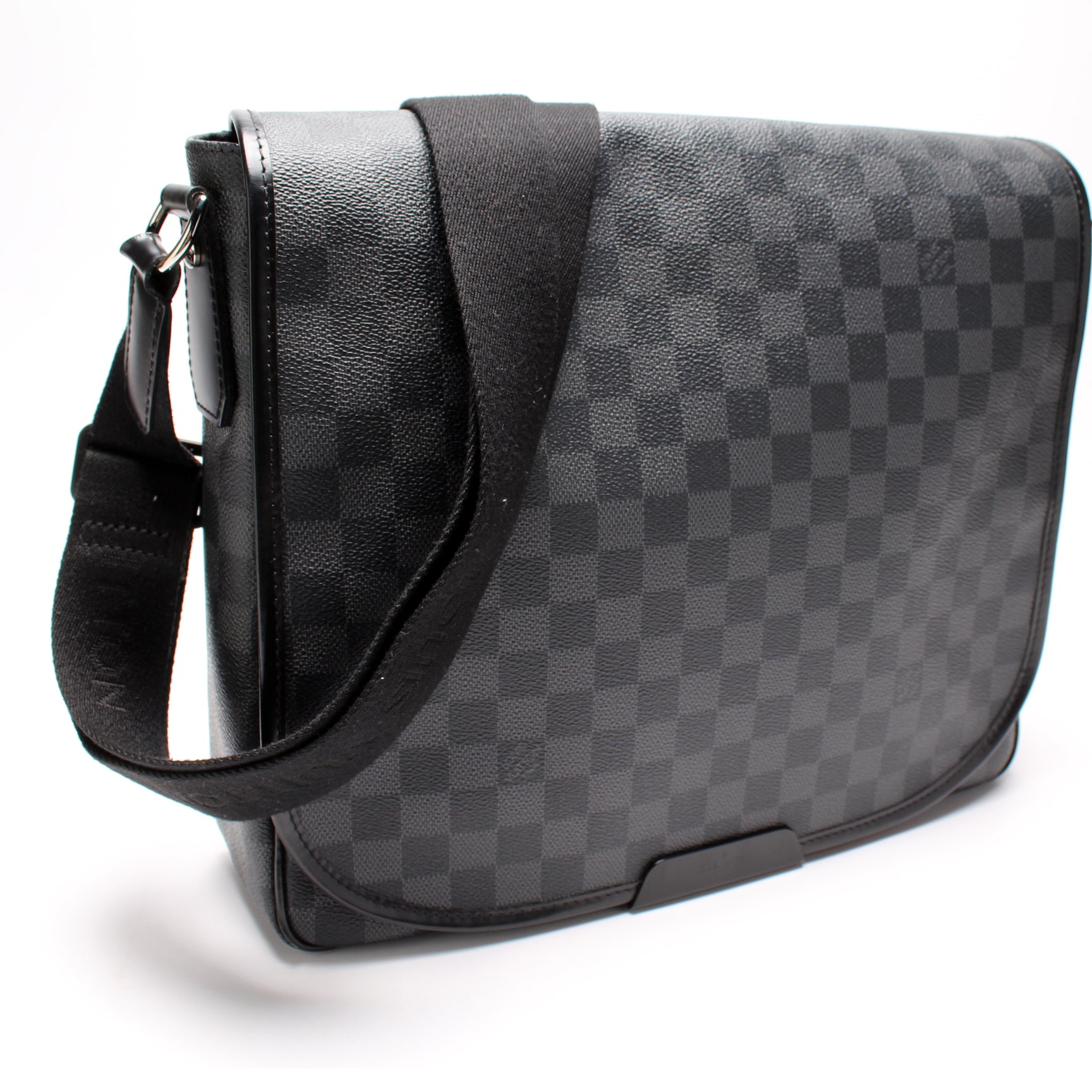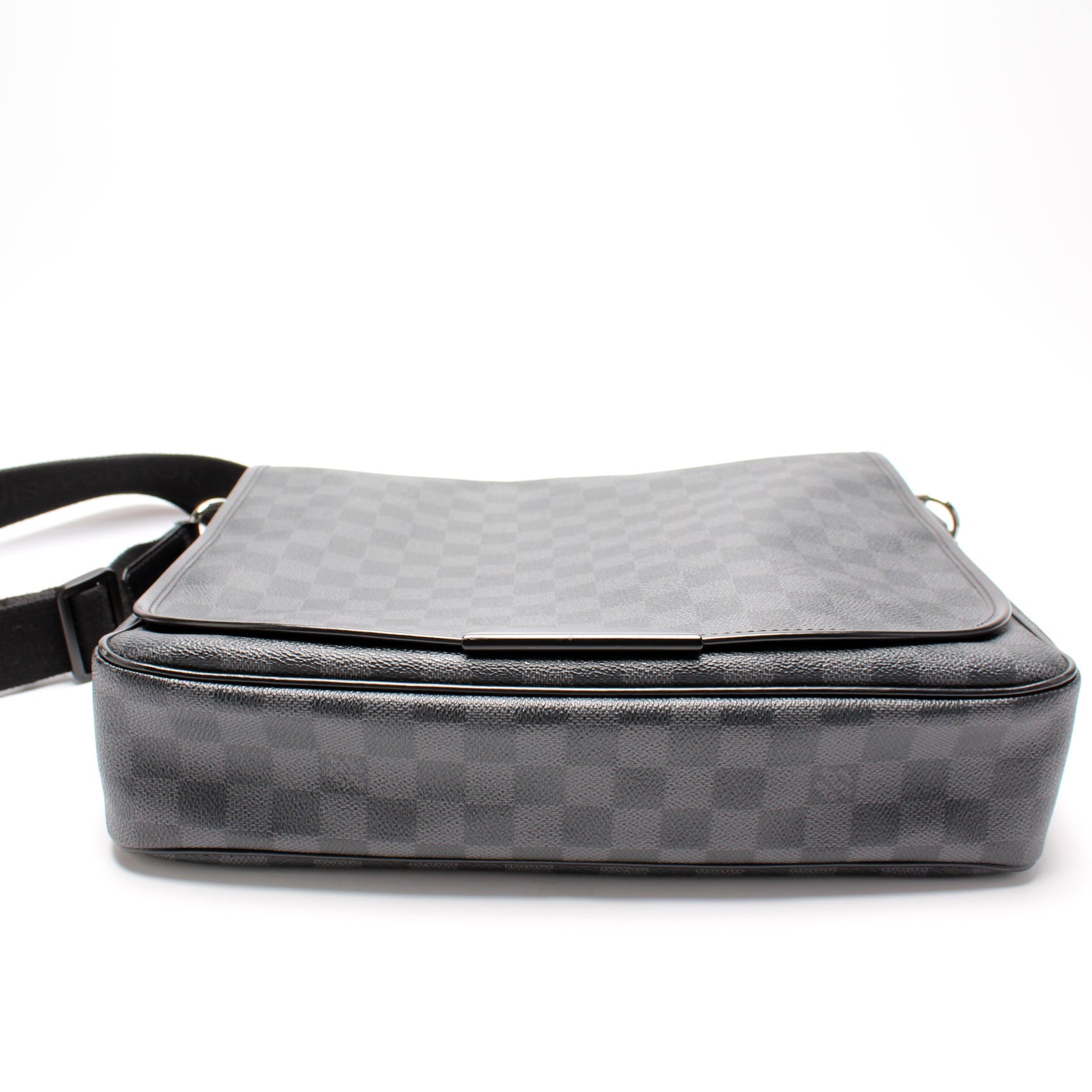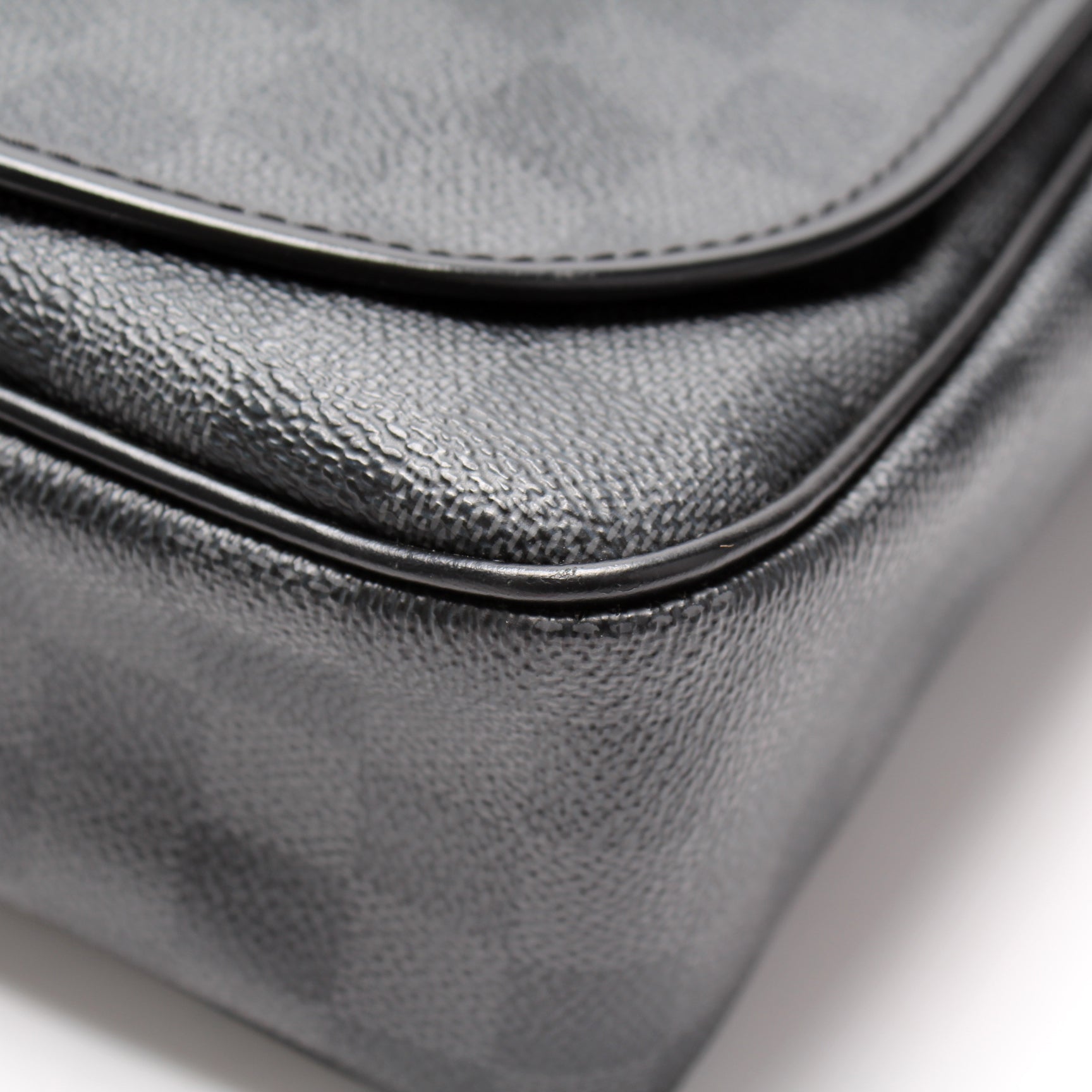 This pre-owned Louis Vuitton Daniel MM is guaranteed 100% authentic. The exterior is in the classic Louis Vuitton Damier Graphite coated canvas.