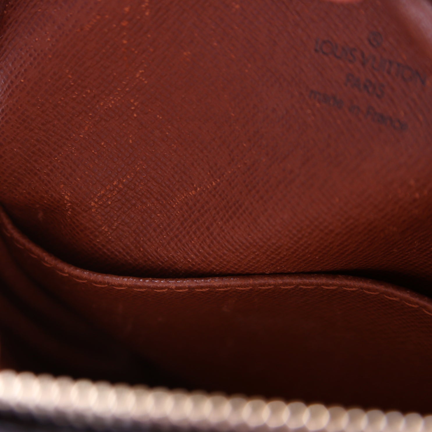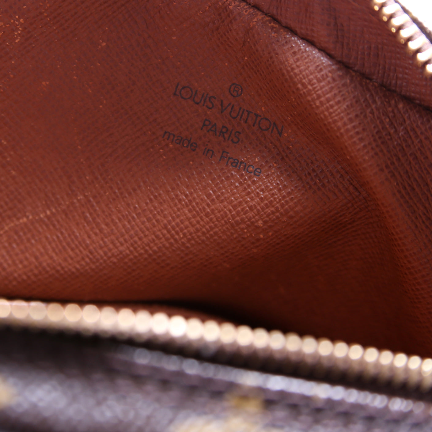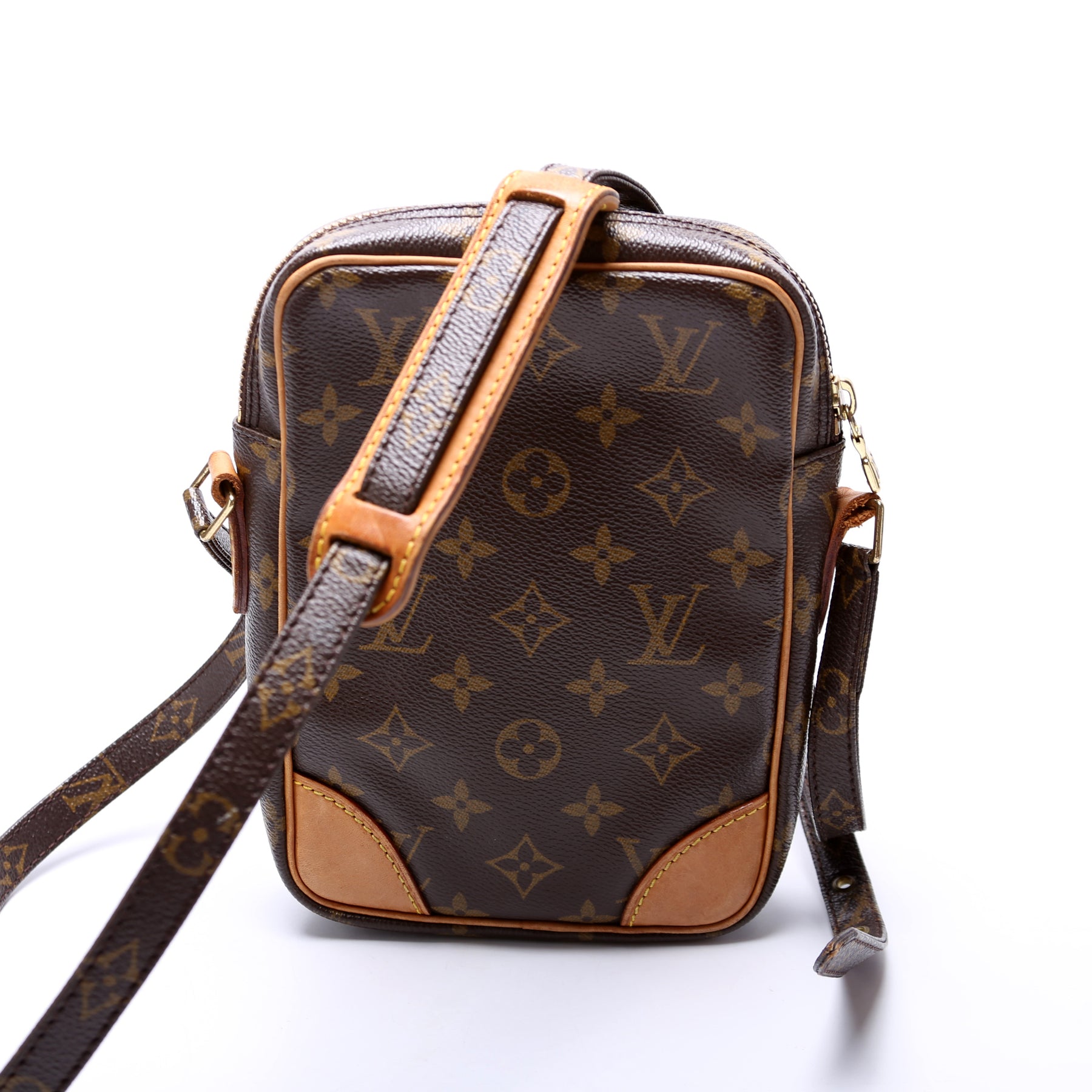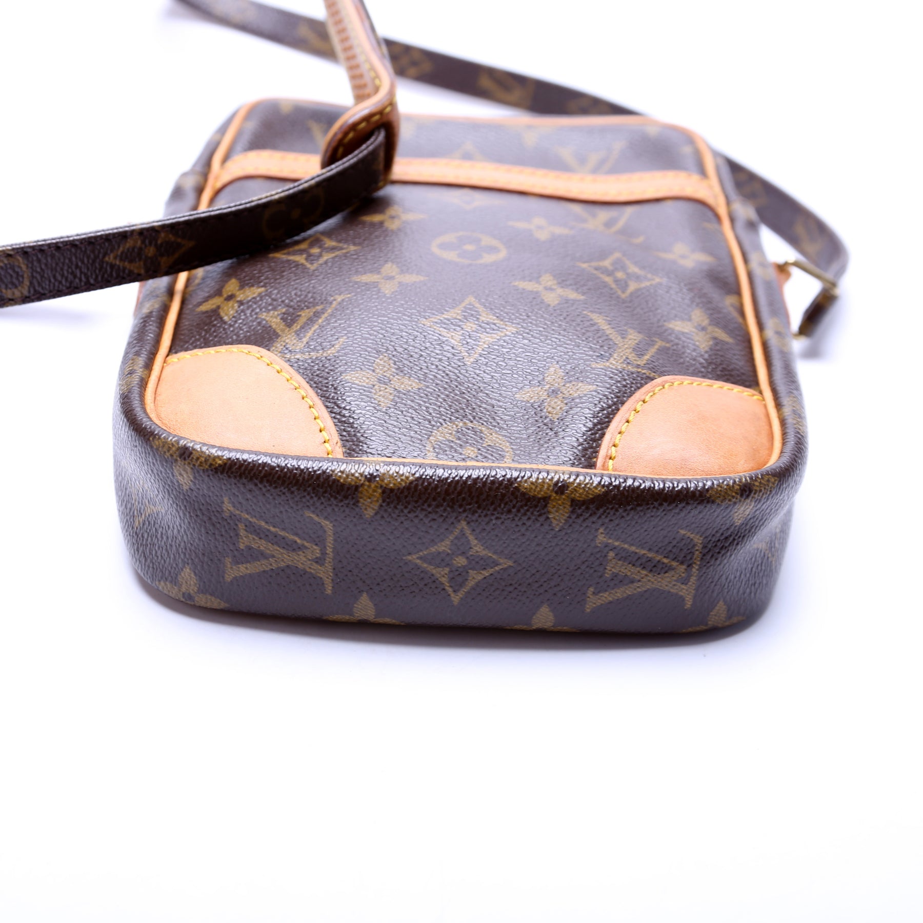 This pre-owned Louis Vuitton Danube is guaranteed 100% authentic. The exterior is in the classic Louis Vuitton Monogram coated canvas.