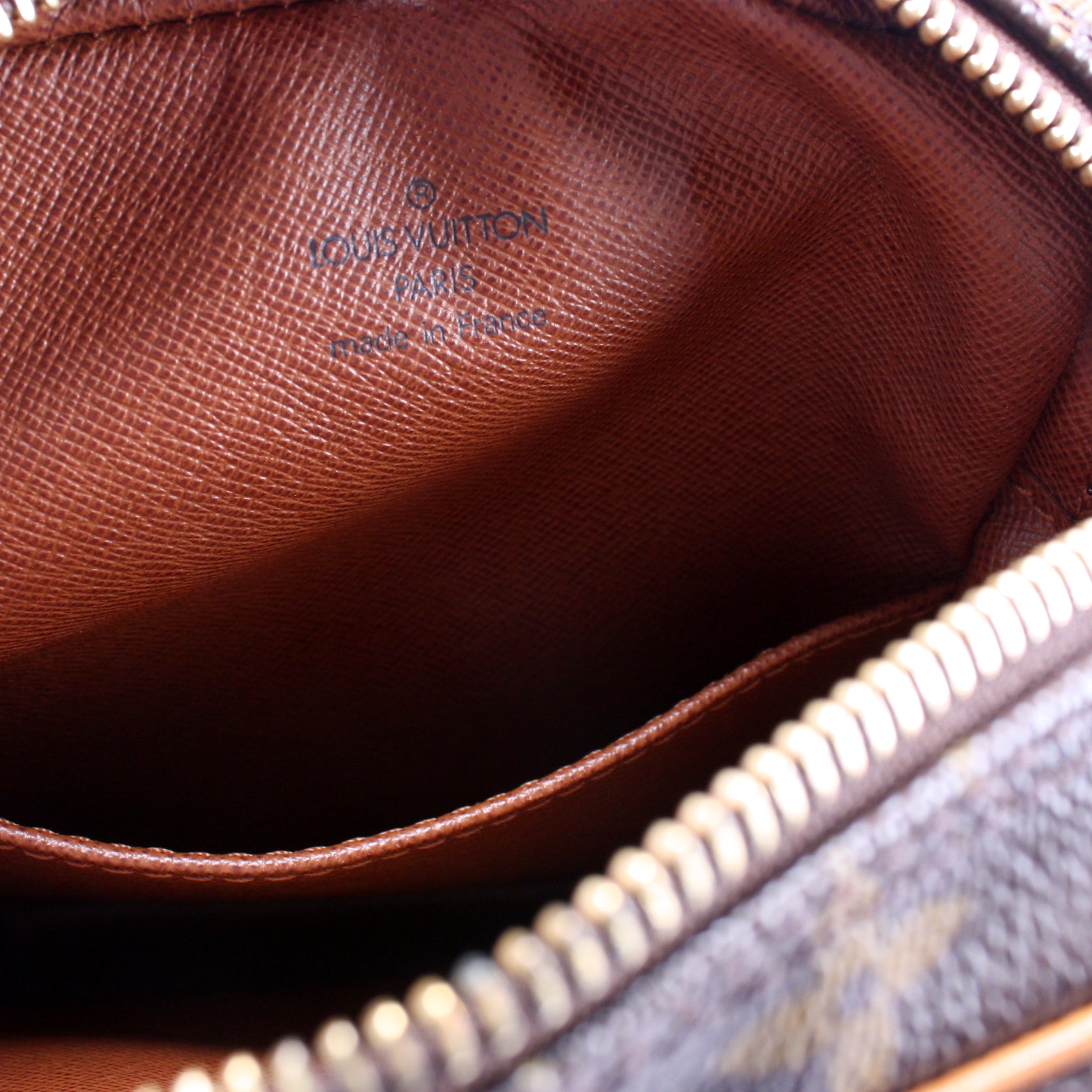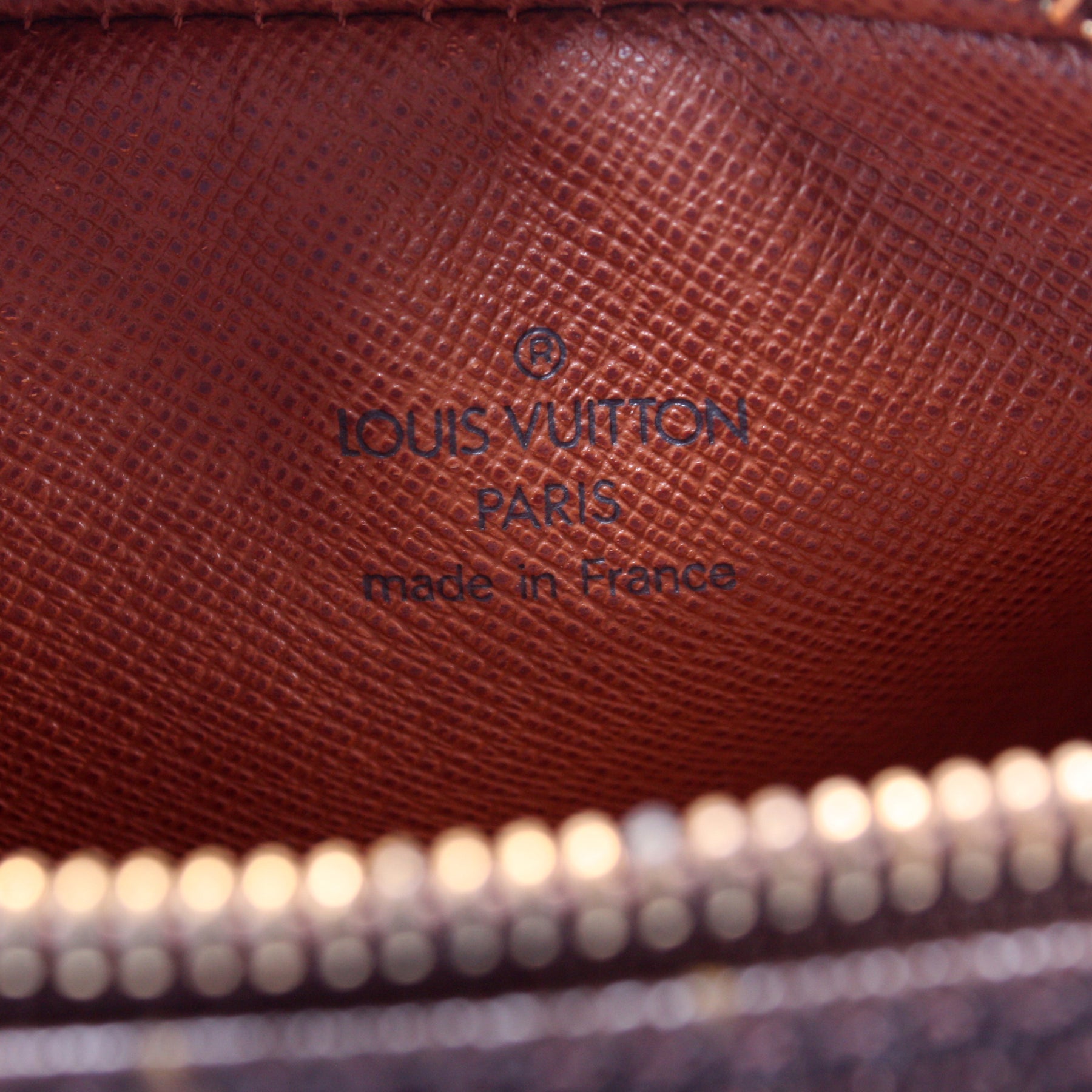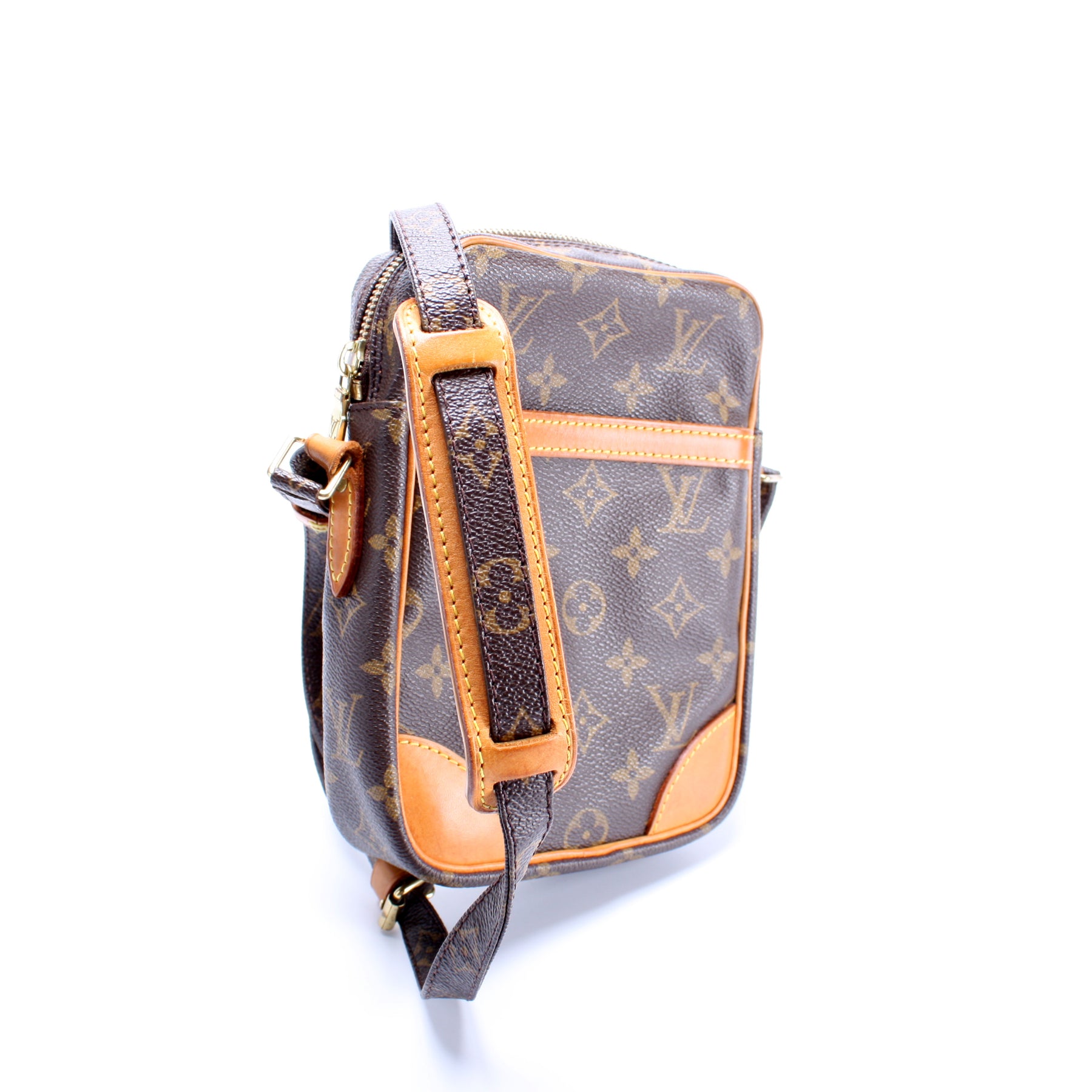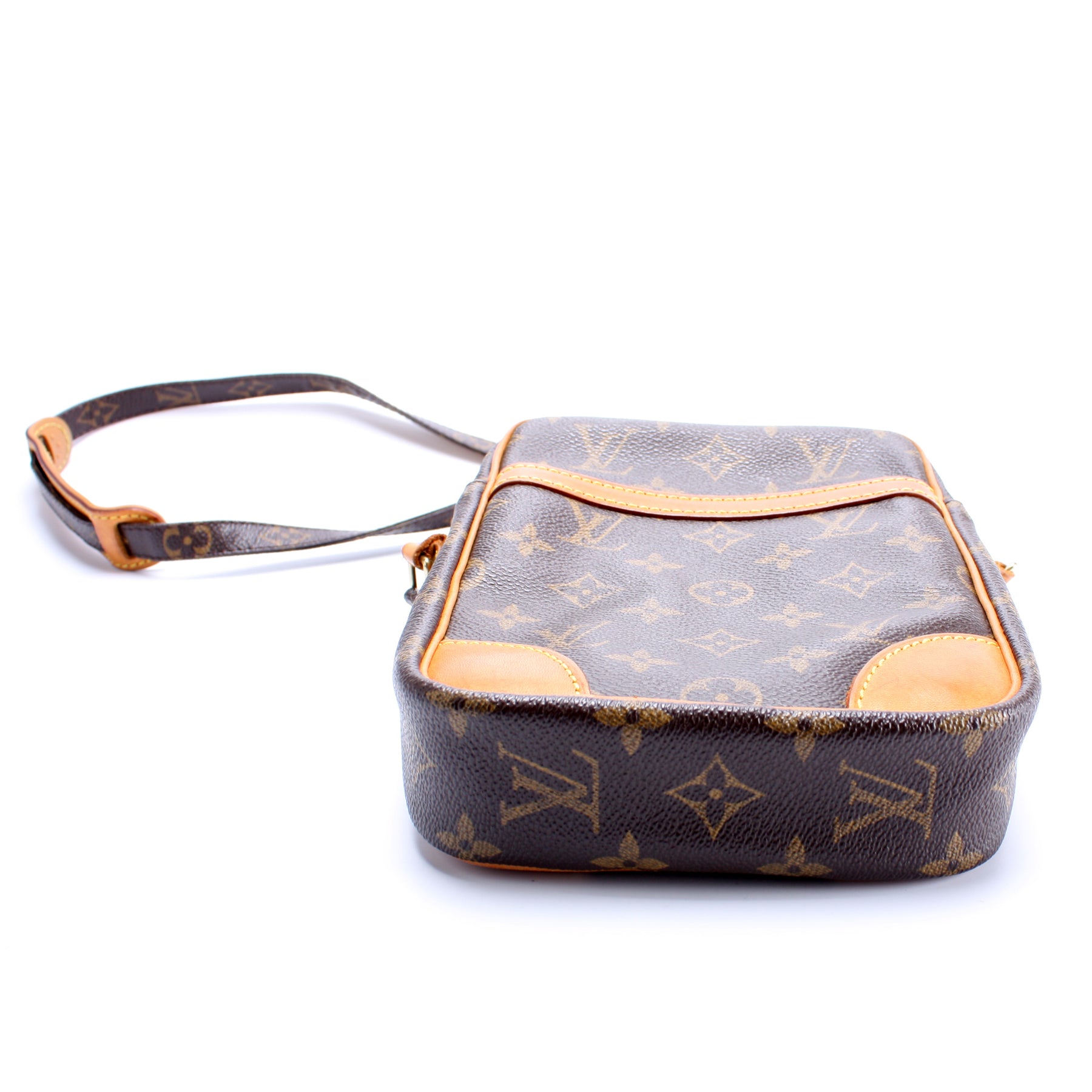 This pre-owned Louis Vuitton Danube is guaranteed 100% authentic. The exterior is in the classic monogram coated canvas.