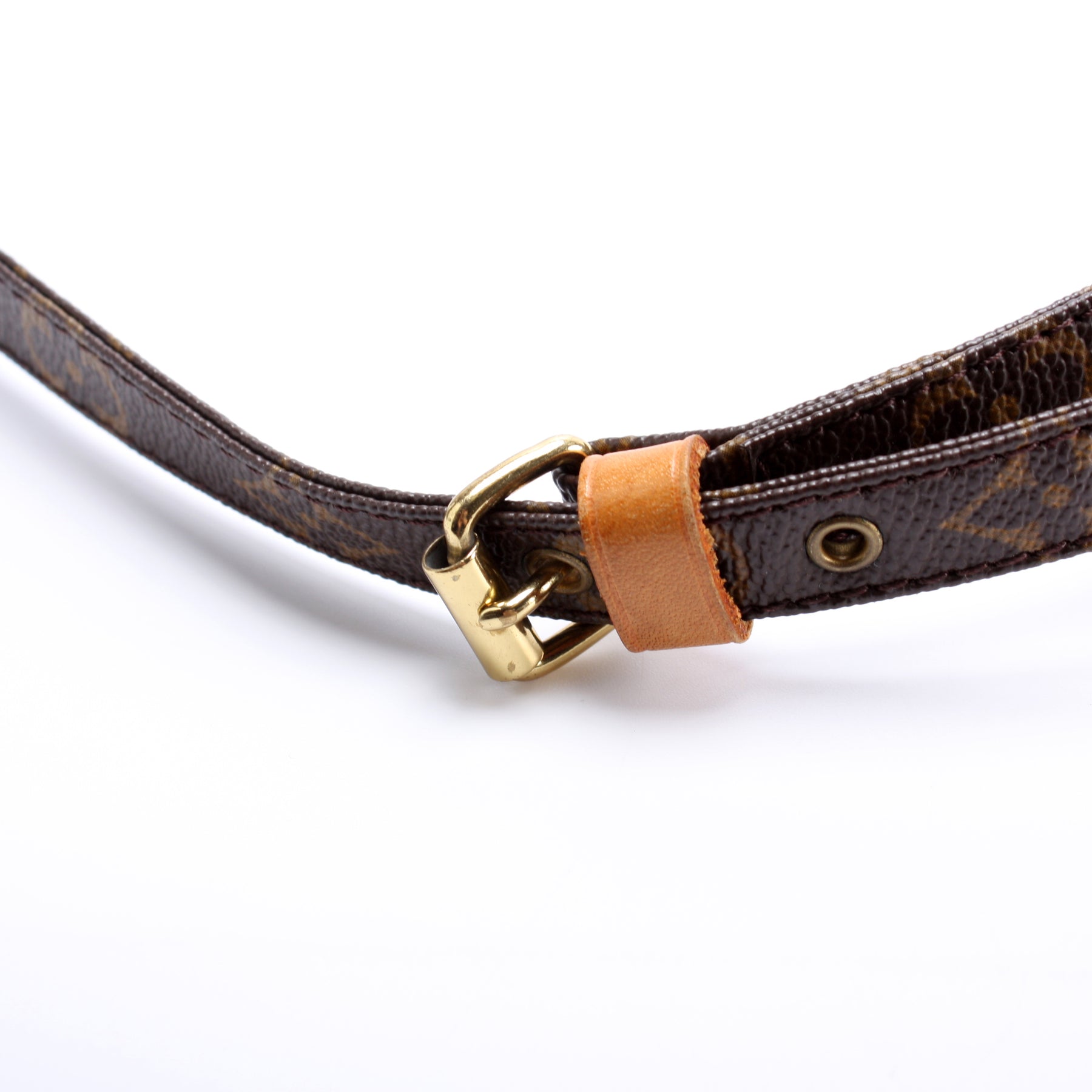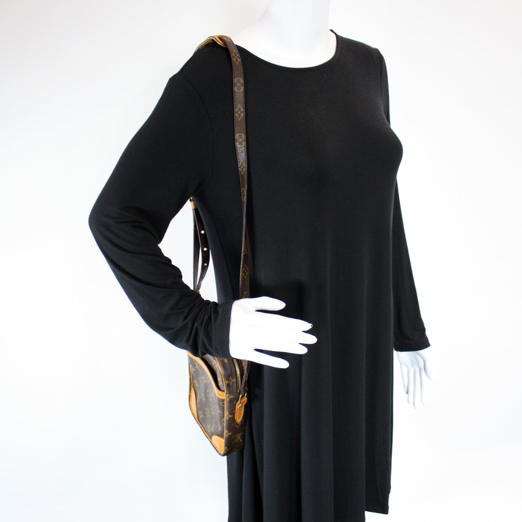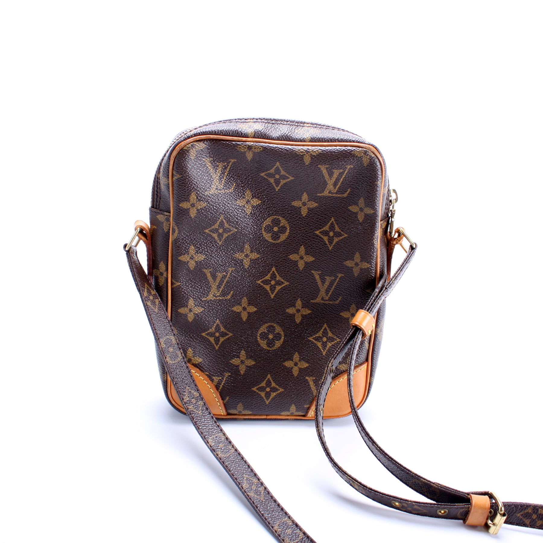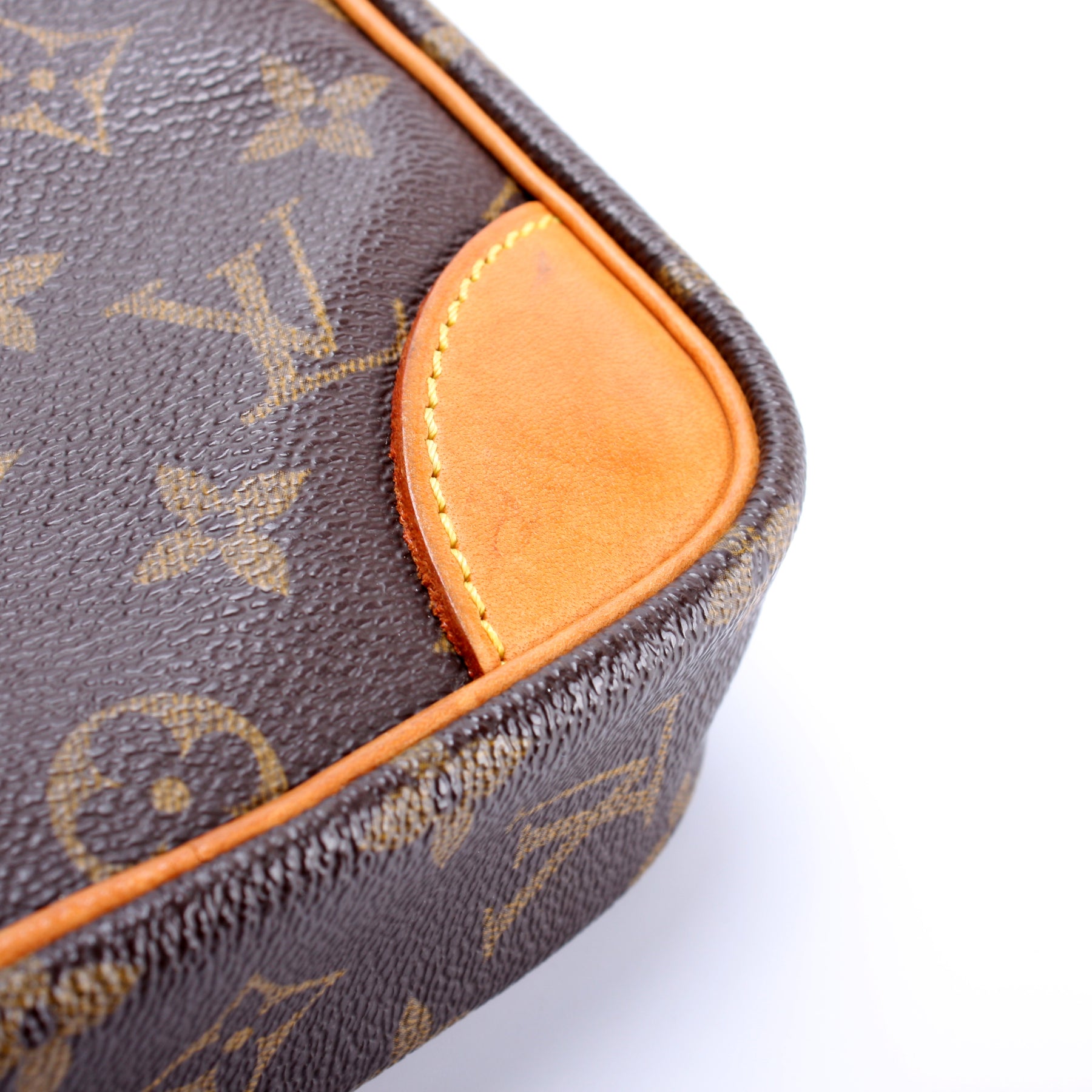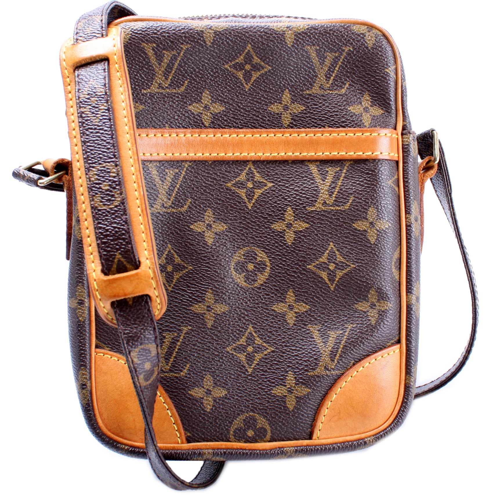 This pre-owned Louis Vuitton Danube is guaranteed 100% authentic. The exterior is in the classic monogram coated canvas.