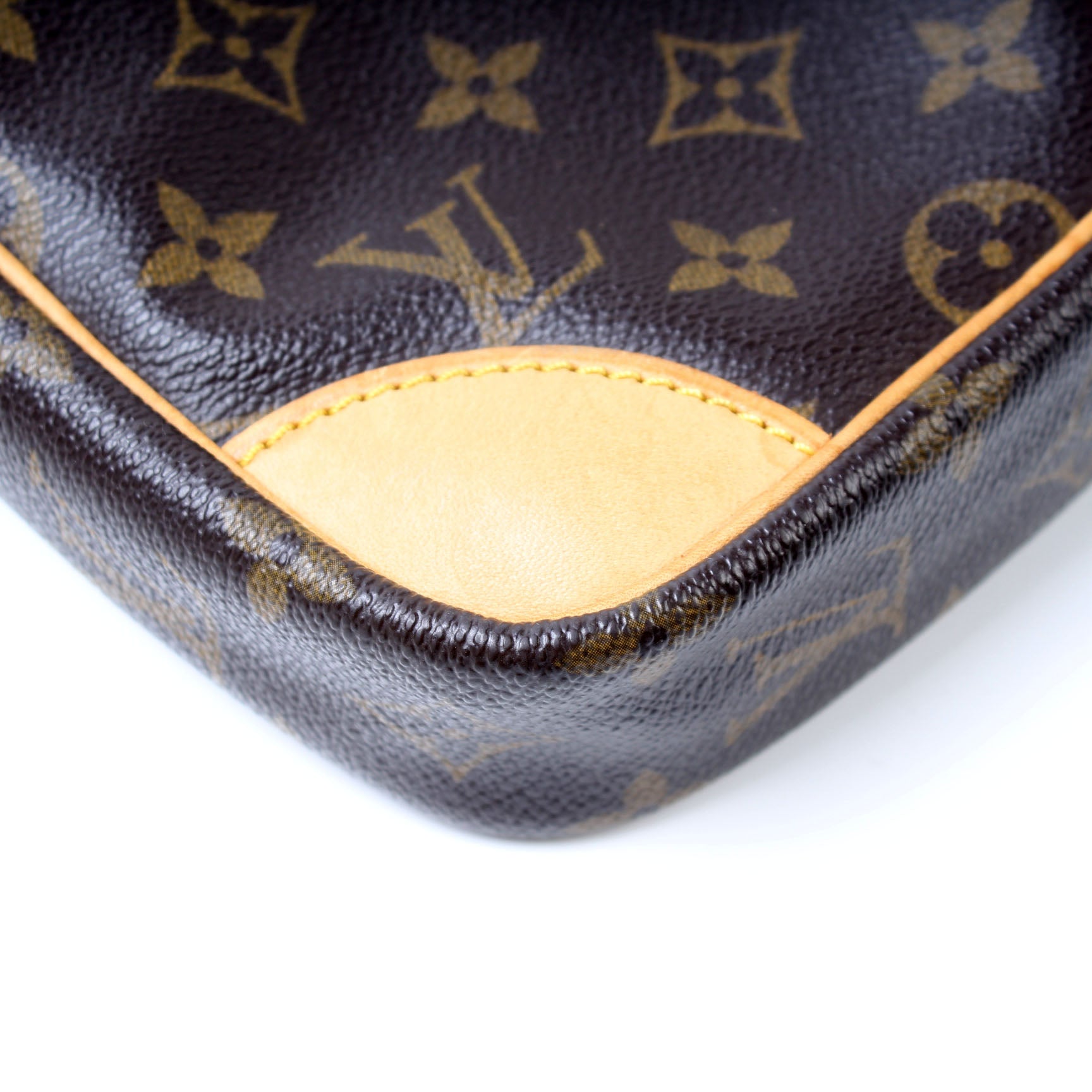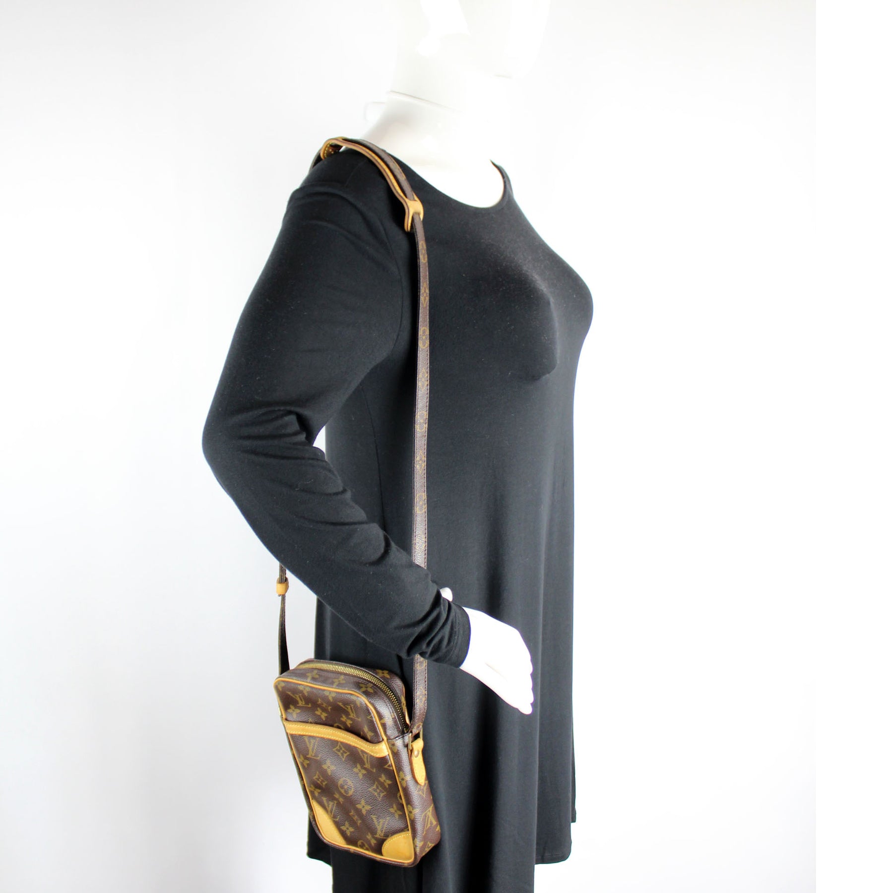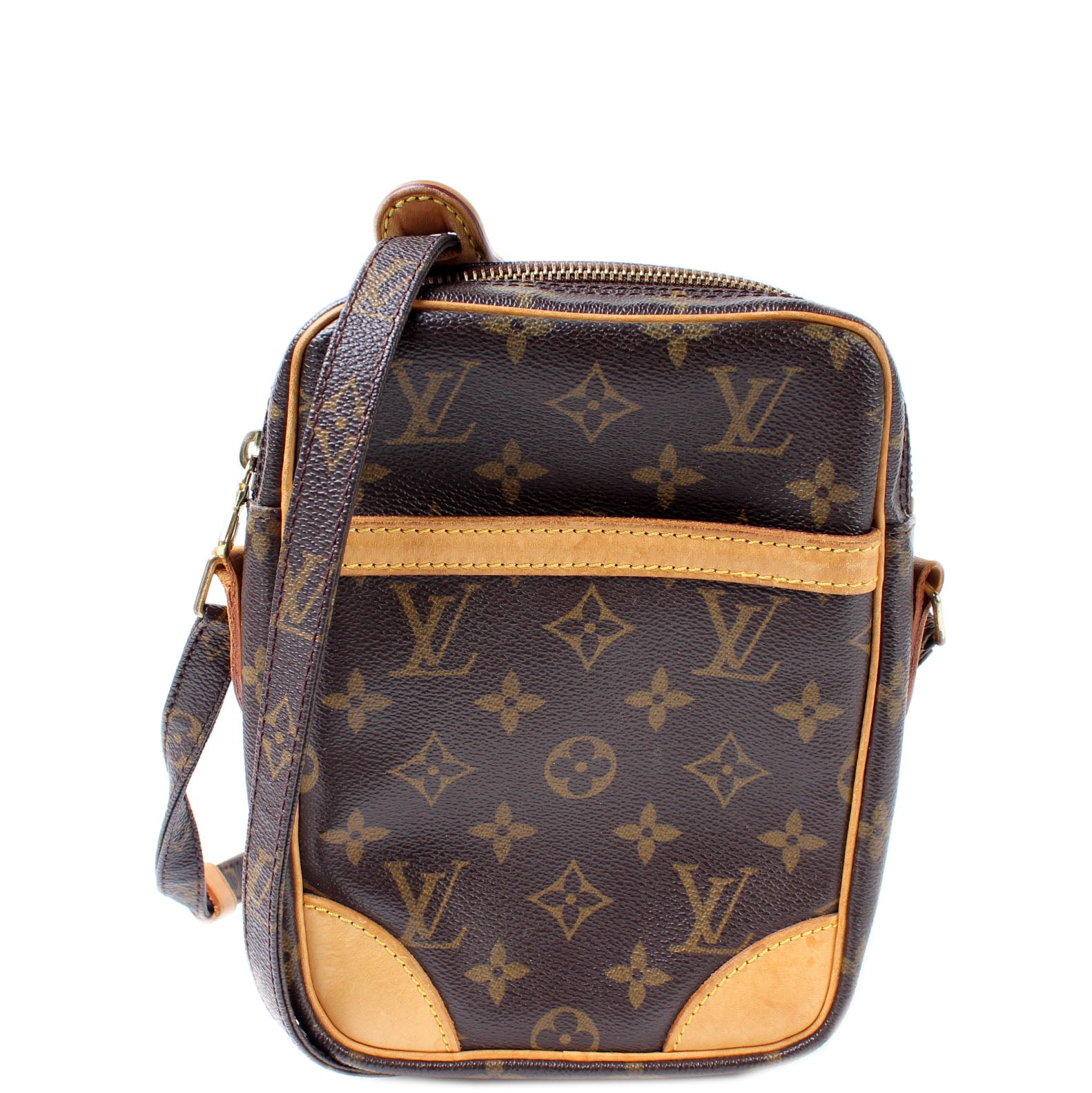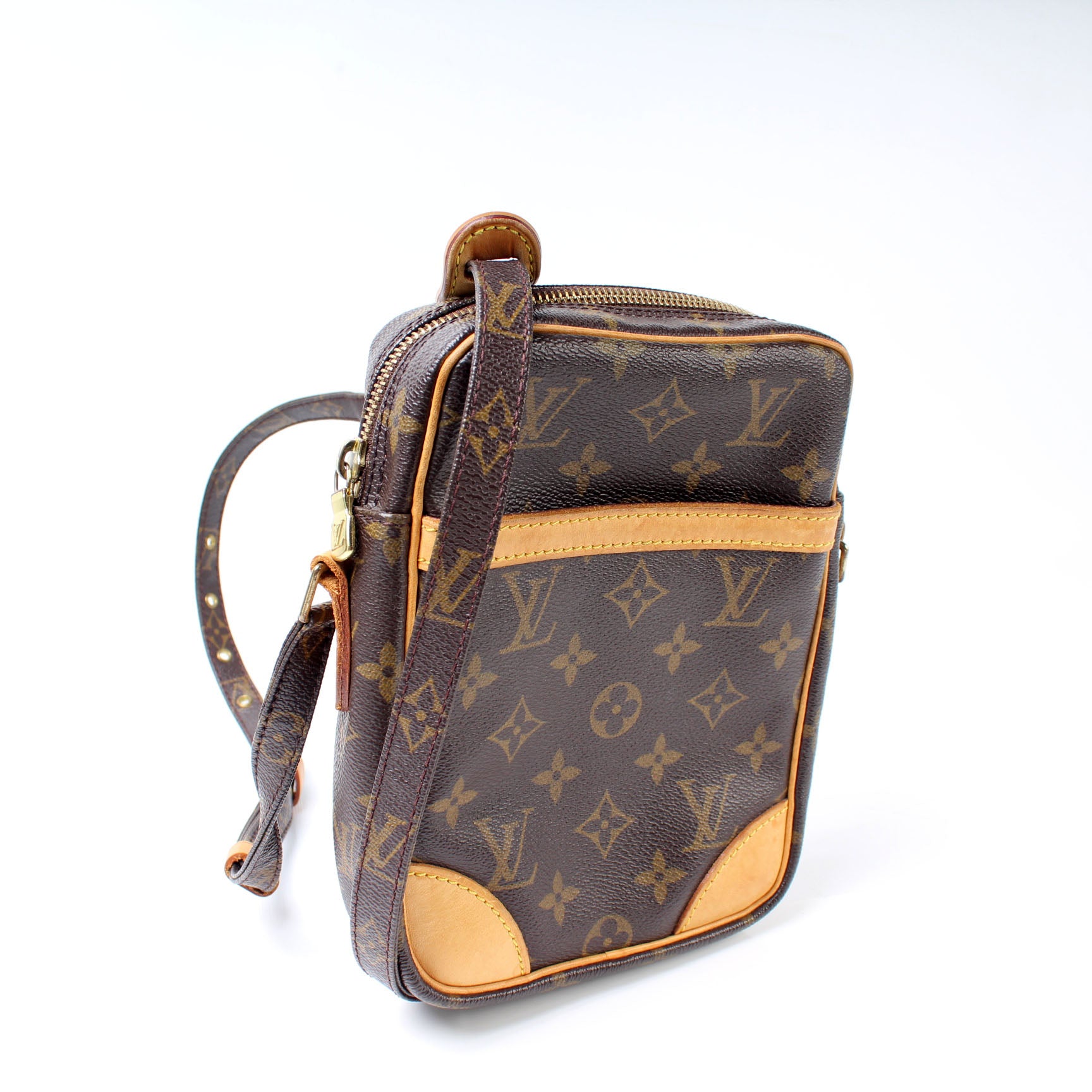 This pre-owned Louis Vuitton Danube is guaranteed 100% authentic. The exterior is in the classic Monogram coated canvas.