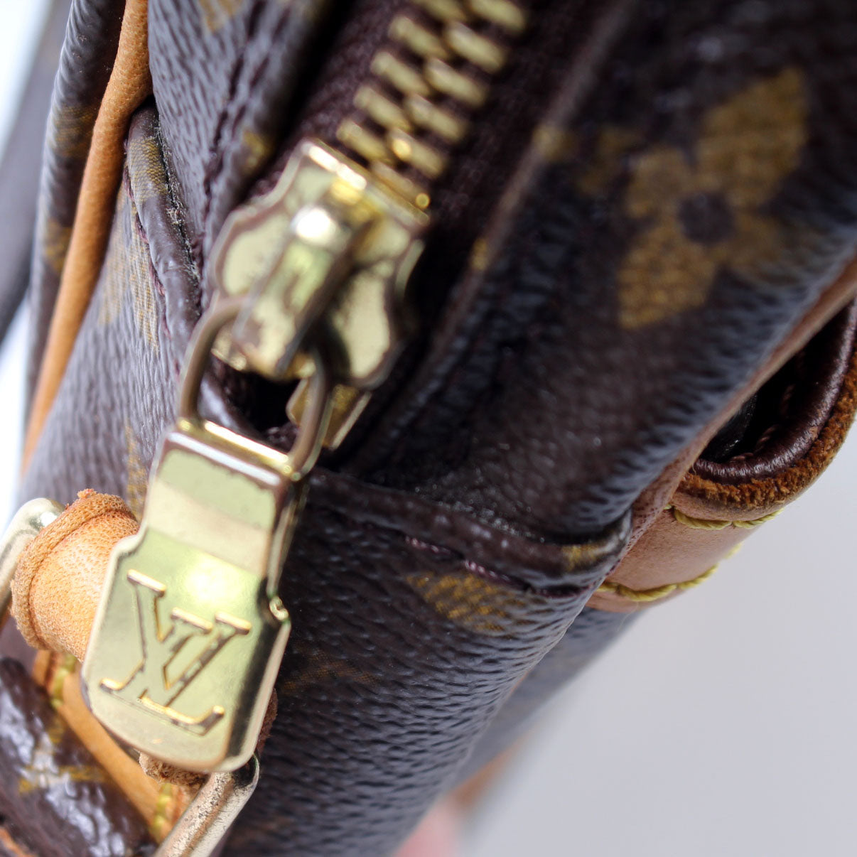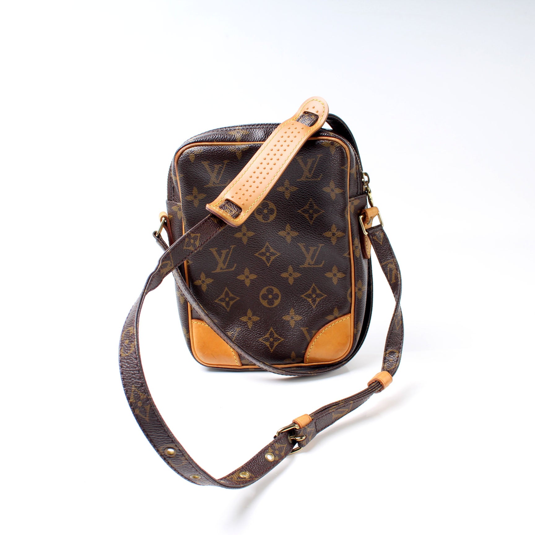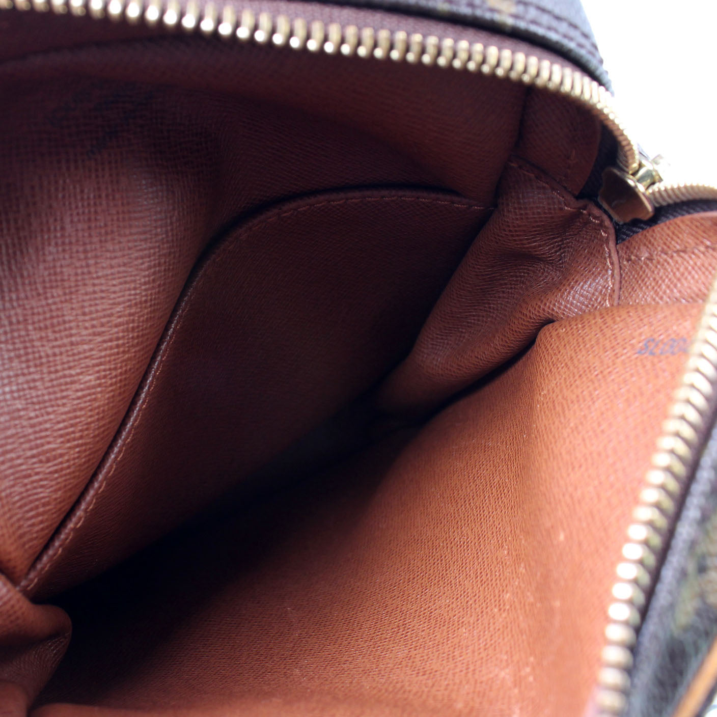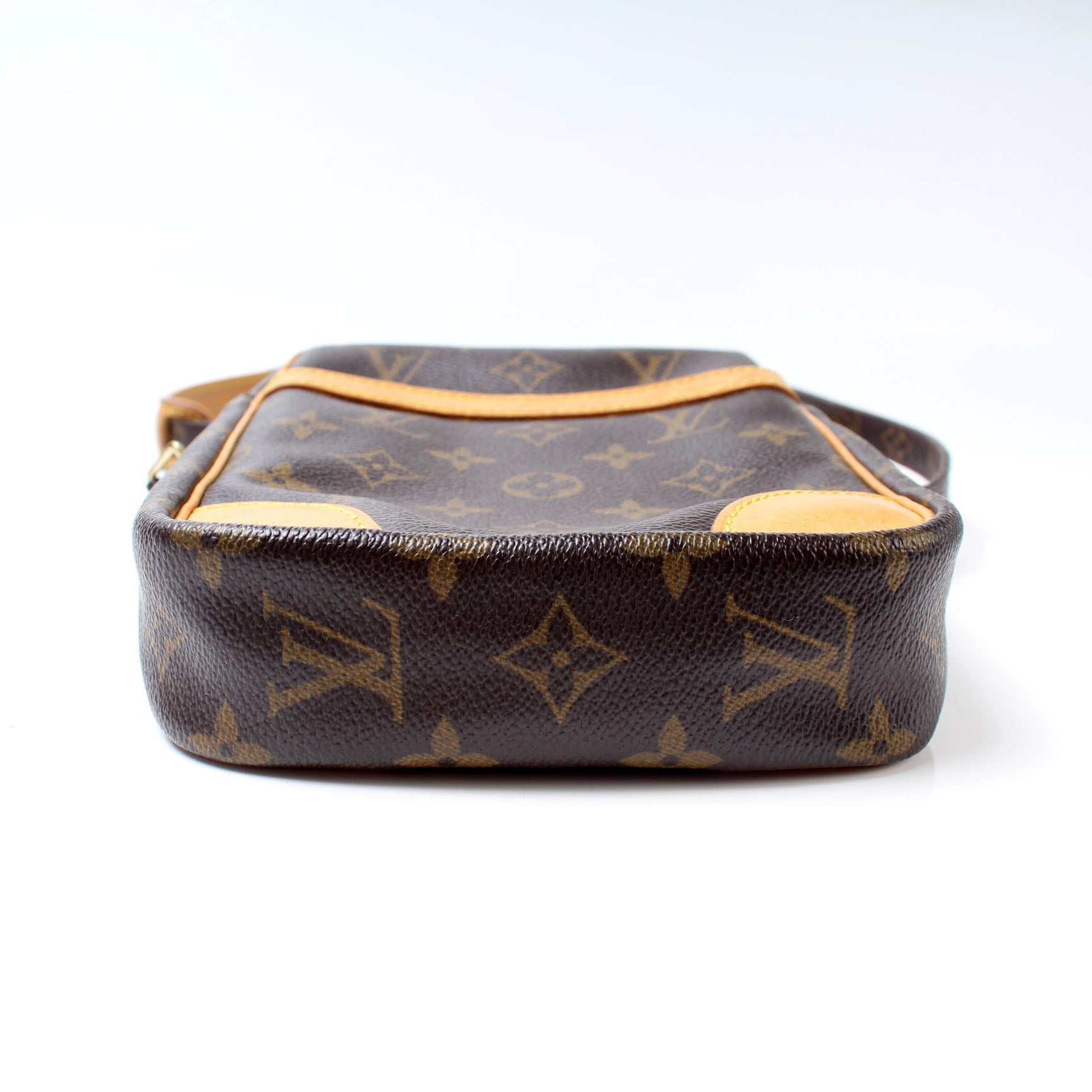 This pre-owned Louis Vuitton Danube is guaranteed 100% authentic. The exterior is in the classic Monogram coated canvas.