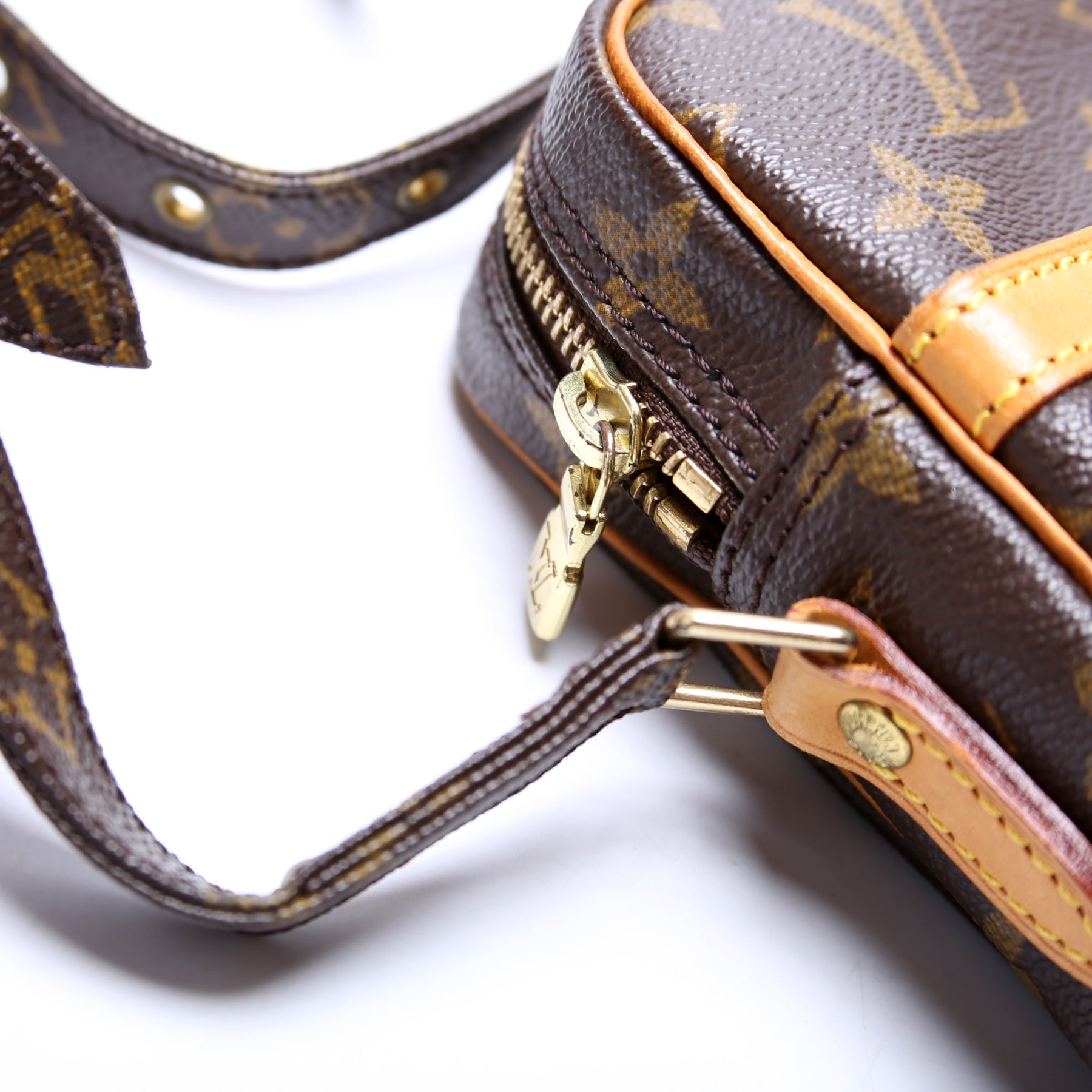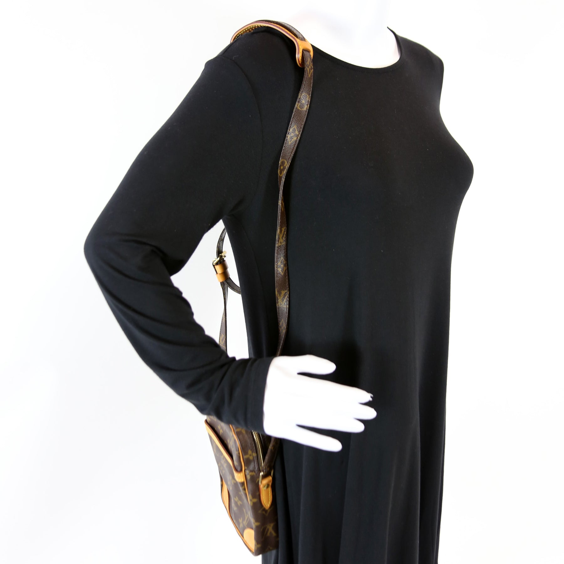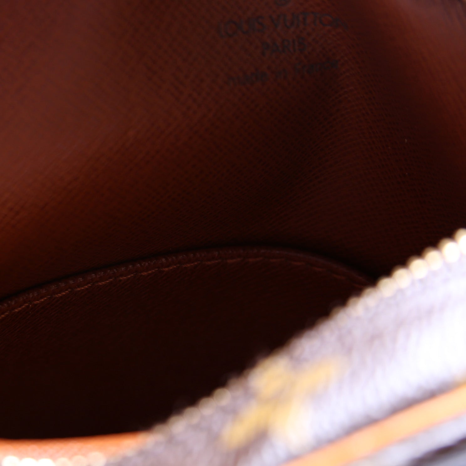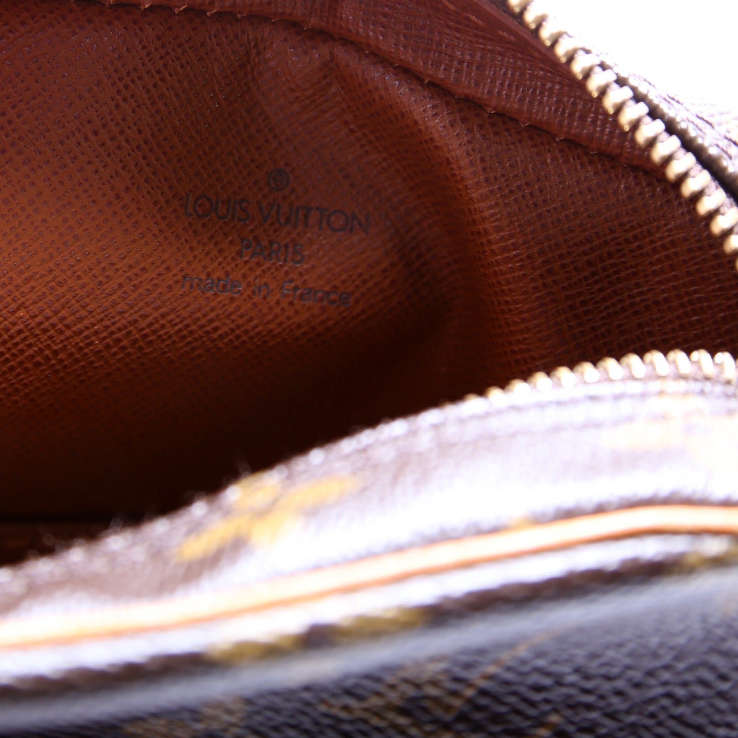 This pre-owned Louis Vuitton Danube is guaranteed 100% authentic. The exterior is in the classic Louis Vuitton Monogram coated canvas.