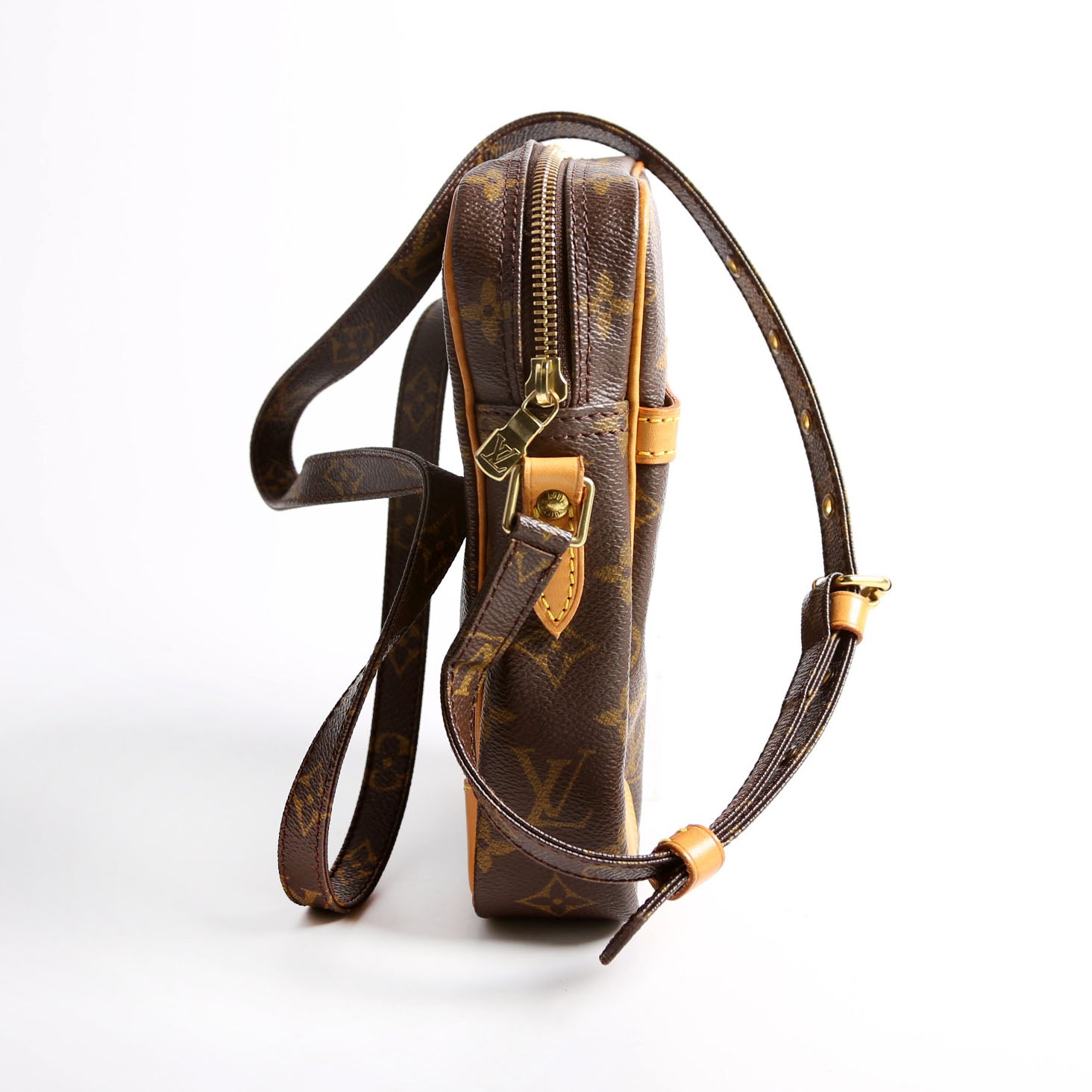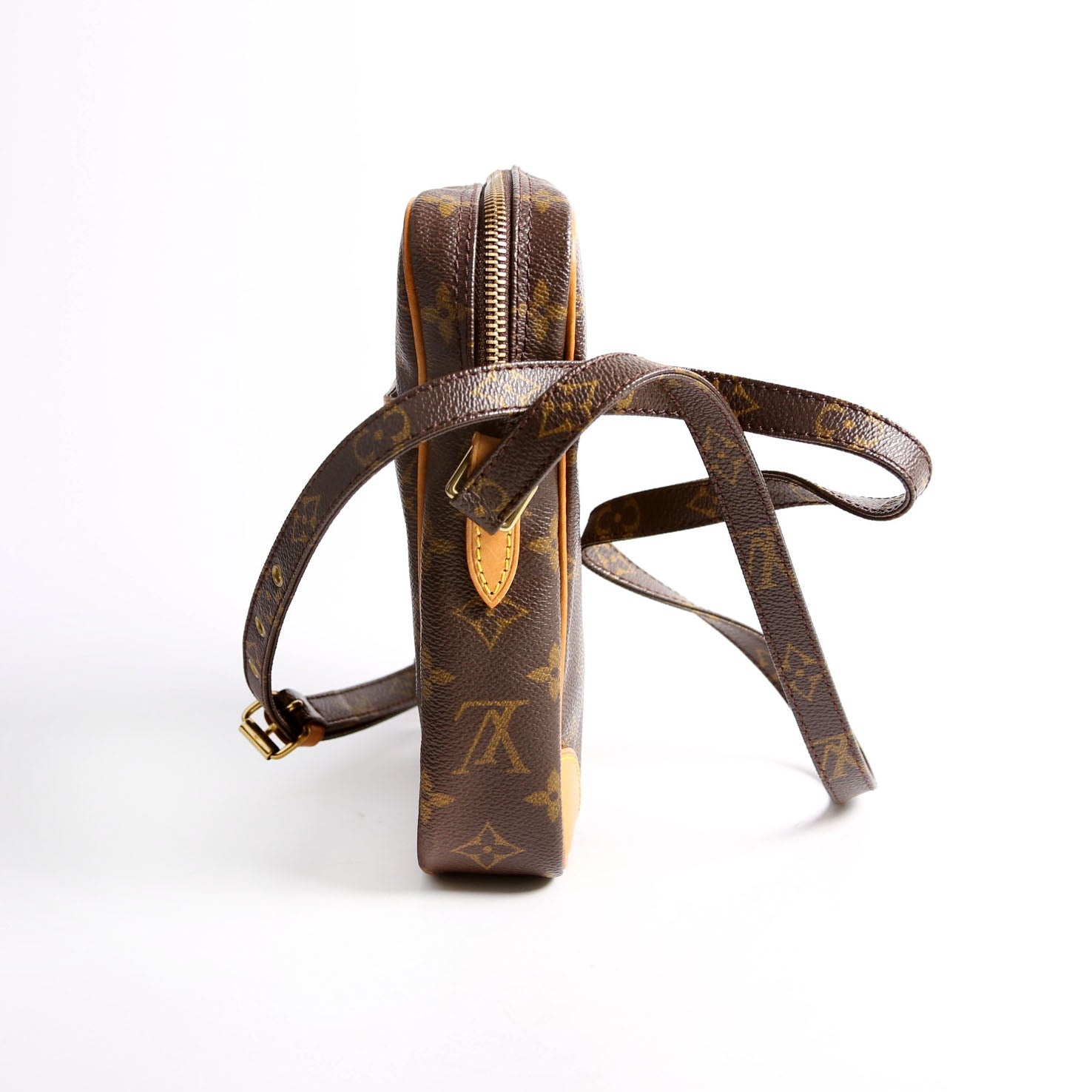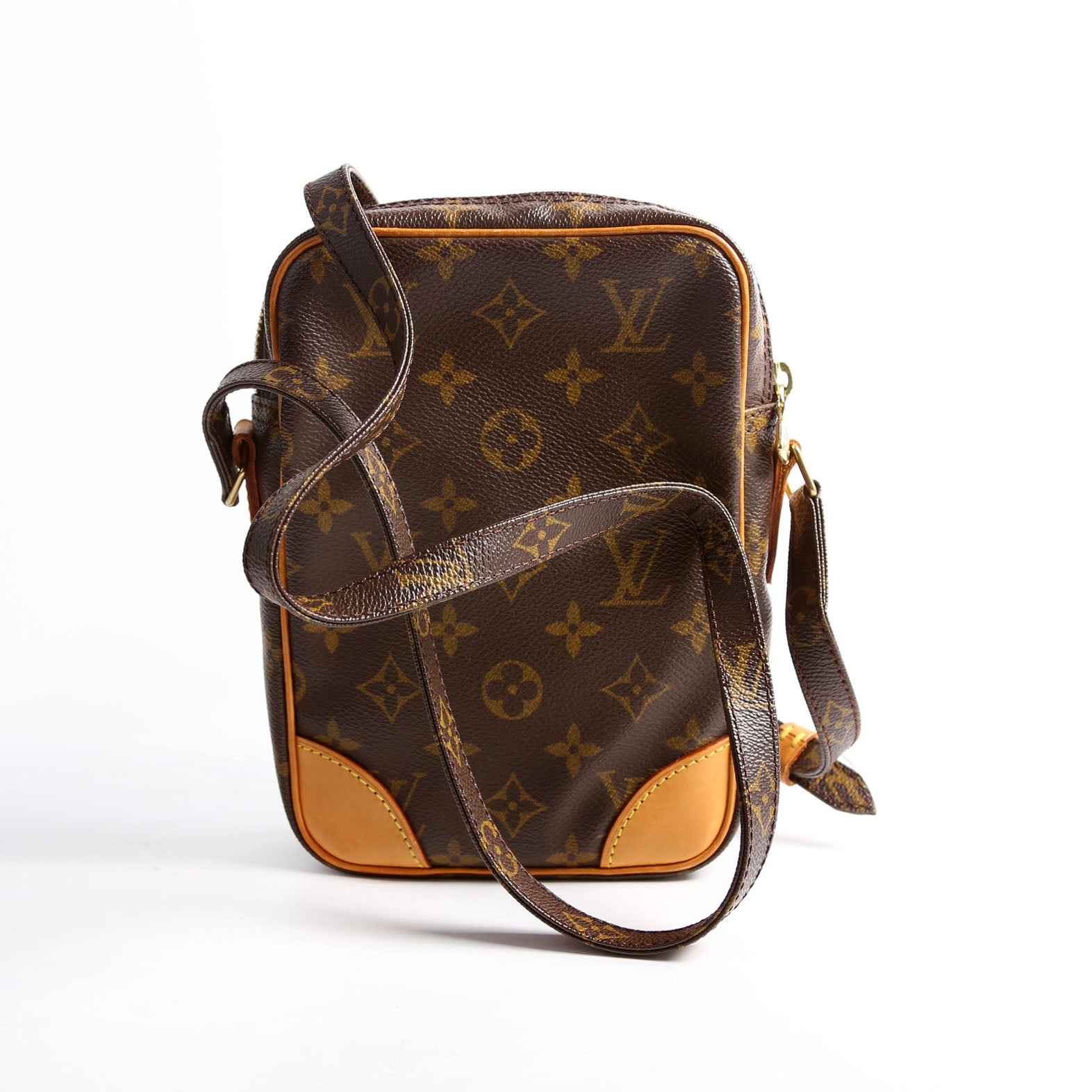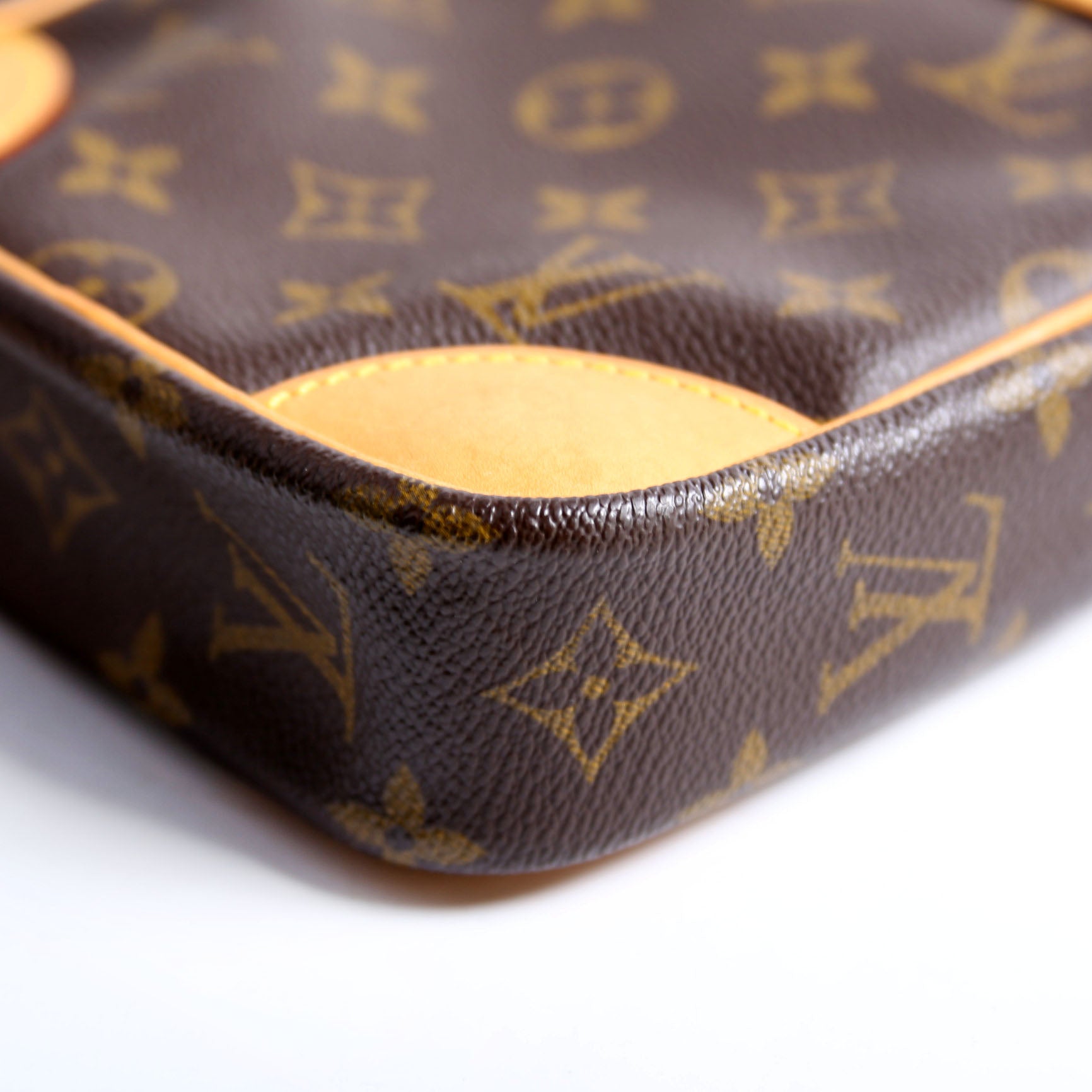 This pre-owned Louis Vuitton Danube is guaranteed 100% authentic. The exterior is in the classic Louis Vuitton Monogram Coated Canvas.