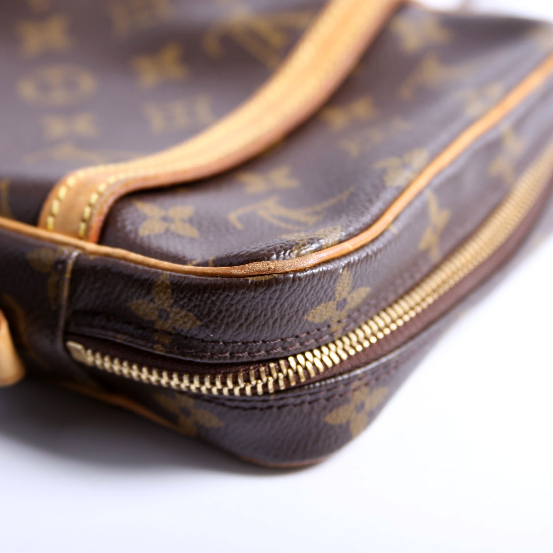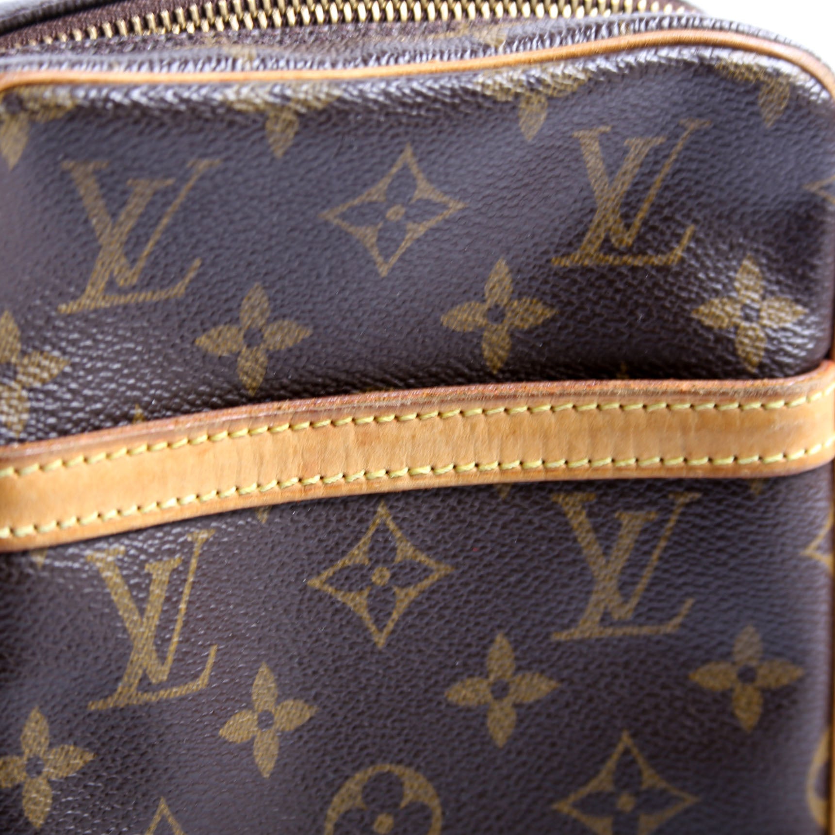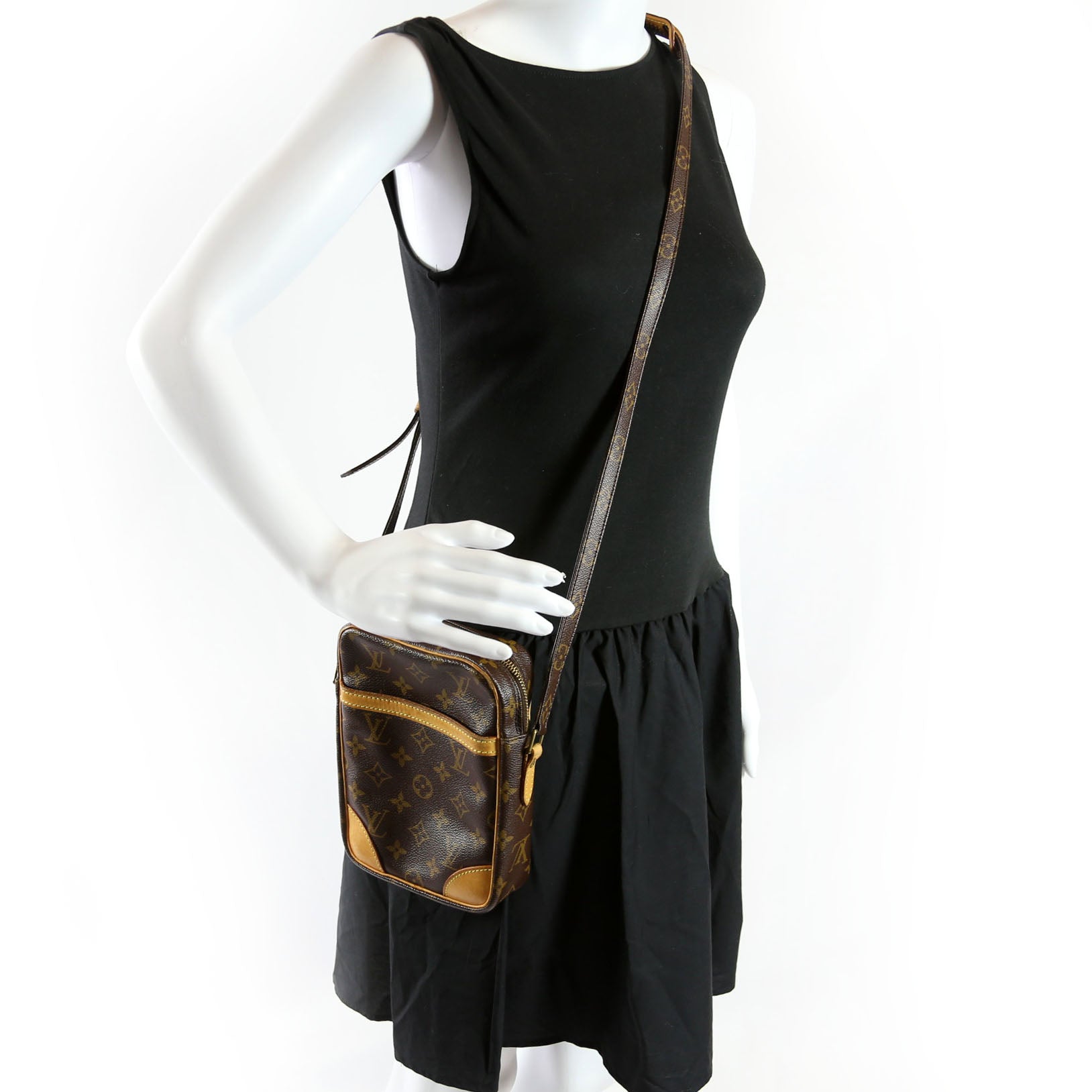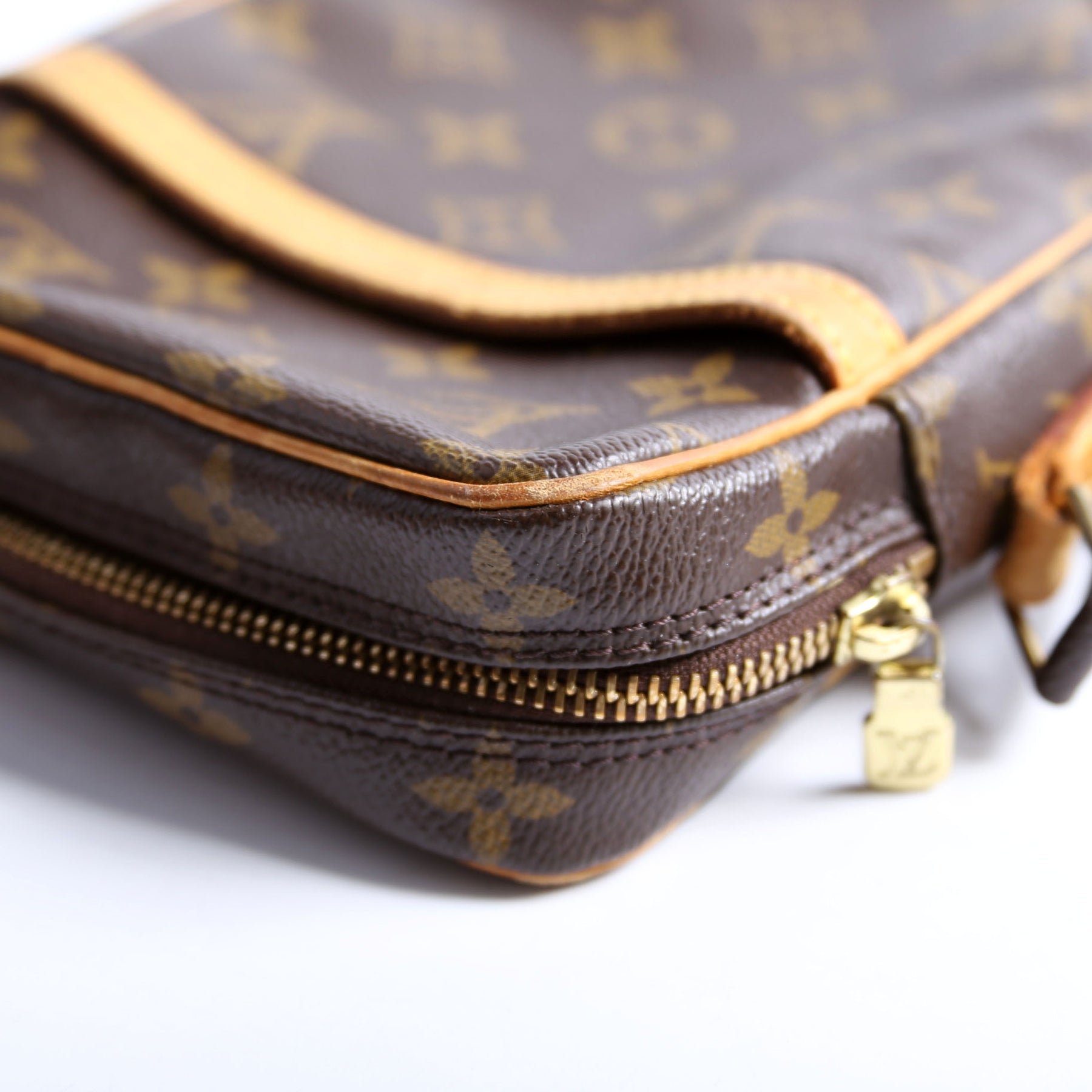 This pre-owned Louis Vuitton Danube is guaranteed 100% authentic. The exterior is in the classic Louis Vuitton Monogram coated canvas.