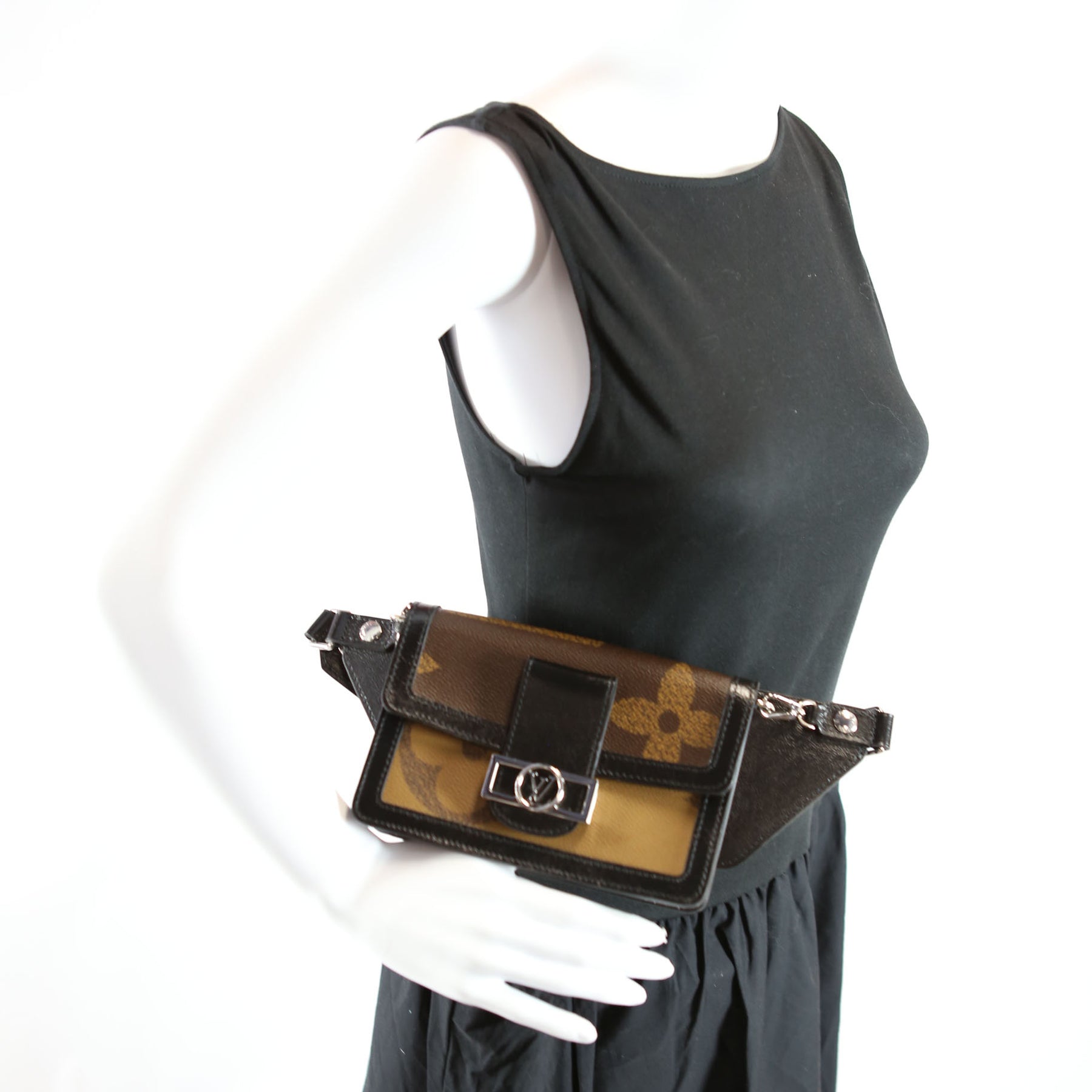 This pre-owned Louis Vuitton Dauphine Belt Bag is guaranteed 100% authentic. The exterior is in the classic Louis Vuitton Reversed Monogram coated canvas.