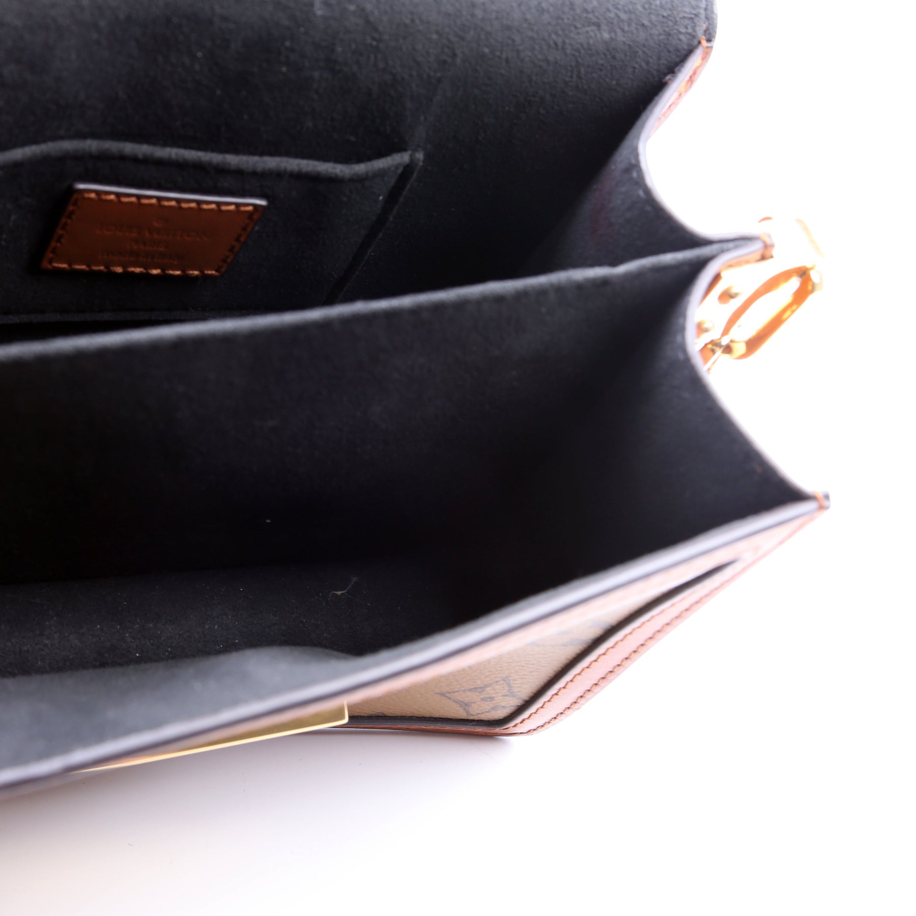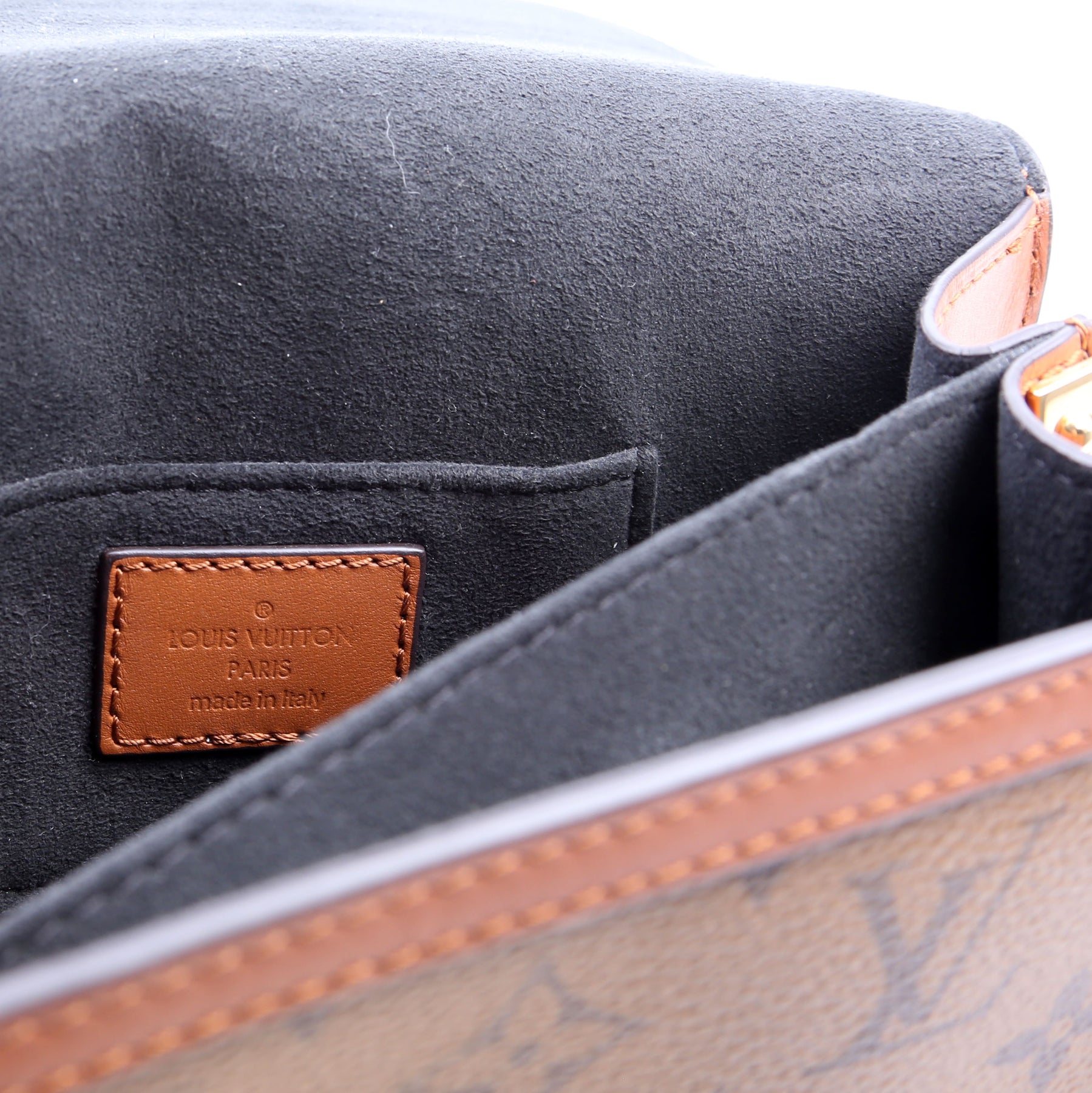 This pre-owned Louis Vuitton Dauphine Mini is guaranteed 100% authentic. The exterior is in the classic Louis Vuitton Reverse Monogram coated canvas.