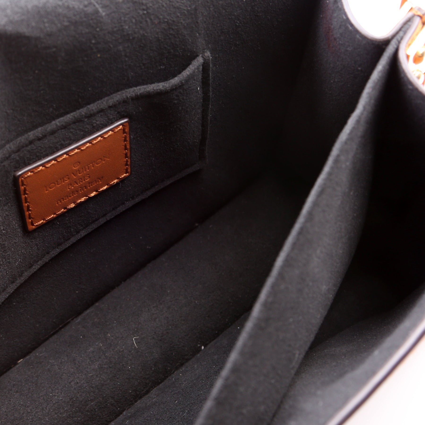 Interior: The interior is clean and free of rips or tears. The interior features one small open pocket and two open sections.