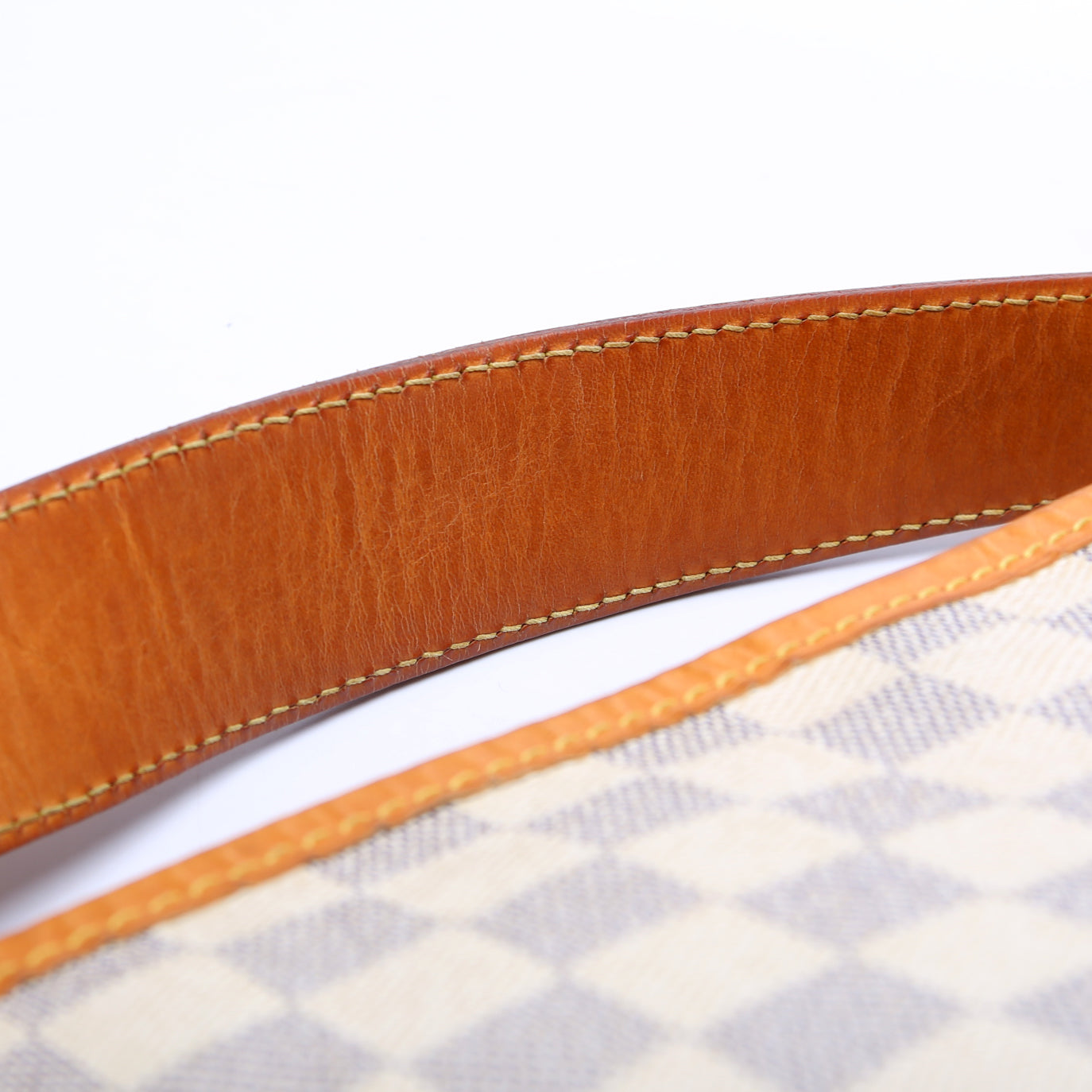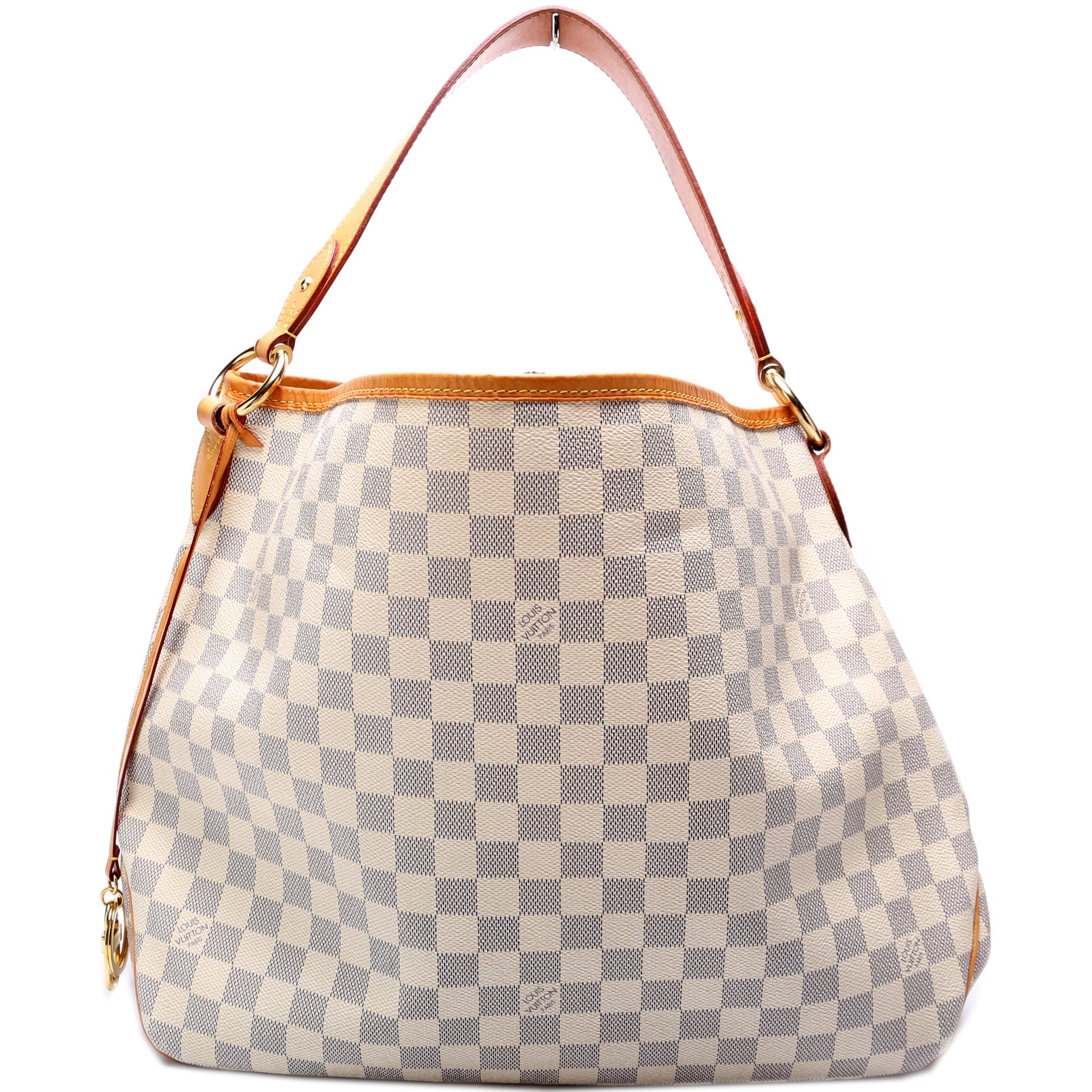 This pre-owned Louis Vuitton Delightful MM is guaranteed 100% authentic. The exterior is in the classic Louis Vuitton Damier Azur coated canvas.