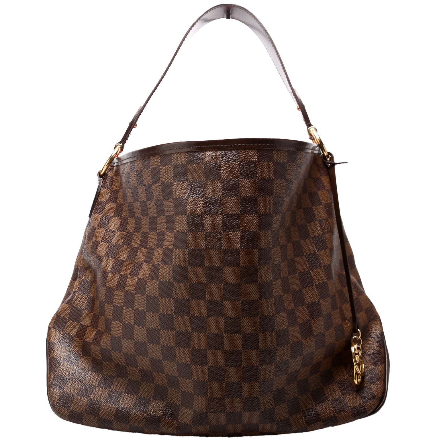 This pre-owned Louis Vuitton Delightful MM is guaranteed 100% authentic. The exterior is in the classic Louis Vuitton Damier Ebene coated canvas.