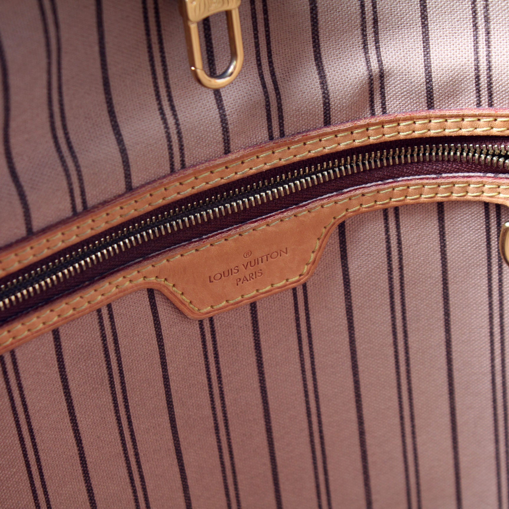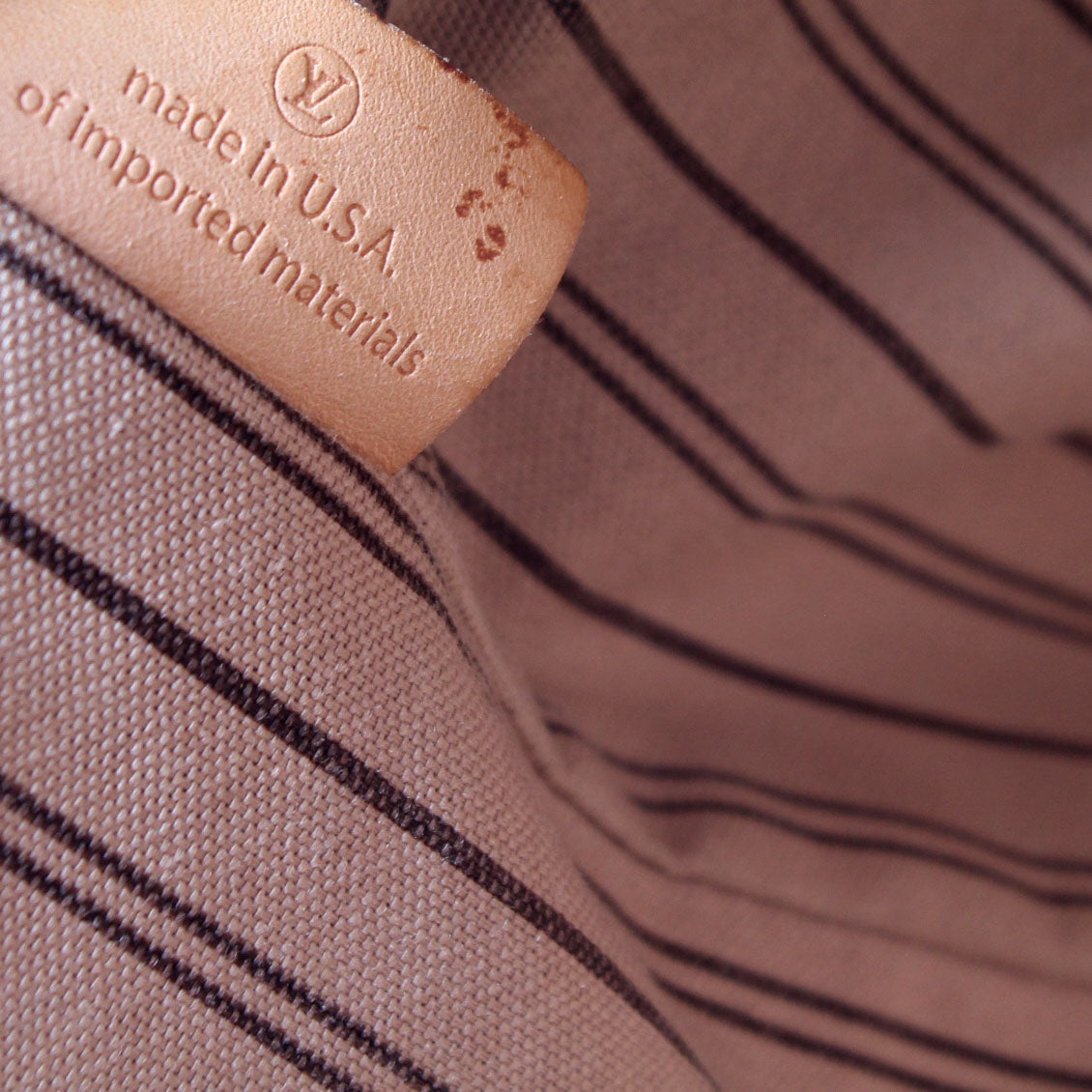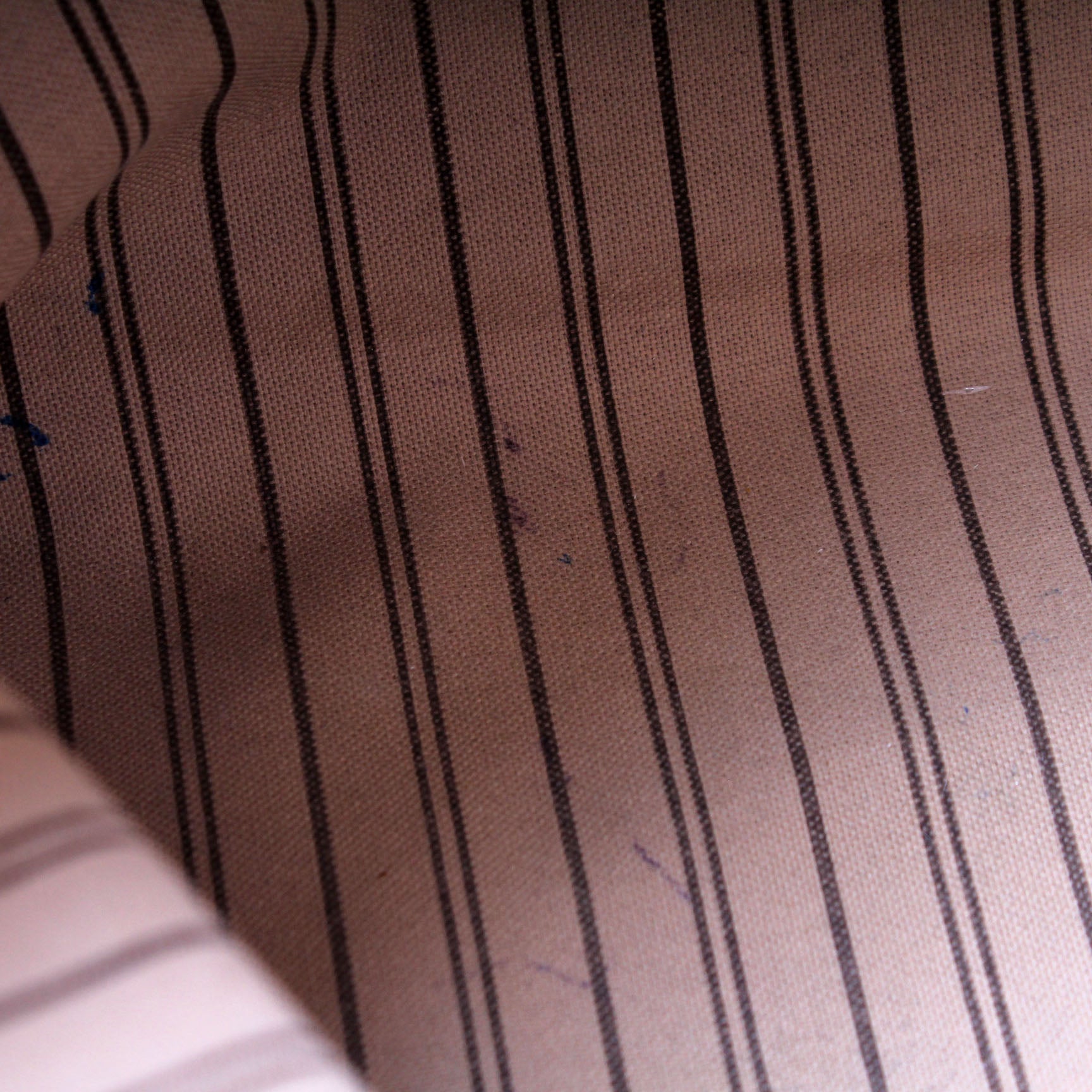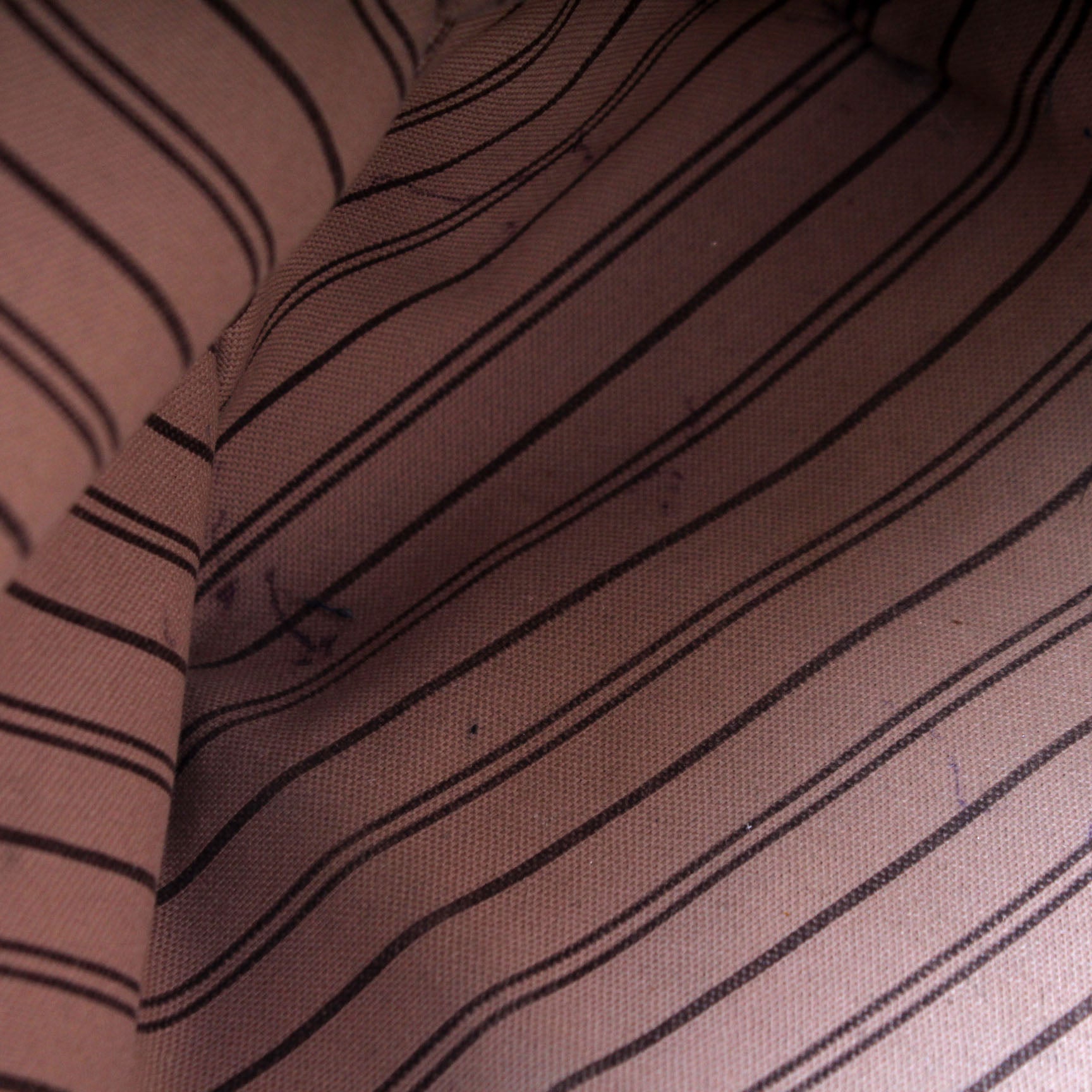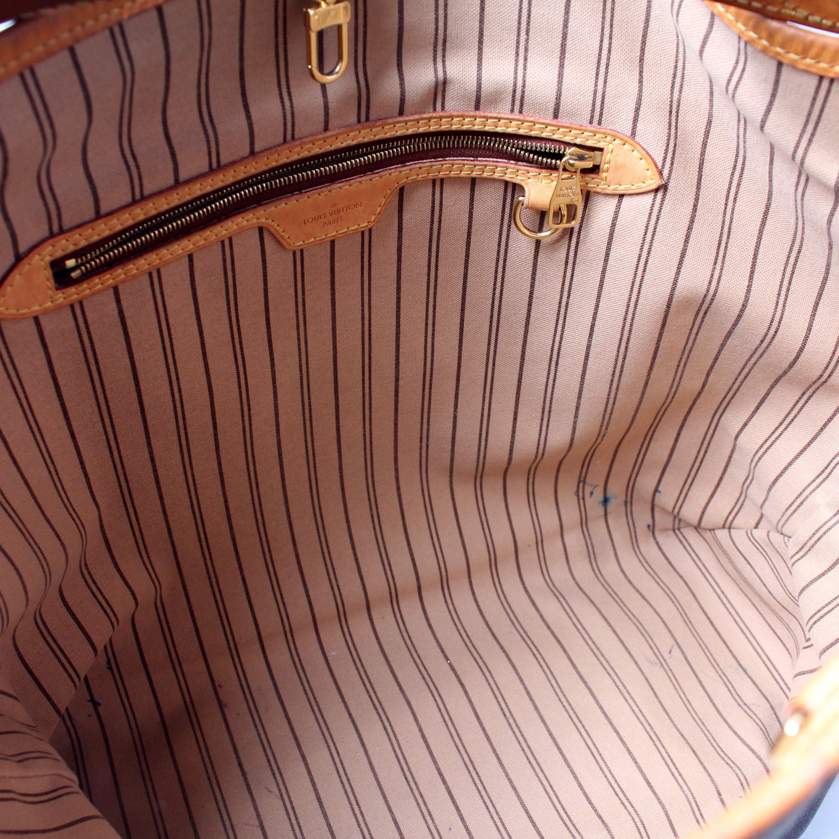 Interior: The interior is free of rips or tears. There are minor pen marks to the interior. It features one zip closure pocket.