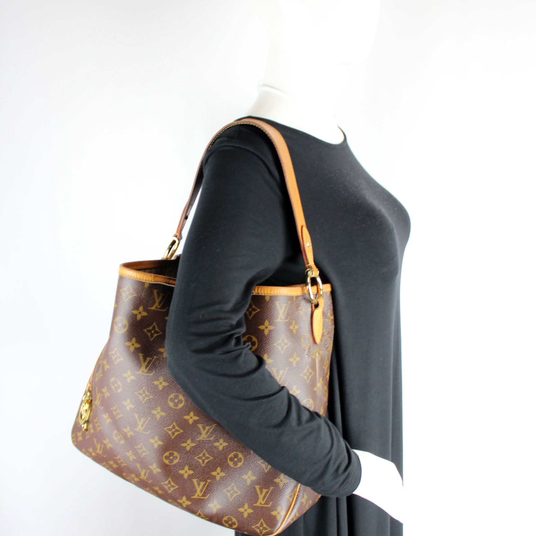 This pre-owned Louis Vuitton Delightful MM is guaranteed 100% authentic. The exterior is in the classic Louis Vuitton Monogram coated canvas.
