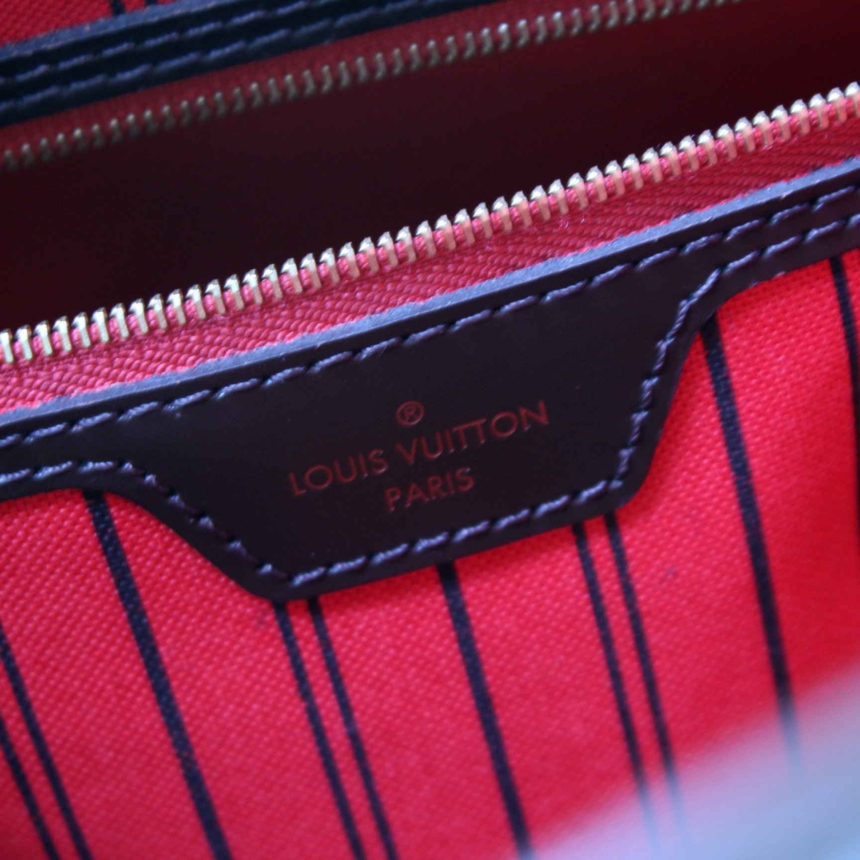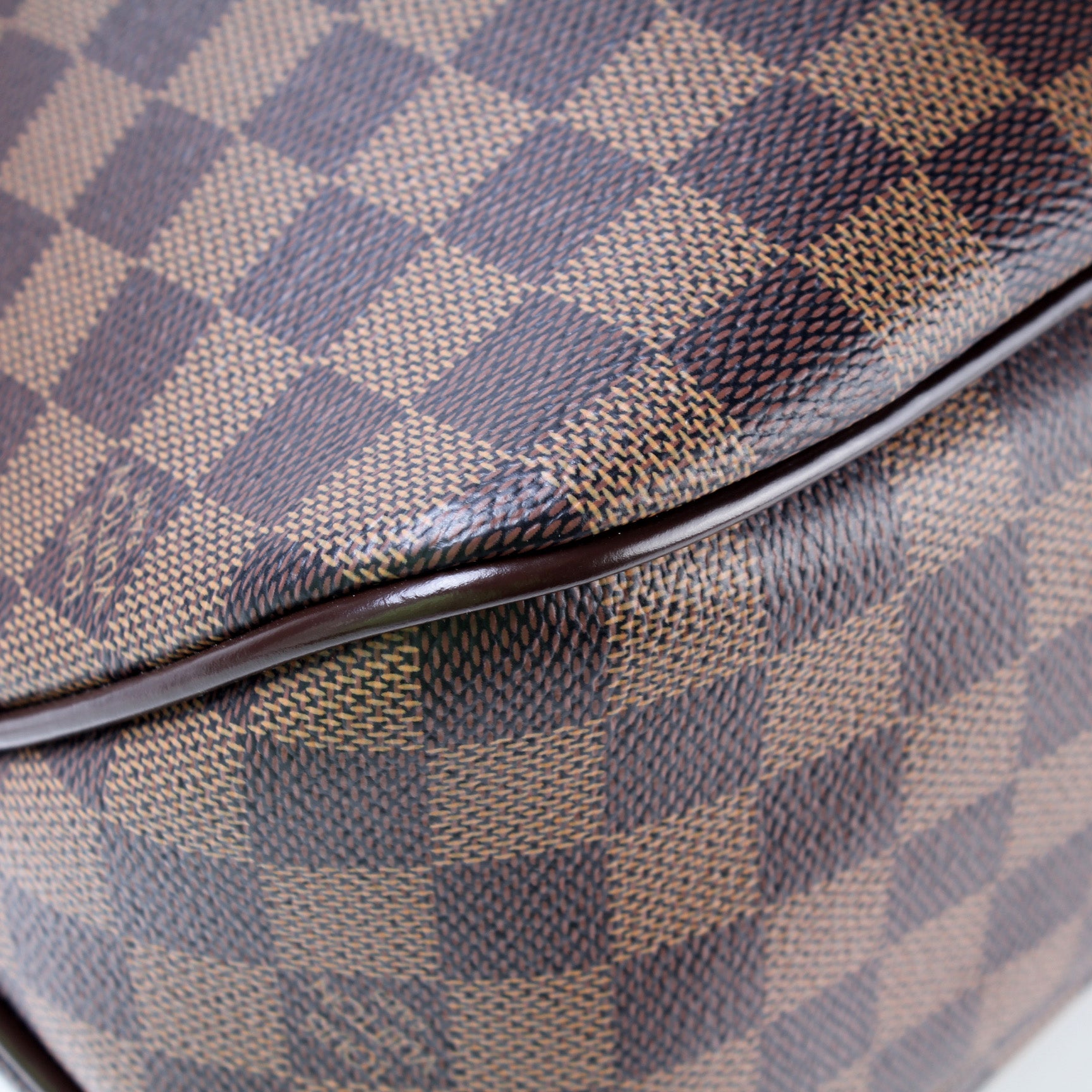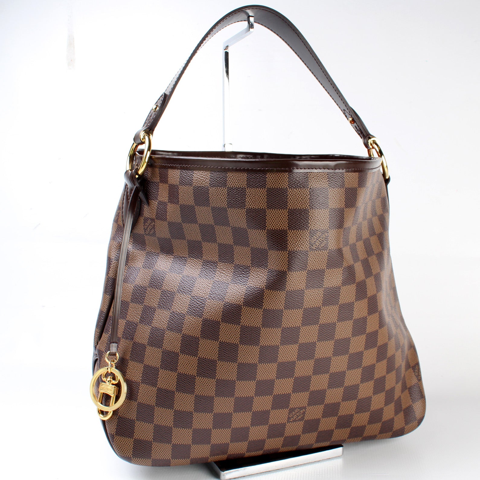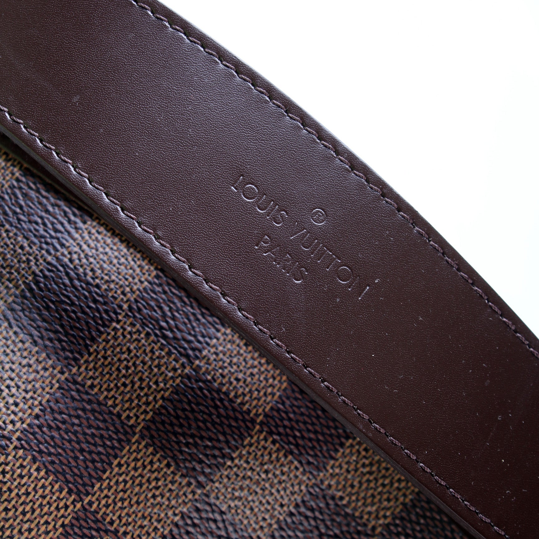 This pre-owned Louis Vuitton Delightful PM is guaranteed 100% authentic. The exterior is in the classic Louis Vuitton Damier Ebene coated canvas.