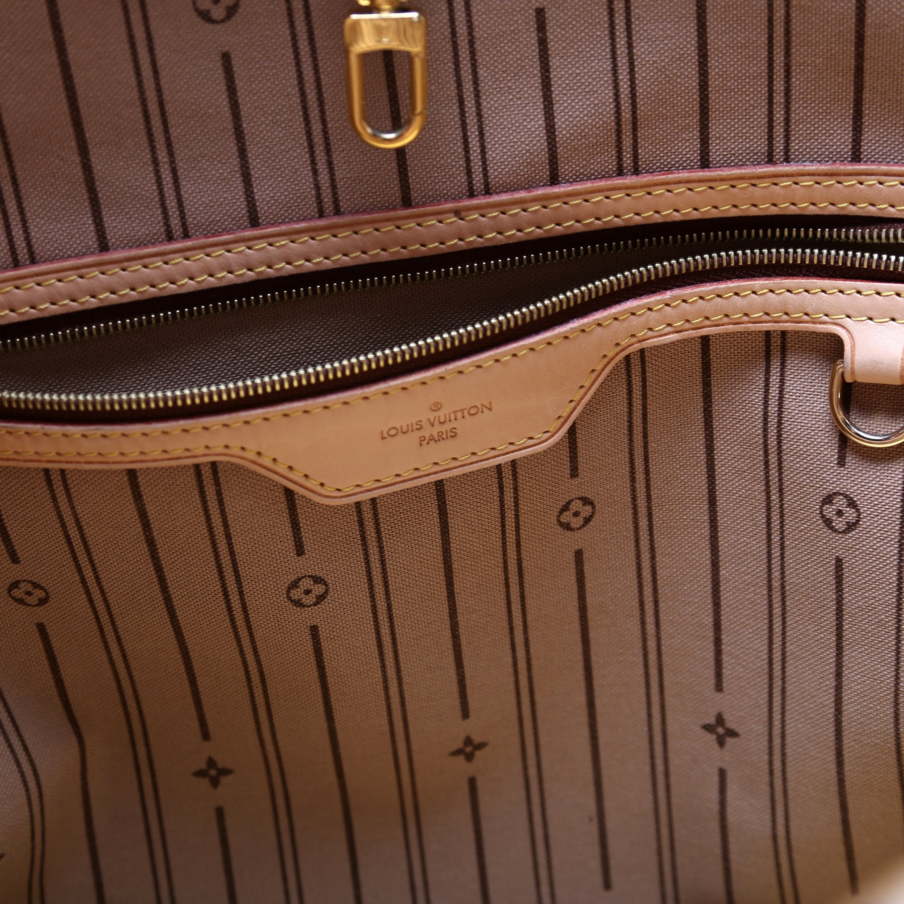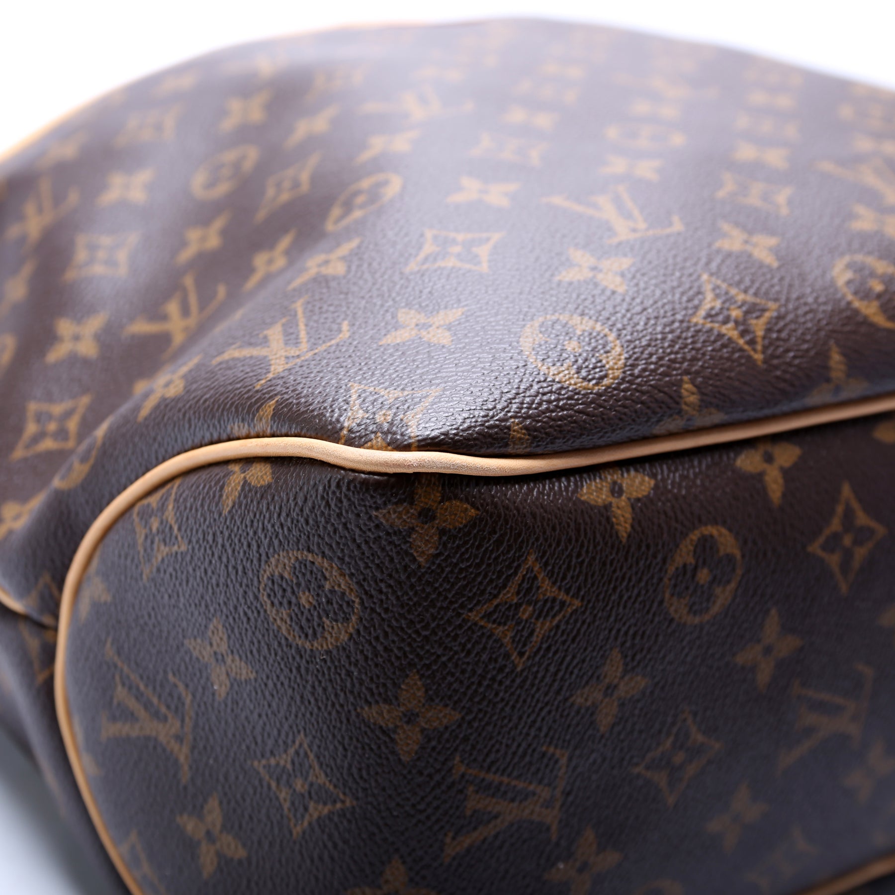 Exterior: The exterior coated canvas is free of any rips or cracks. The leather trim shows minor wear.