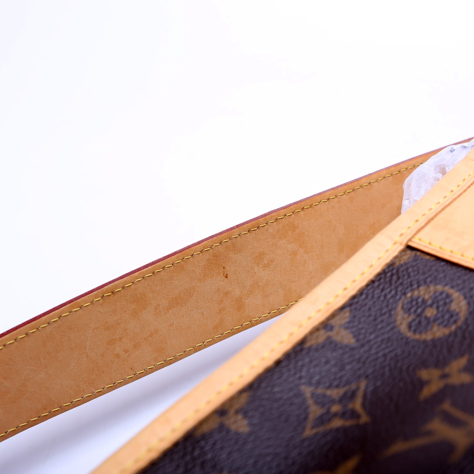 Handle: The leather handle shows minor discoloration.