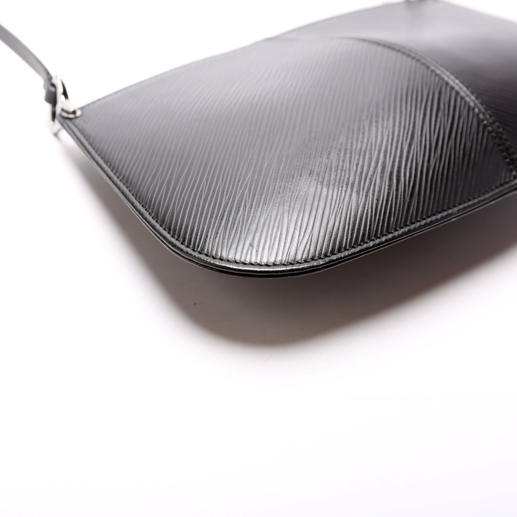 This pre-owned Louis Vuitton Demi Lune Pochette is guaranteed 100% authentic. The exterior is in the classic Louis Vuitton Epi leather.