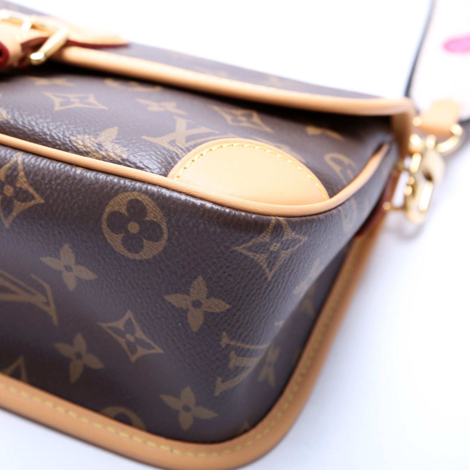 This pre-owned Louis Vuitton Diane NM Satchel Monogram is guaranteed 100% authentic. The exterior is in the classic Louis Vuitton Monogram coated canvas.