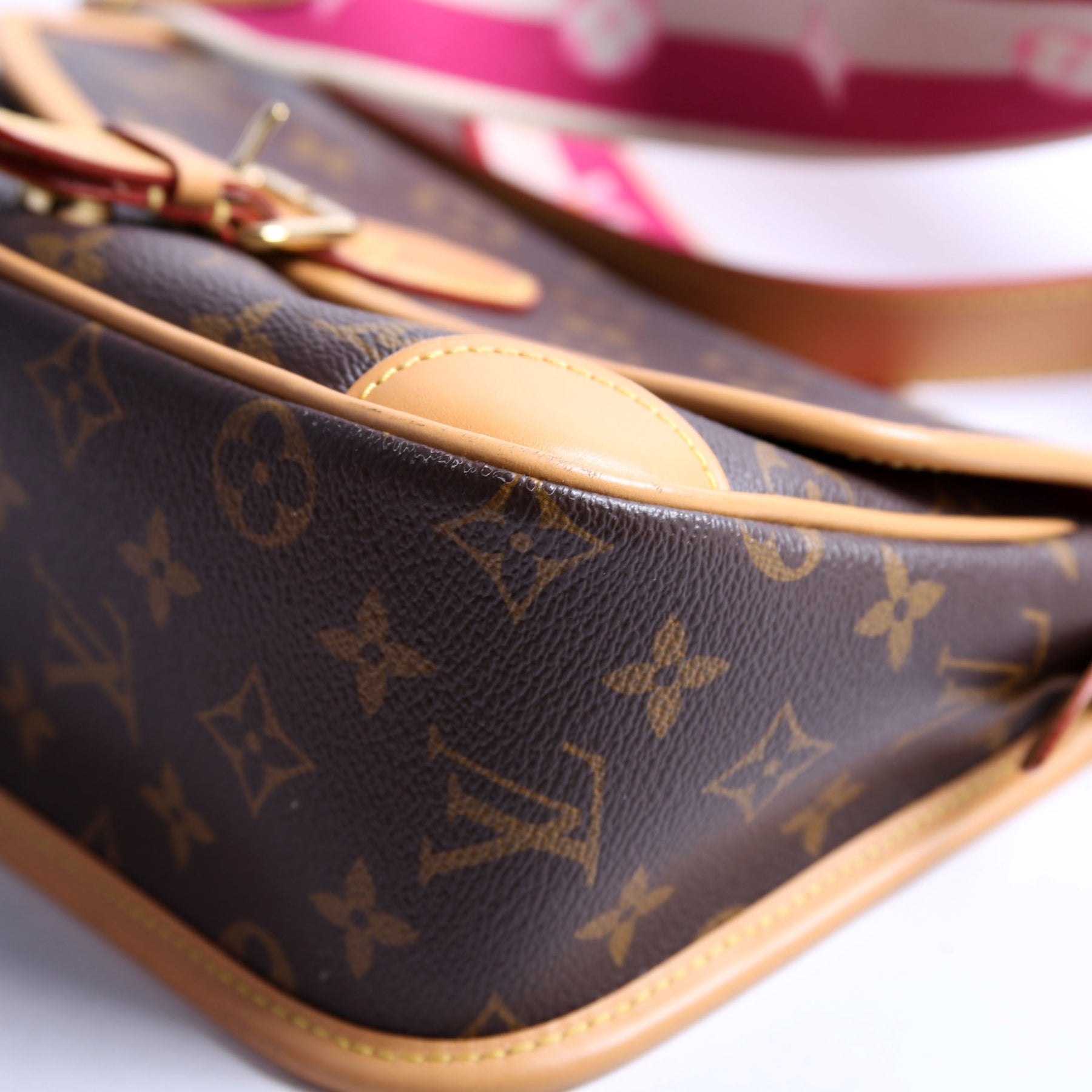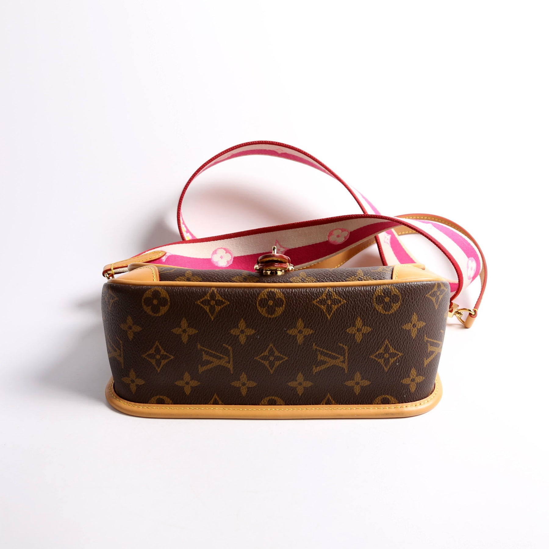 This pre-owned Louis Vuitton Diane NM Satchel is guaranteed 100% authentic. The exterior is in the classic Louis Vuitton Monogram coated canvas.