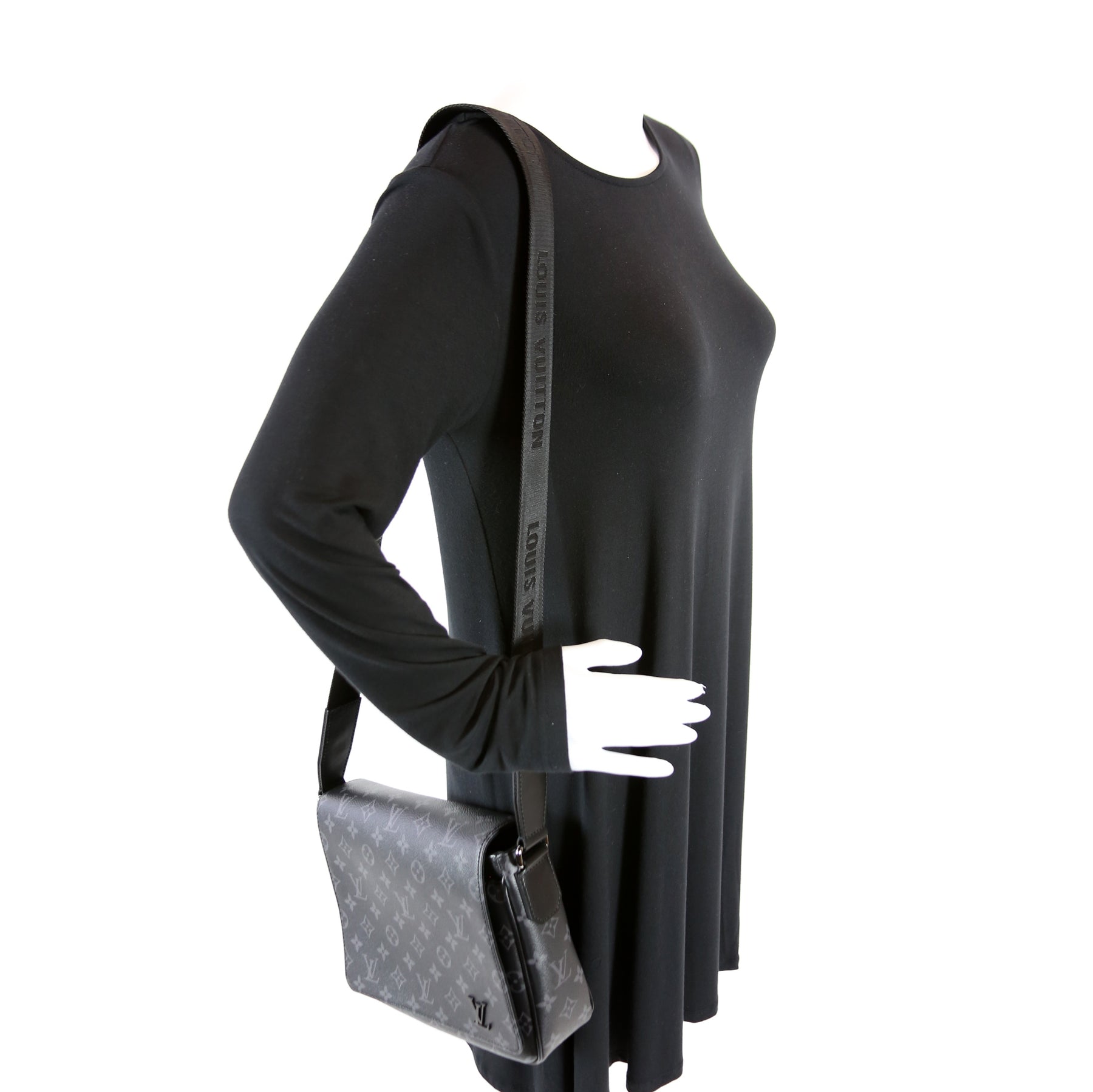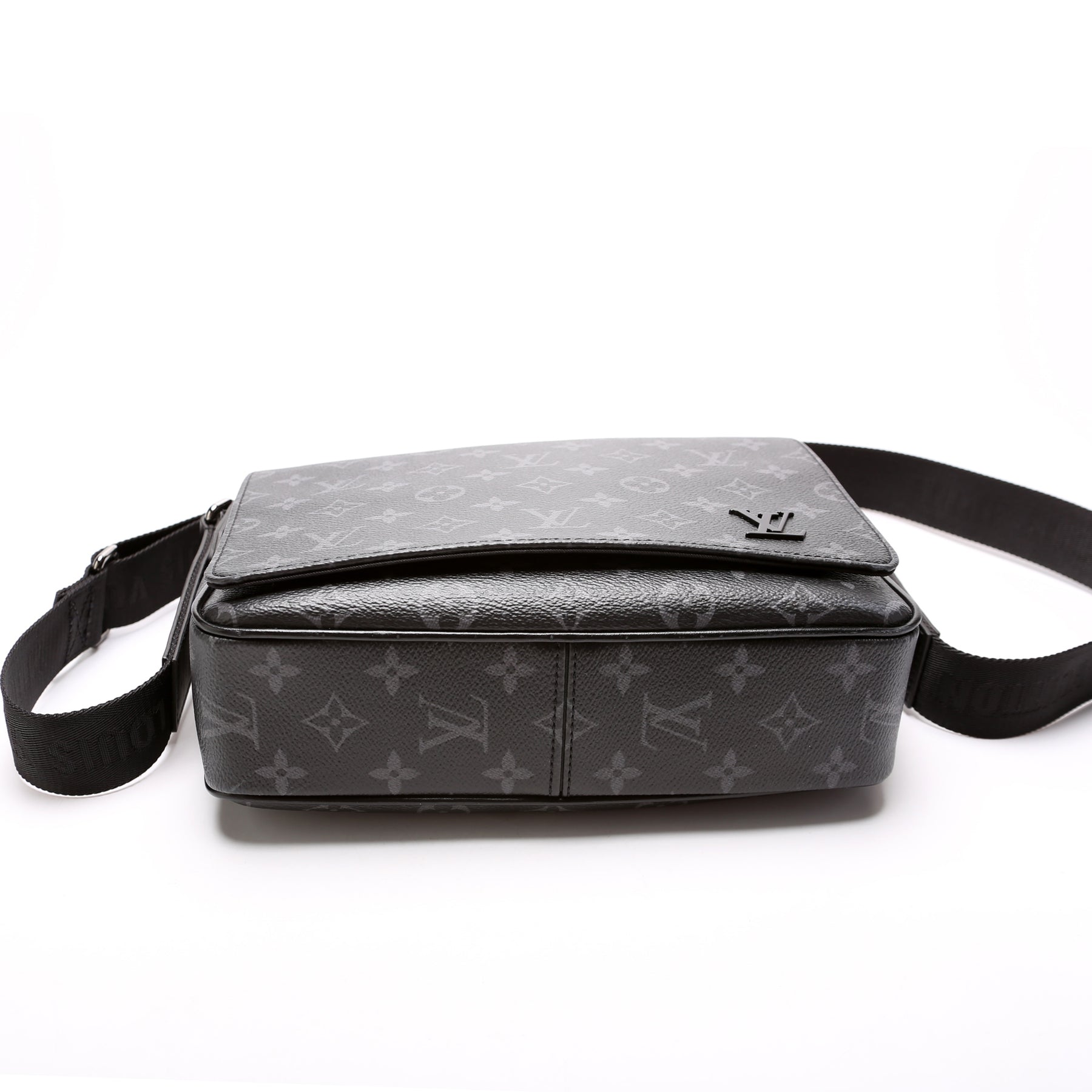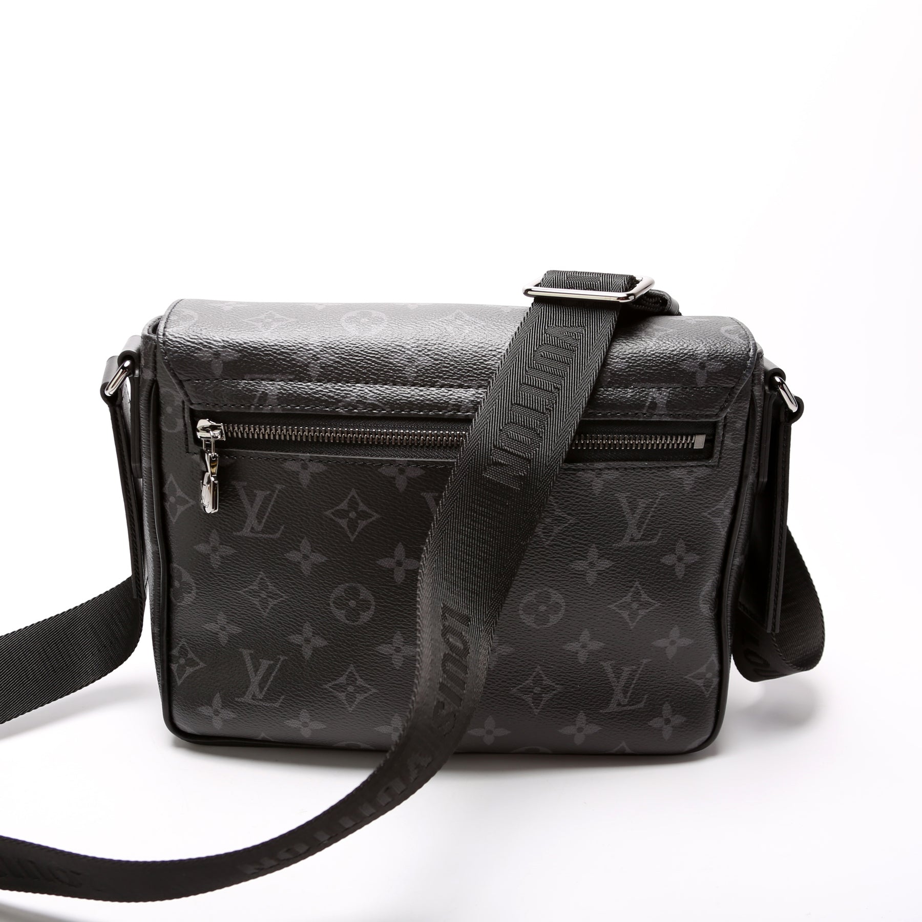This pre-owned Louis Vuitton District PM NV3 is guaranteed 100% authentic. The exterior is in the classic Louis Vuitton Monogram Eclipse coated canvas.